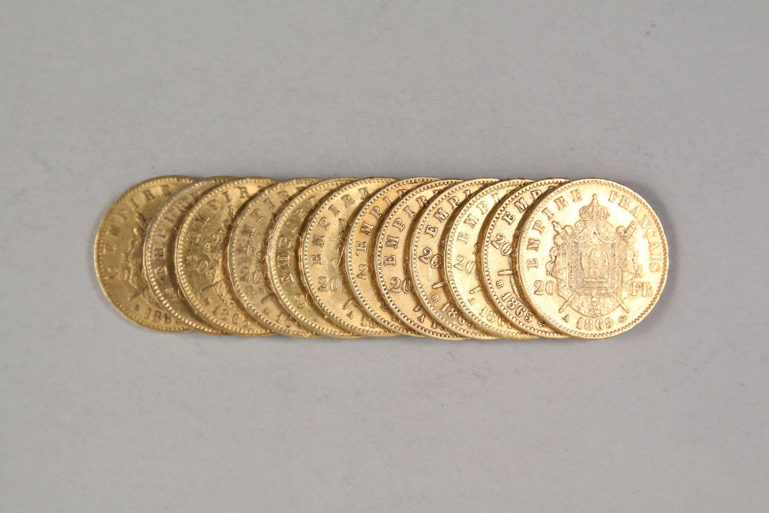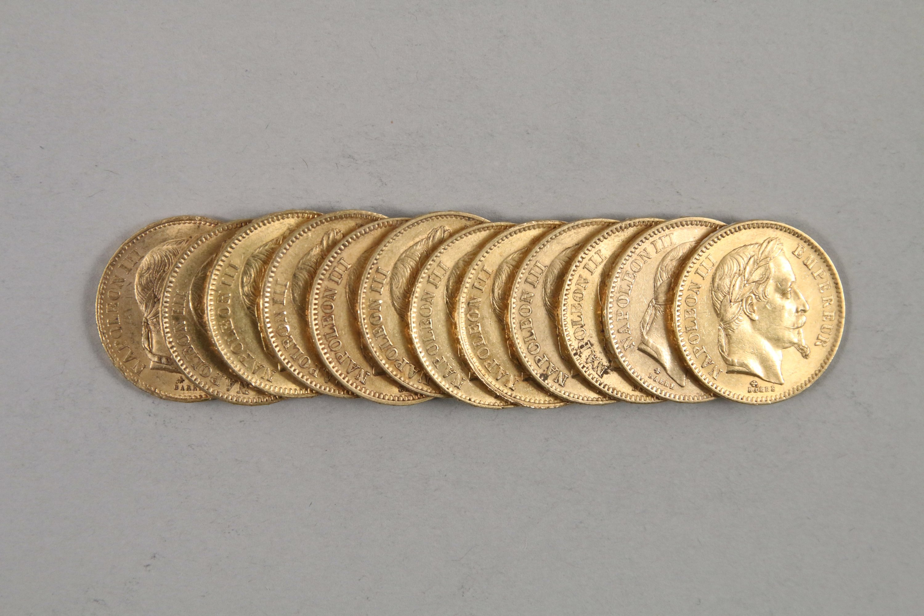 10 Napoléon III, tête laurée : 1861,1862, 1863 (2), 1865 (3), 1868 (4), 1869