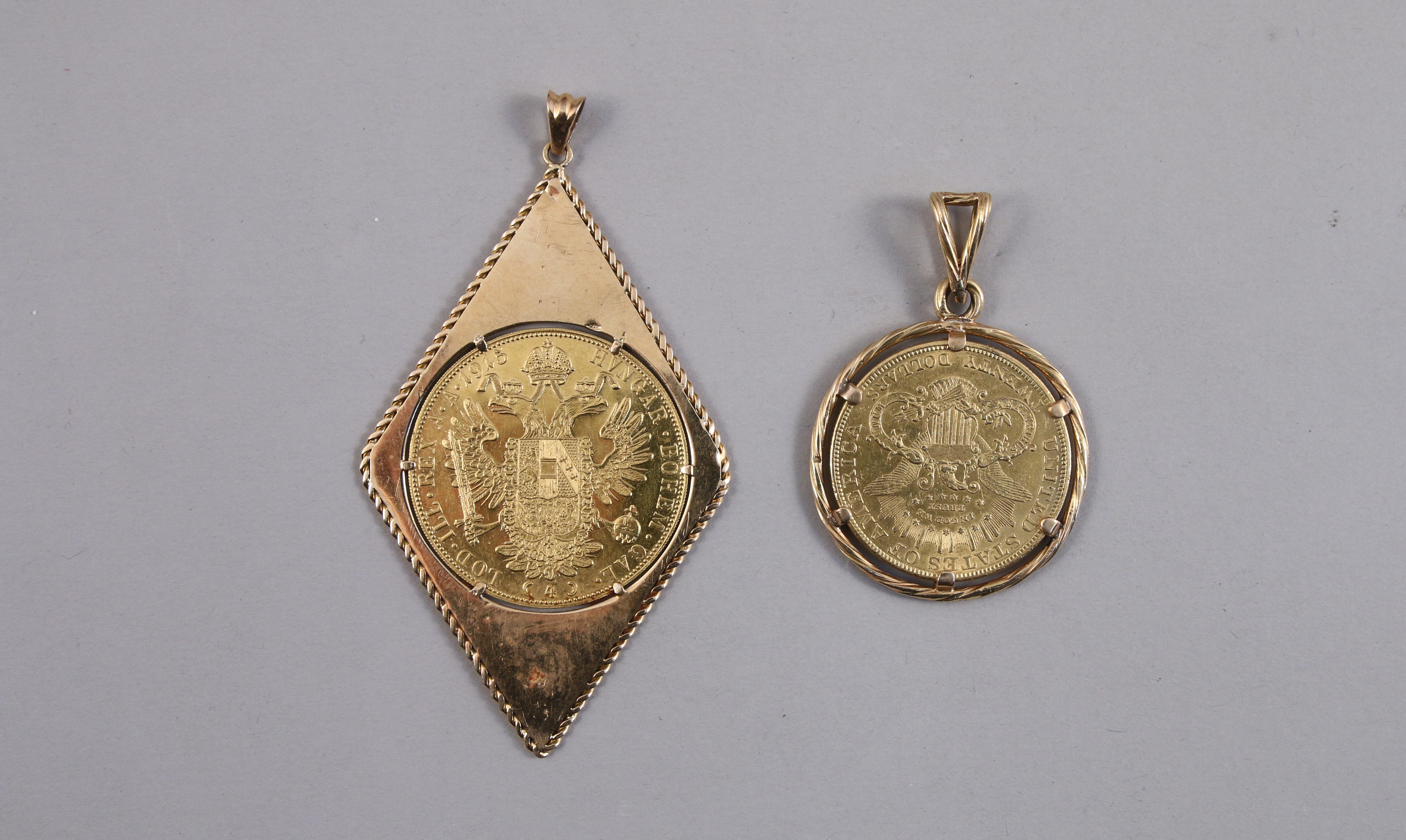 AUTRICHE HONGRIE et U.S.A. 2 MONNAIES or montées en en pendentif :