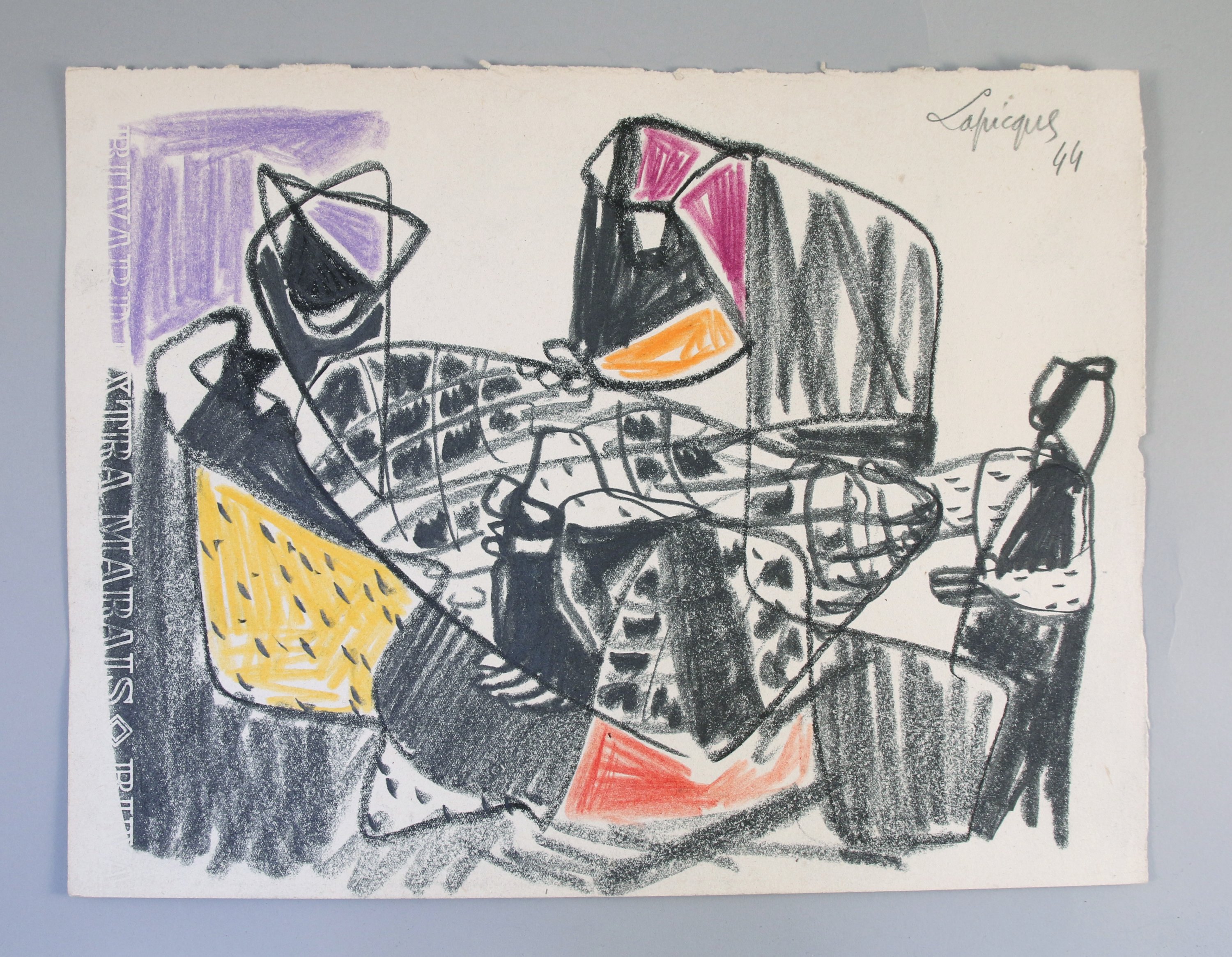 Bibliographie : Centre Georges Pompidou, "Dessins de Lapicque", catalogue de l'exposition de 1978, à comparer avec les dessins exposés de la série "Affrontements et rencontres : 1944/45" qui auraient inspirés Jean-Michel Atlan selon Pierre Georgel.