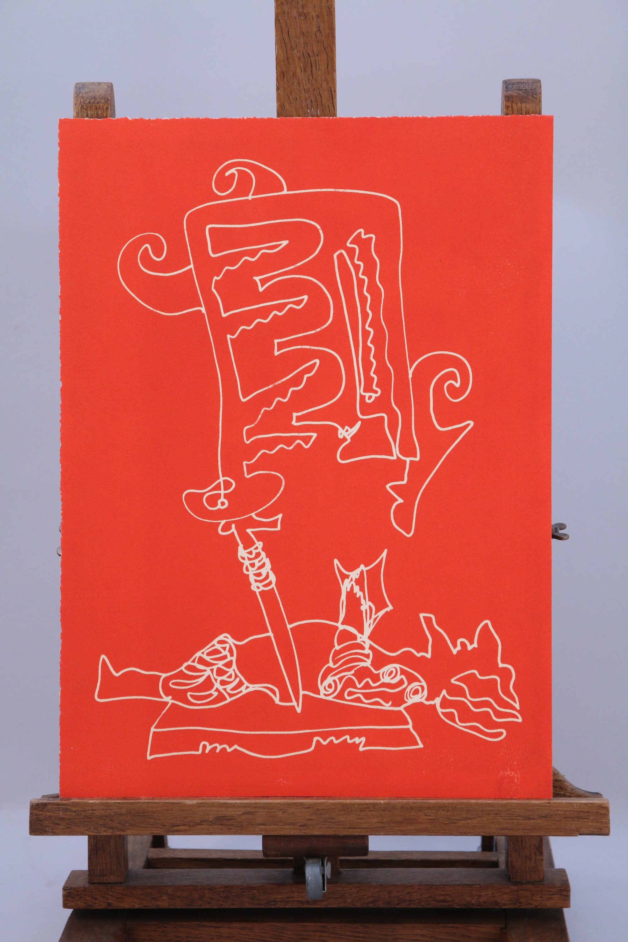 "Popée", "Le Fol" 1968 et 12 autres sujets en blanc sur papier couleur. Dont 2 doubles faces non signés l'une titrée "Cyrano de Bergerac".