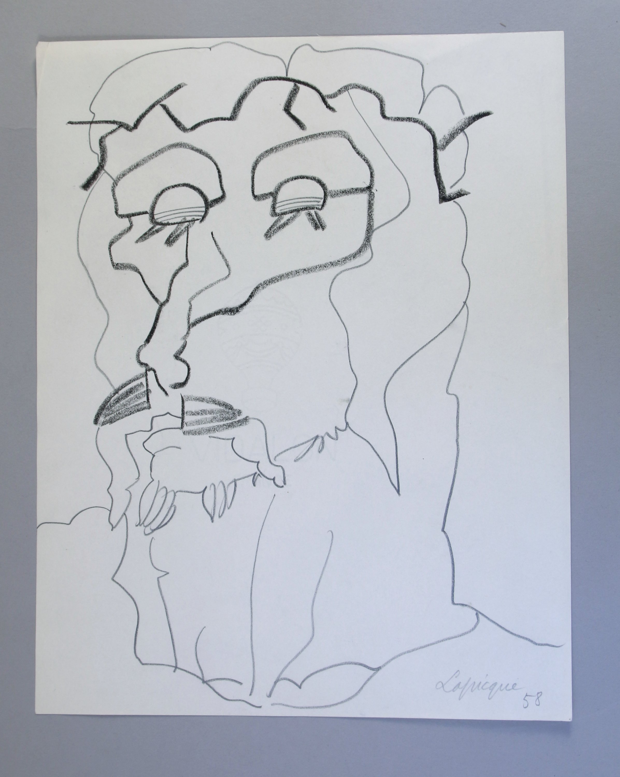 Bibliographie : Charles ESTIENNE, "Dessins de Lapicque, La figure, éds. Galantis, 1959, à rapprocher d'un dessin illustré pleine page, "Christ, 1958".