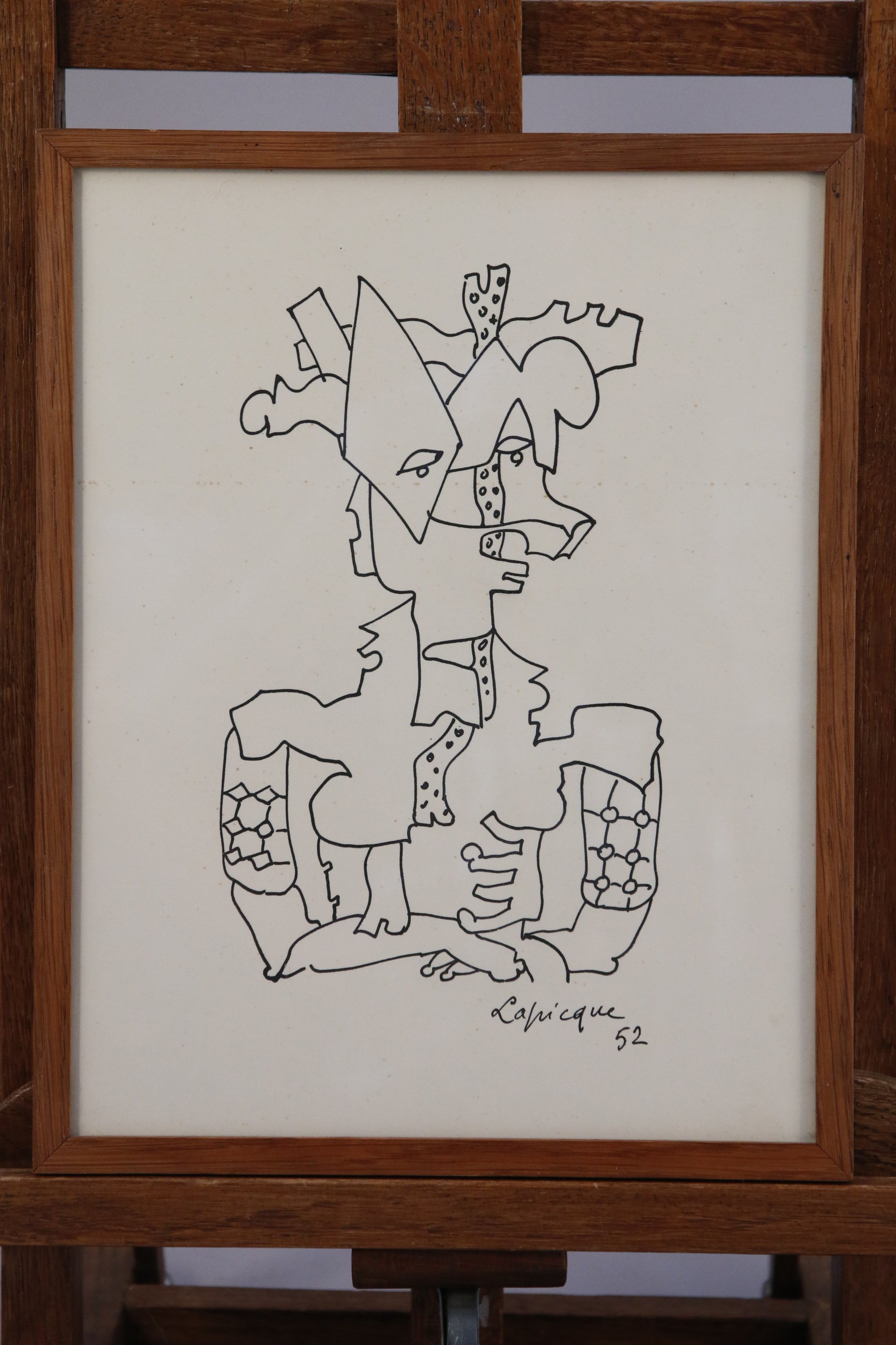 Charles LAPICQUE (Théizé, 1898 - Orsay, 1988)Figure, 1952.Encre sur papier....
