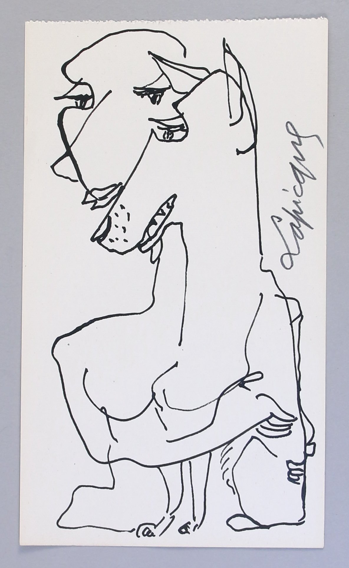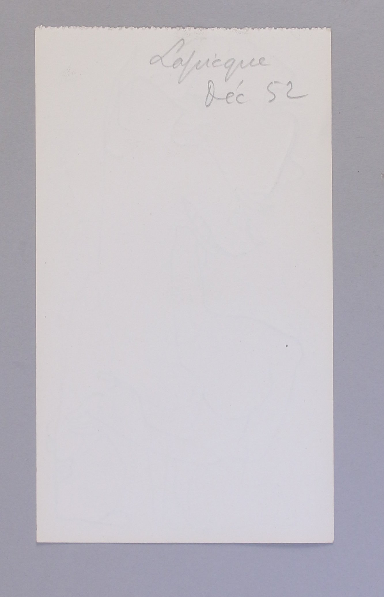 Bibliographie : Charles ESTIENNE, "Dessins de Lapicque, La figure", éds. Galantis, 1959, à rapprocher d'un dessin illustré, "L'homme au chien, 1952".