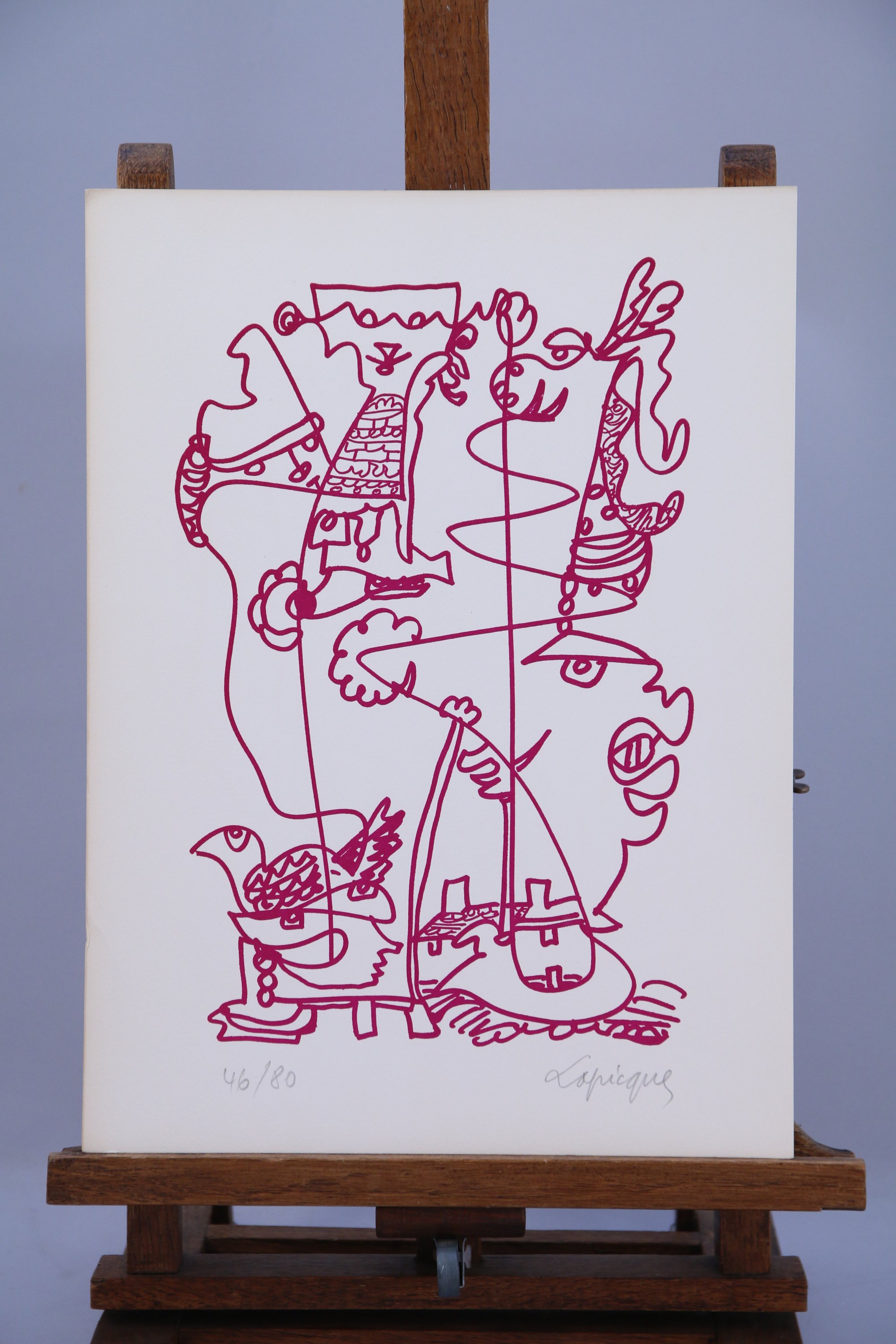 Bibliographie : Me Georges BLACHE & M. Bernard BALANCI, "Charles Lapicque, Catalogue raisonné de l'oeuvre complet des lithographies - eaux fortes et gravures", 1981, la titrée reproduite p. 82.