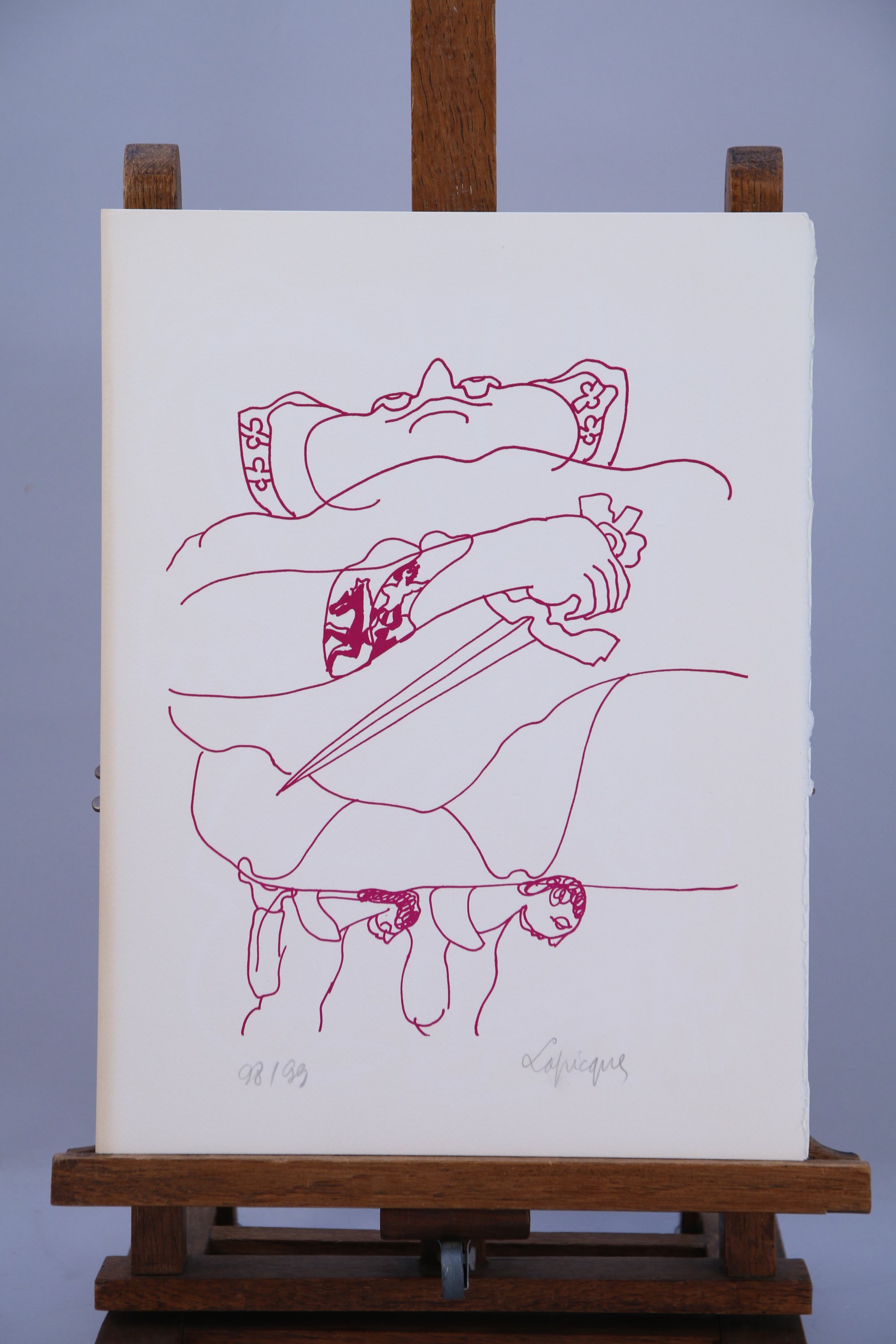 Bibliographie : Me Georges BLACHE & M. Bernard BALANCI, "Charles Lapicque, Catalogue raisonné de l'oeuvre complet des lithographies - eaux fortes et gravures", 1981, la titrée reproduite p. 120.