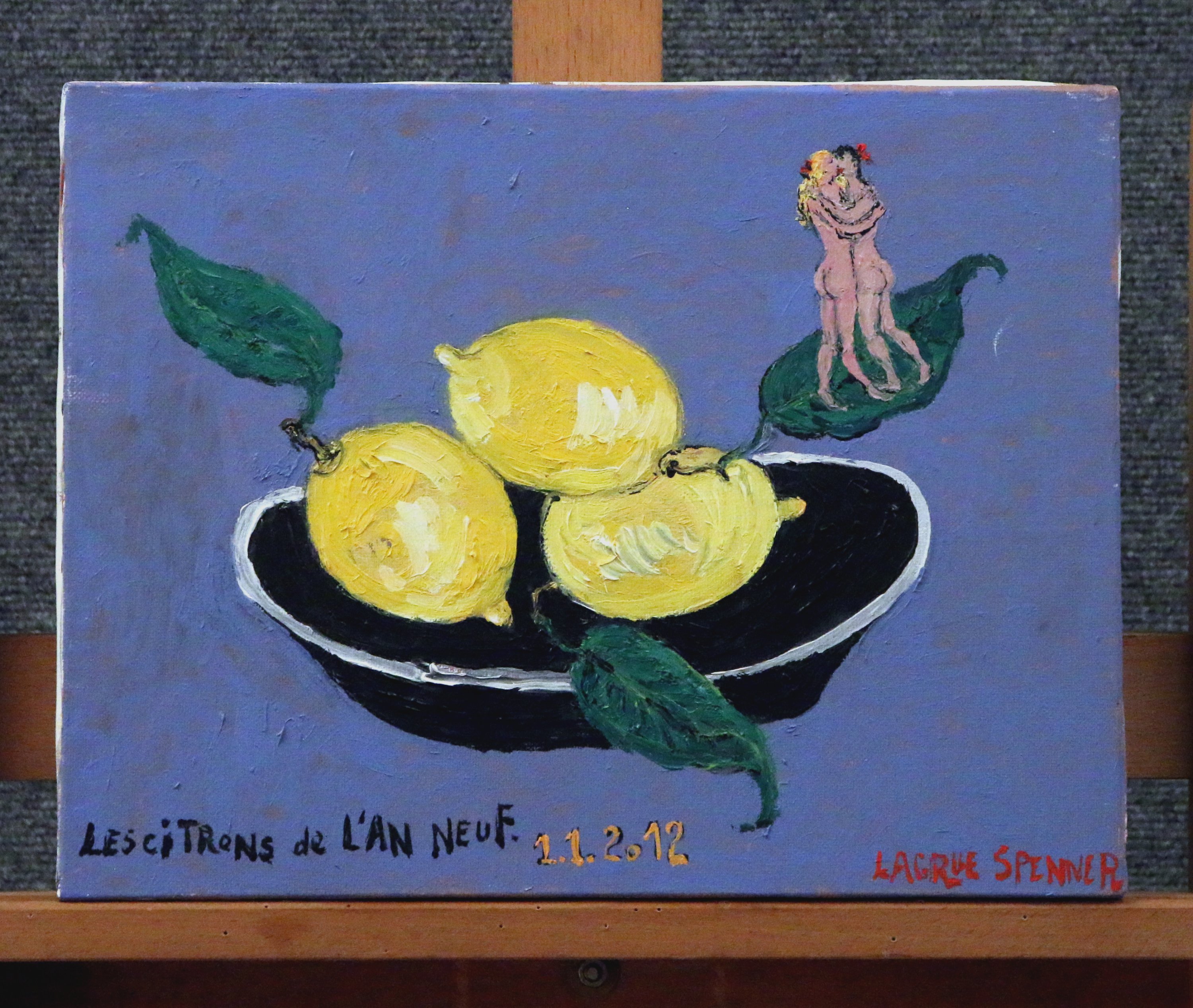 Toile signée en bas à gauche, titrée, datée " 1er janvier 2012".