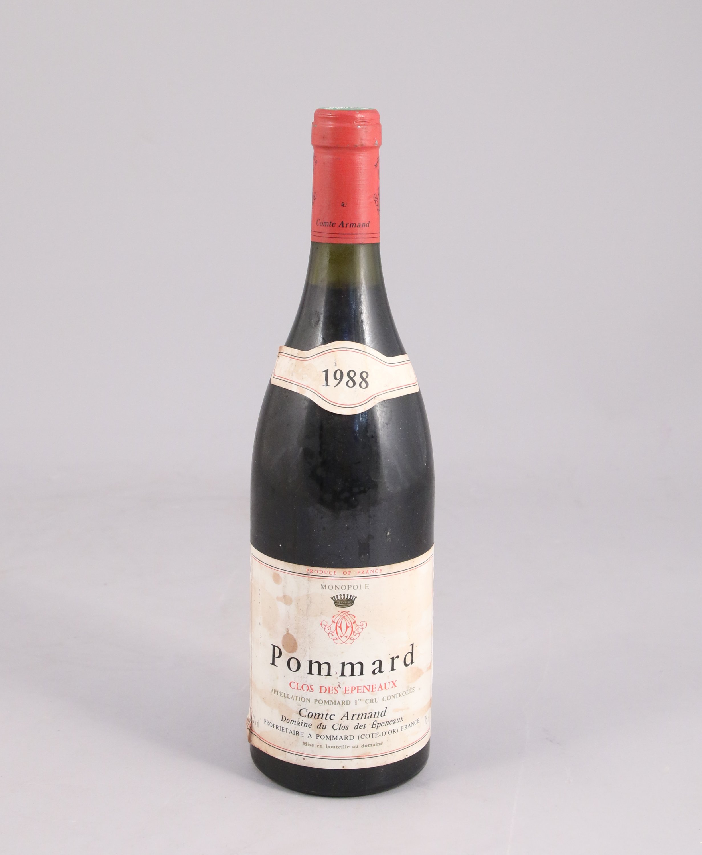 POMMARD, Clos des Epeneaux, Comte Armand, 1988, 1 bouteille, 2 cm, étiquette abimée.