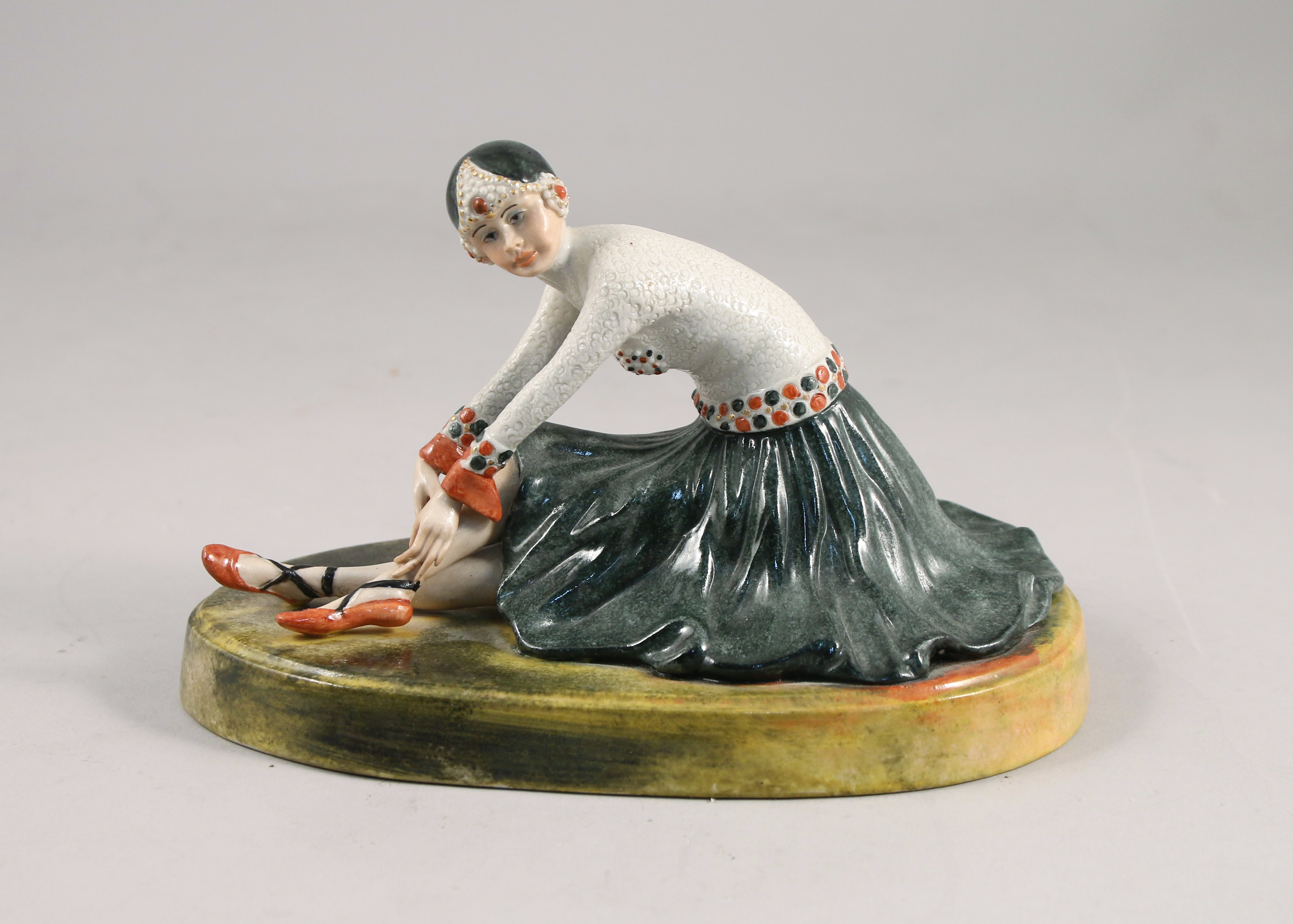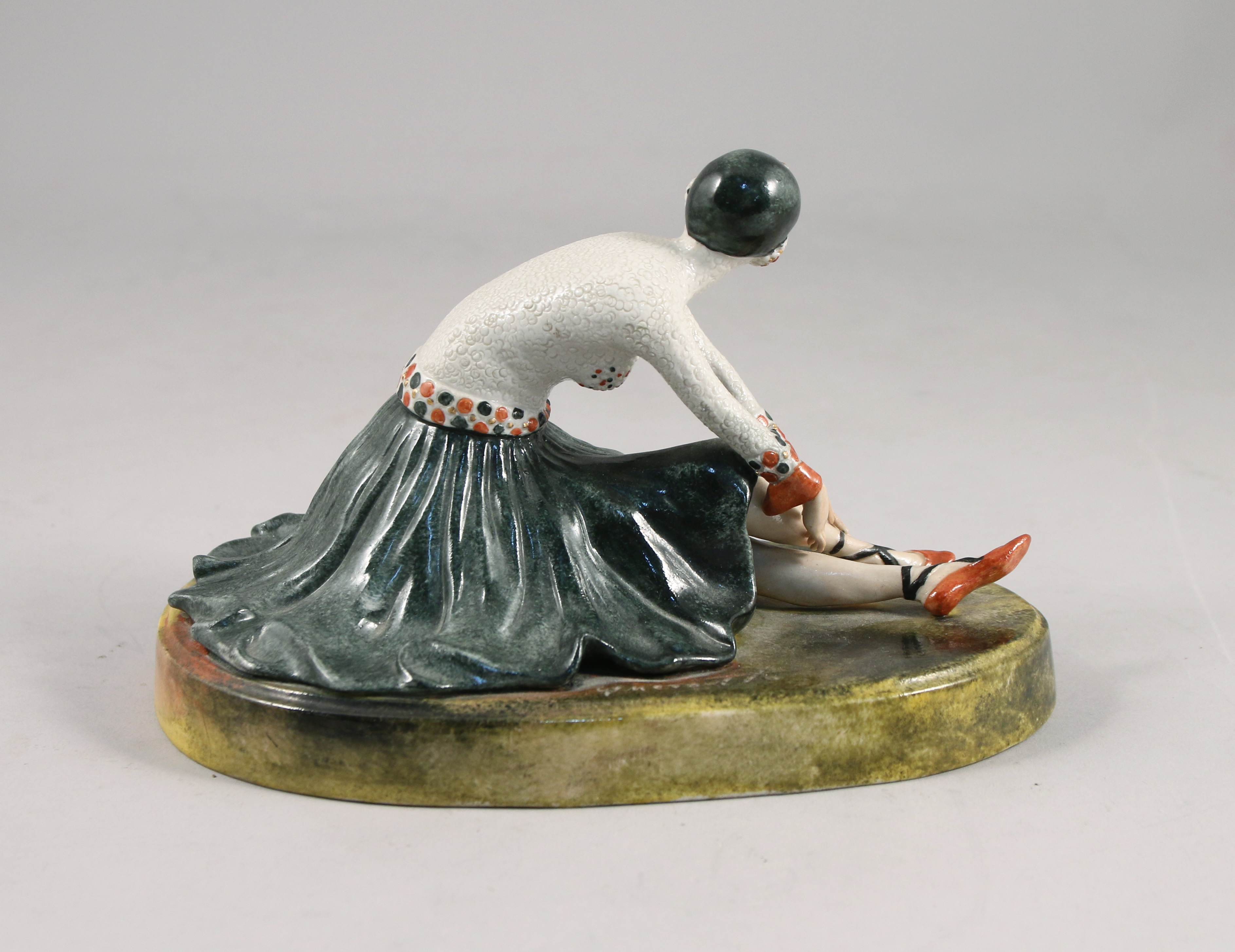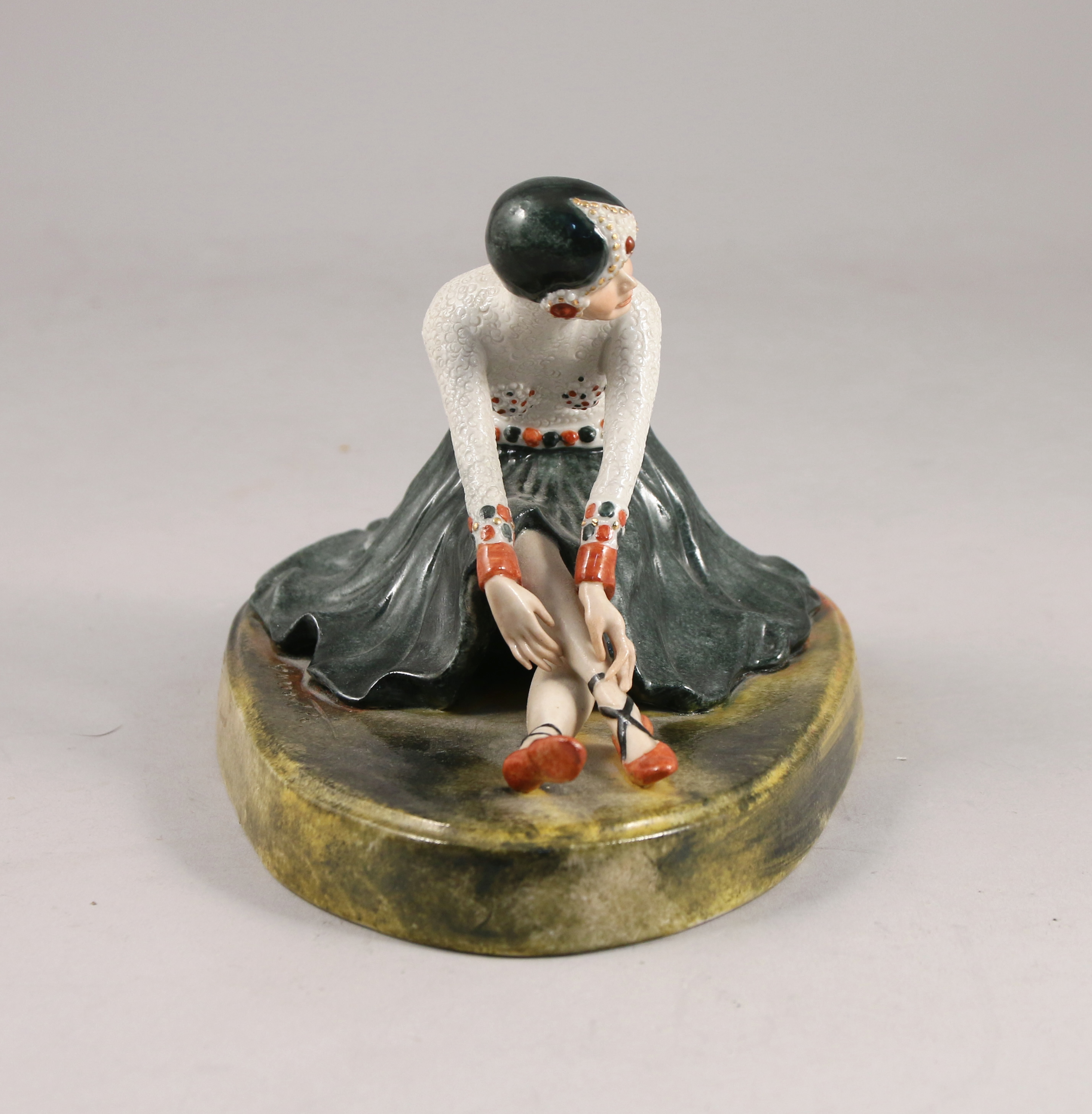 Dans le goût de Demeter CHIPARUS (1886-1947).Danseuse assiseSujet en faïence...