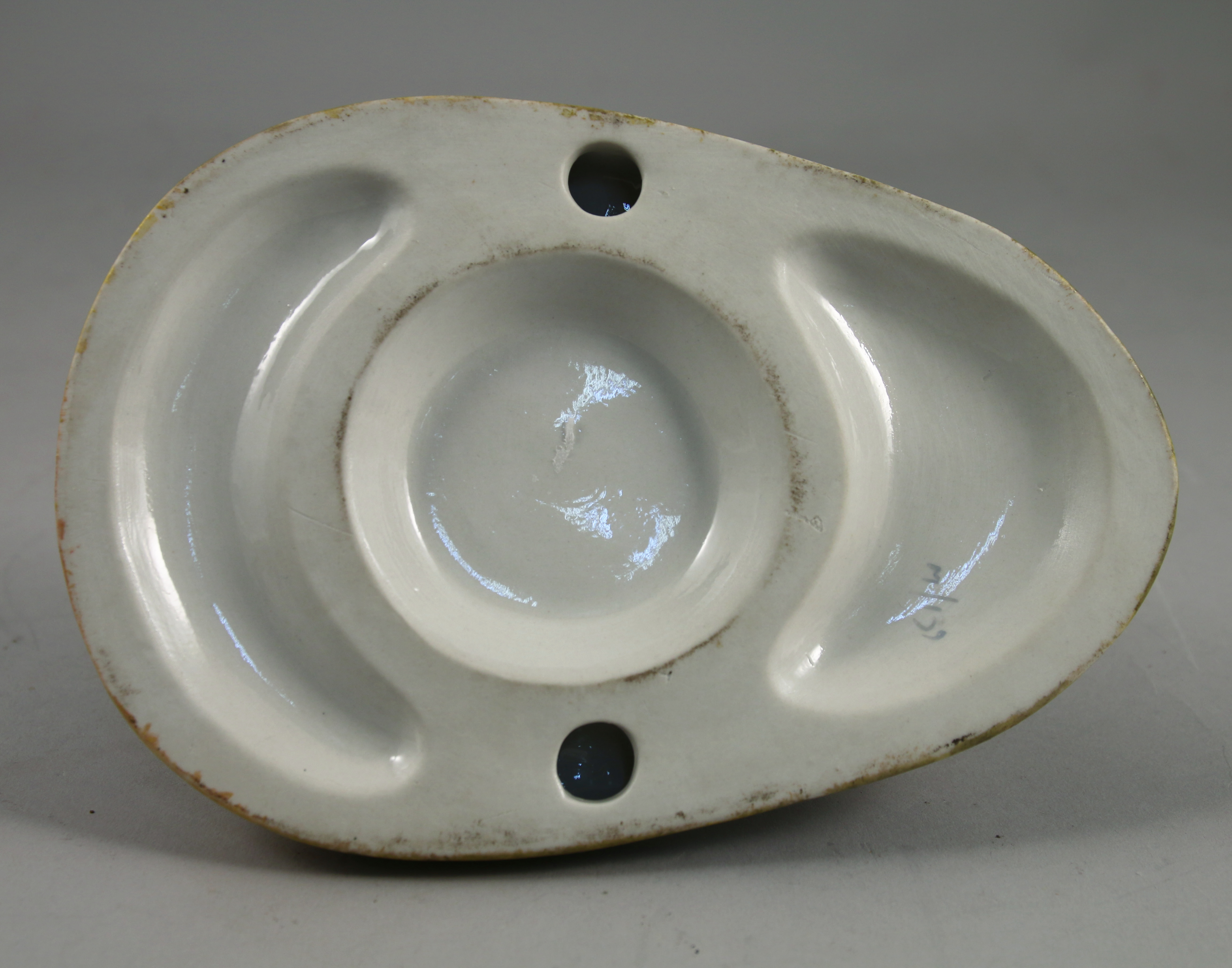 Sujet en faïence polychrome, marqué au revers "M/139", signé sur la terrasse "Gmeo.otto"?, signature indéchiffrable.
