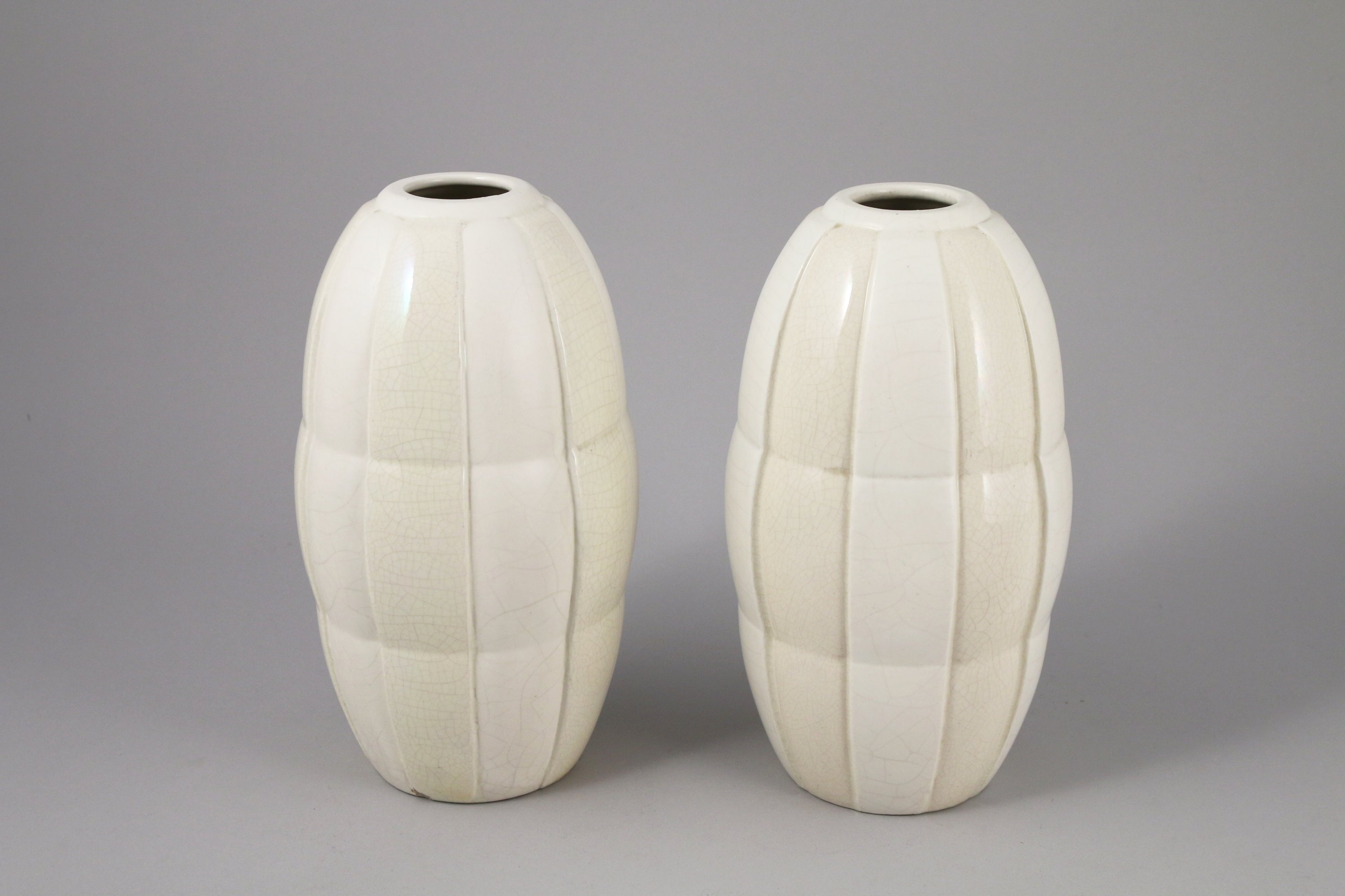 EUROPE CENTRALE ? PAIRE de VASES en faïence craquelé de forme oblongue à décor godronné.