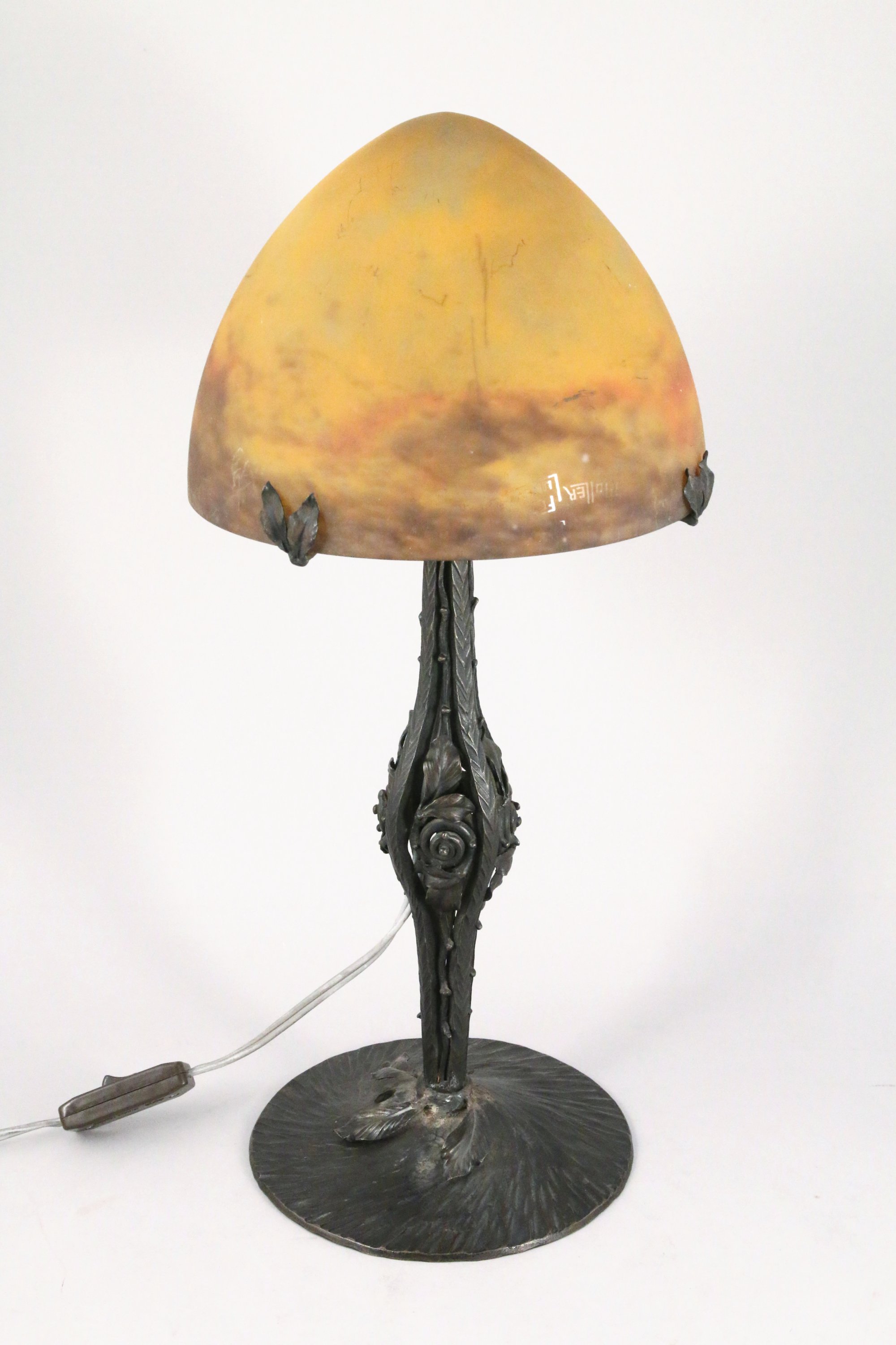 MULLER Frères Lunéville. LAMPE de TABLE de forme champignon, l'abat-jour...