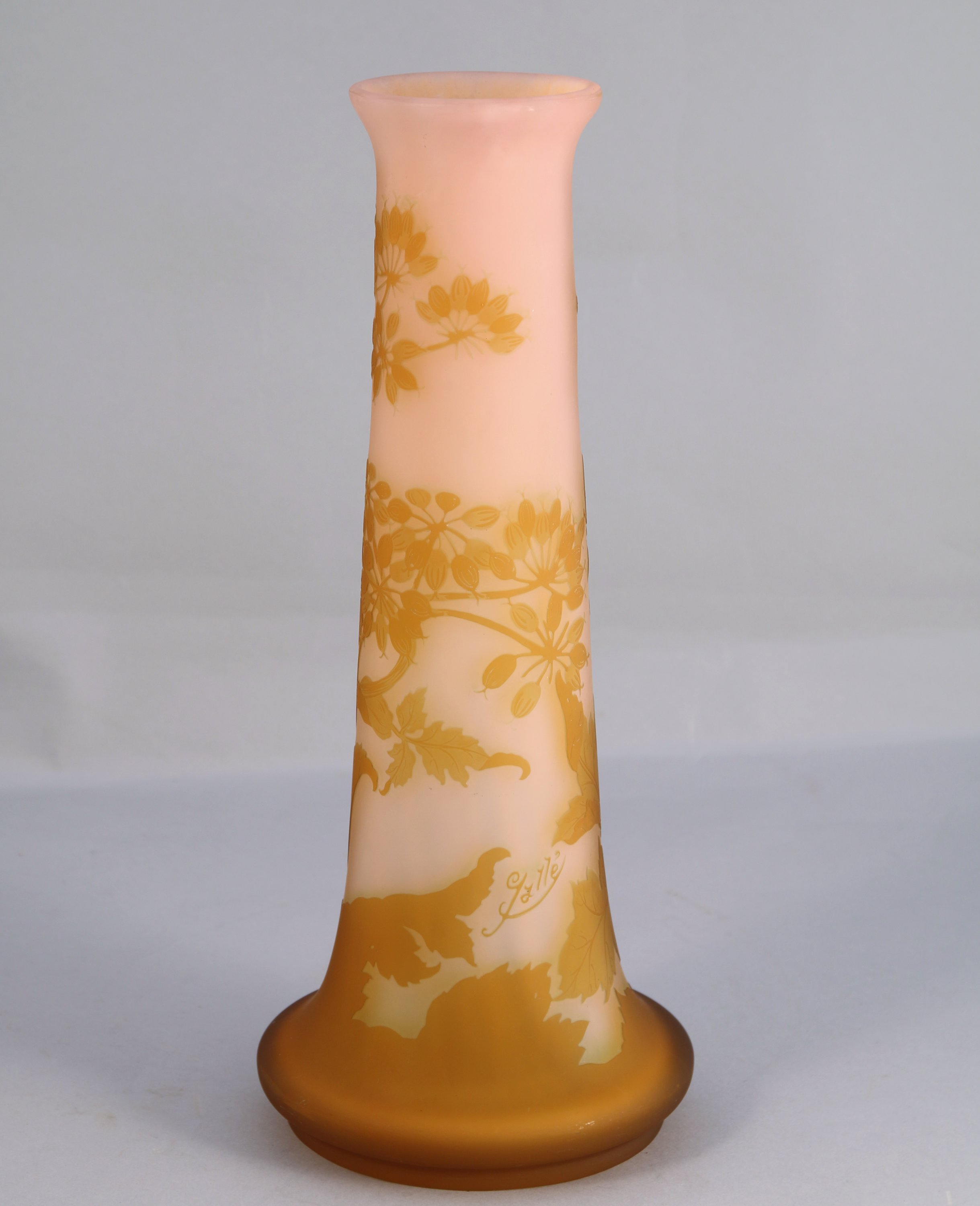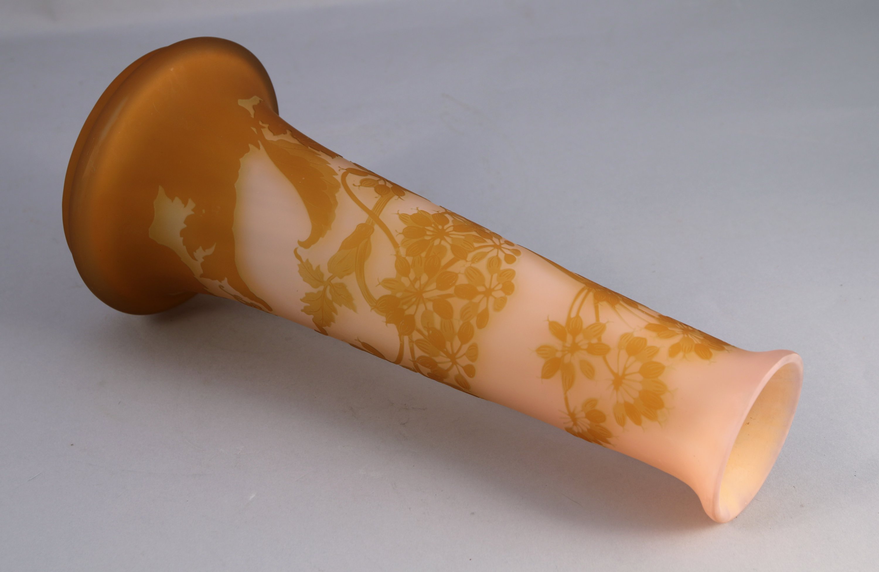 GALLÉ. VASE de forme tronconique à panse aplatie et col...