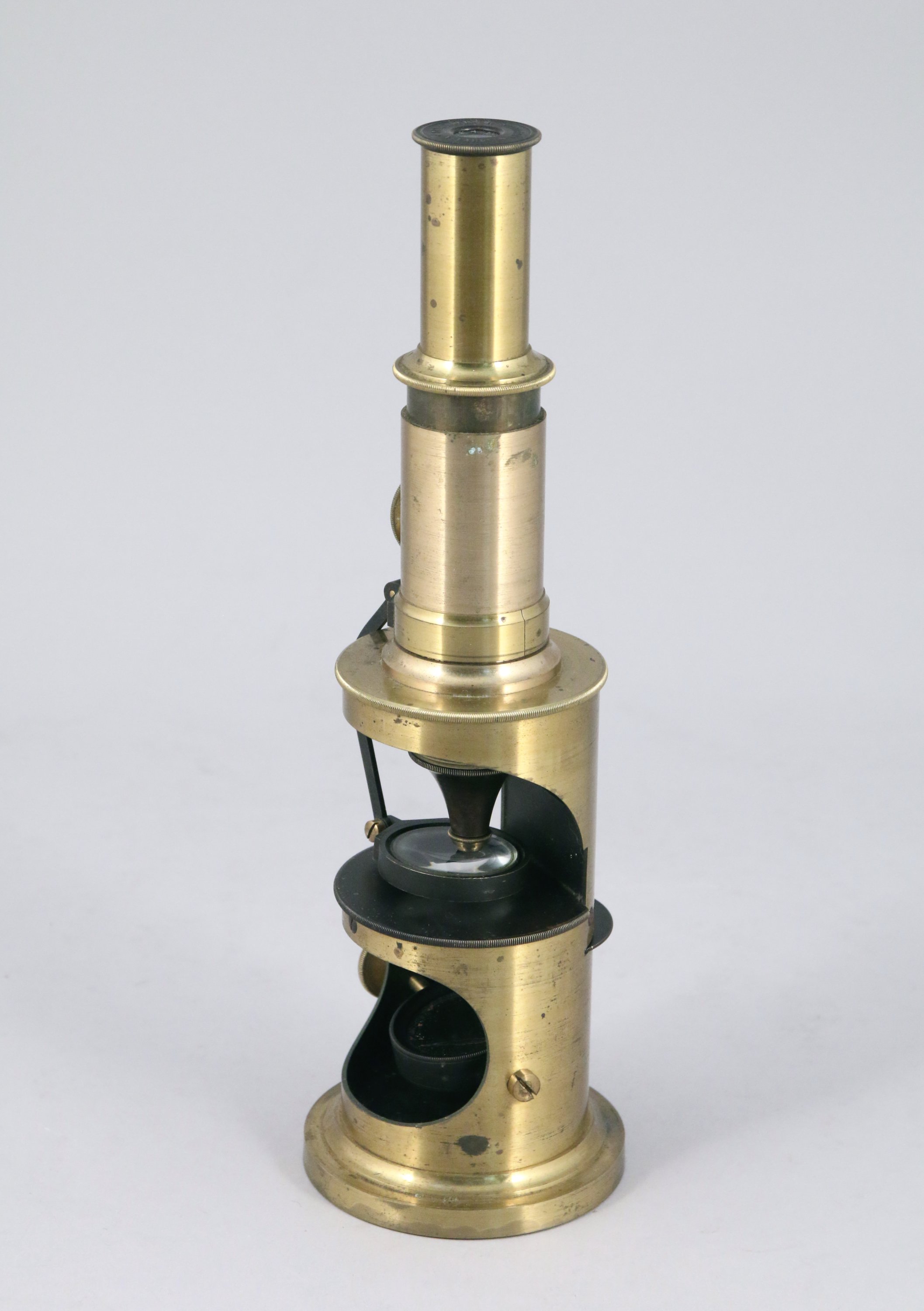MICROSCOPE et ses ACCESSOIRES en laiton, dans son coffret en bois.