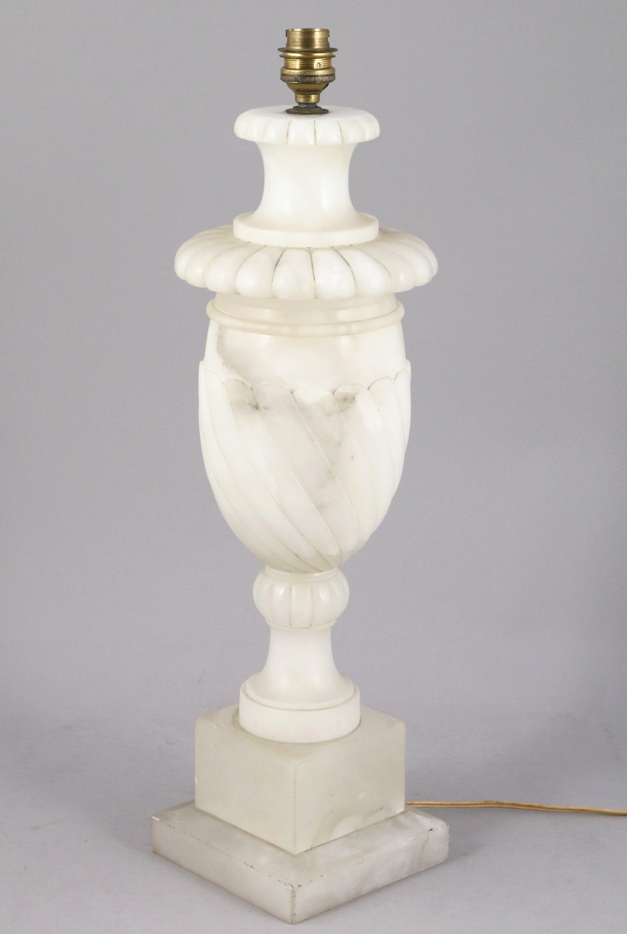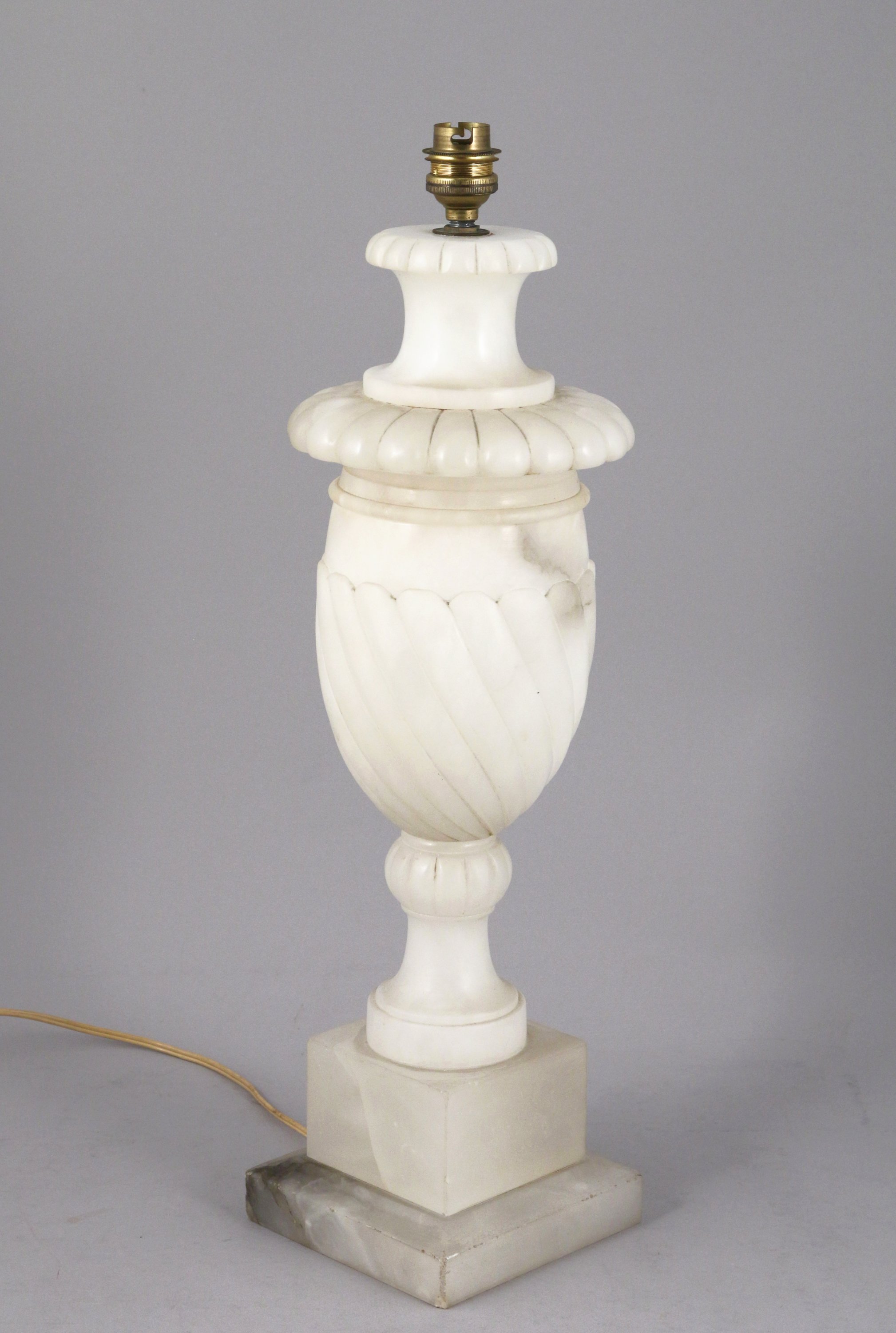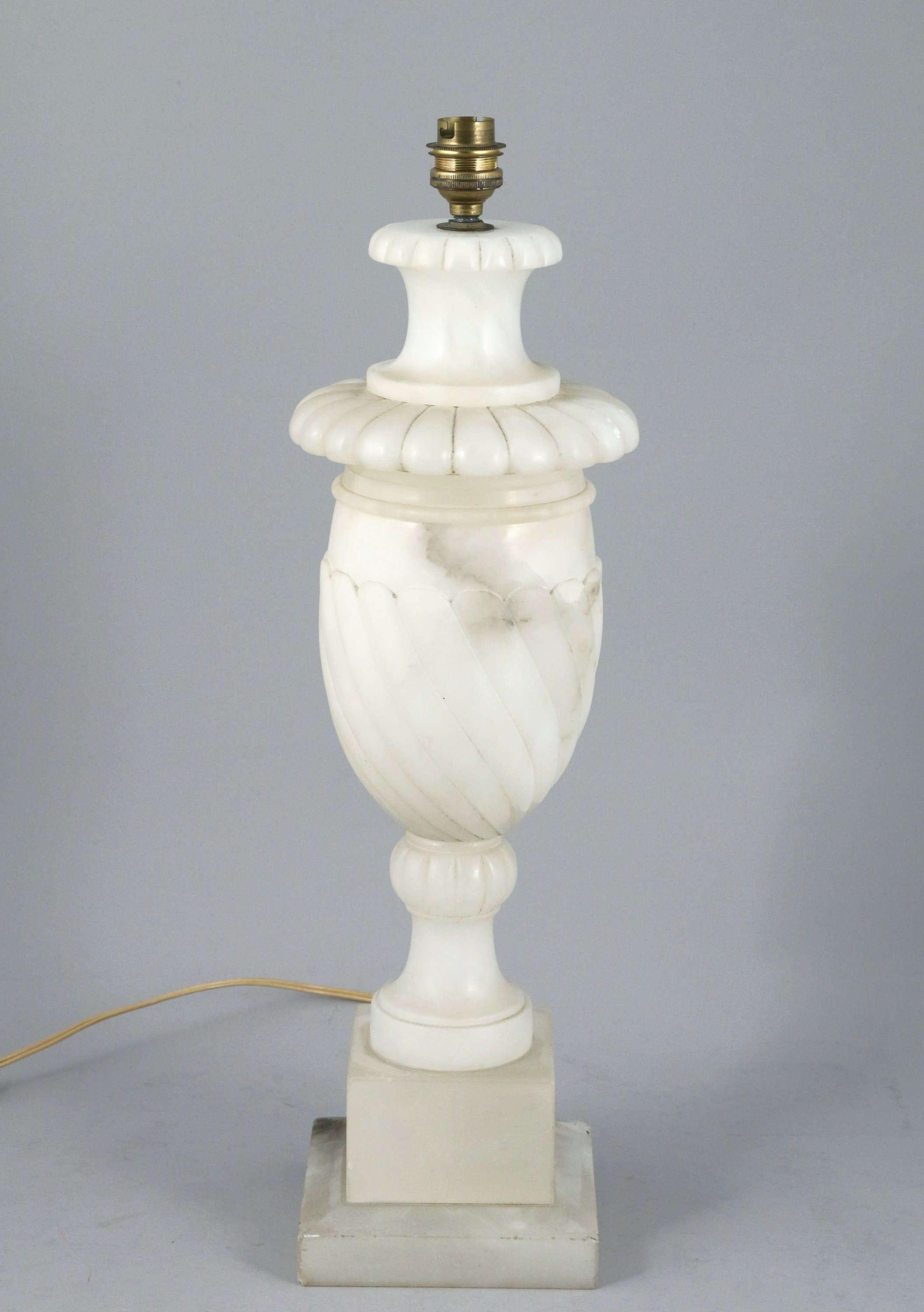 de forme ovoïde décoré de godrons enroulés. Il repose sur un piedéstal du même matériau. Électrifié.