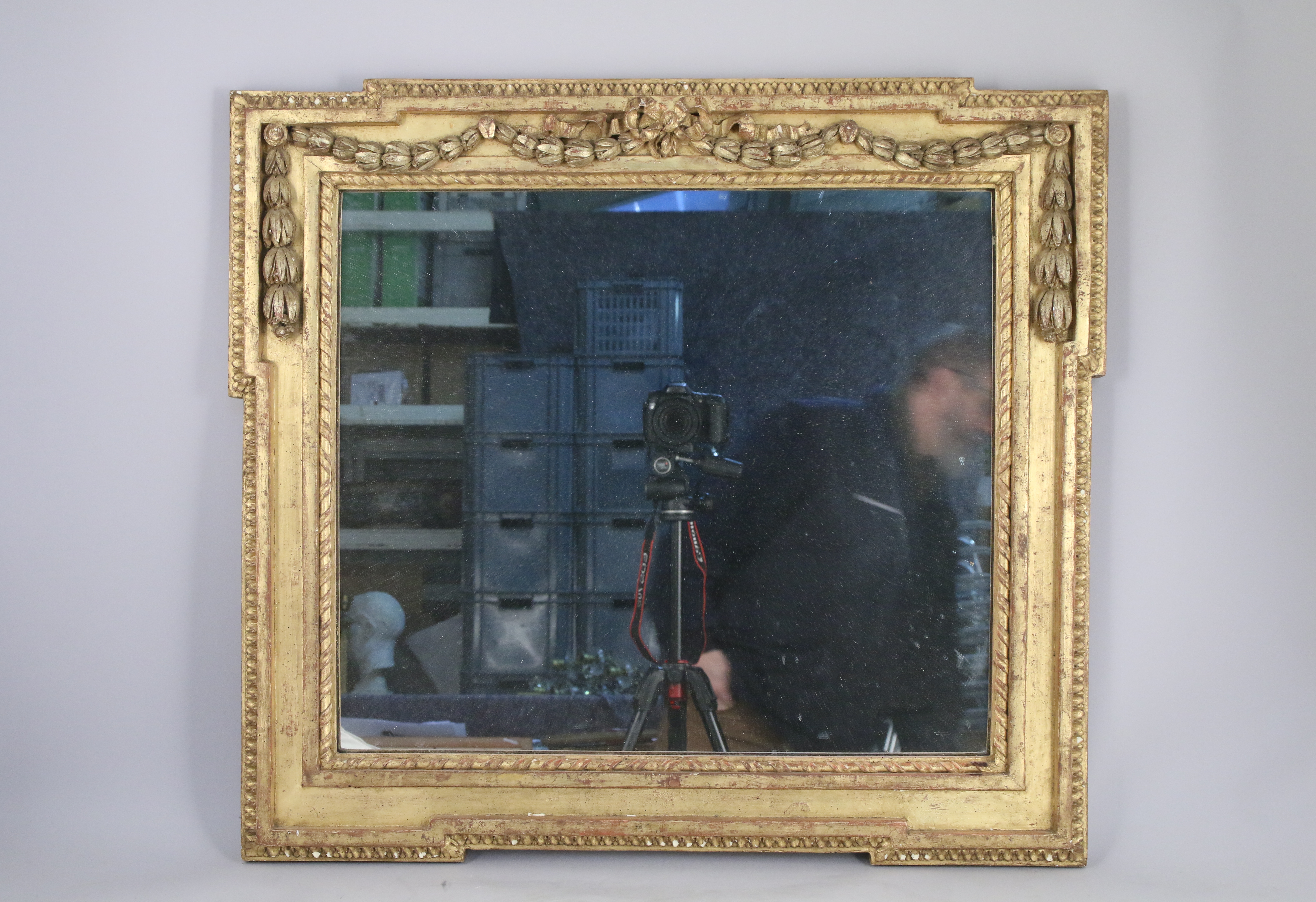 de forme rectangulaire avec un ressaut en partie supérieure, ornée de guirlandes de fleurs de pavots tombantes et frises de lotus.