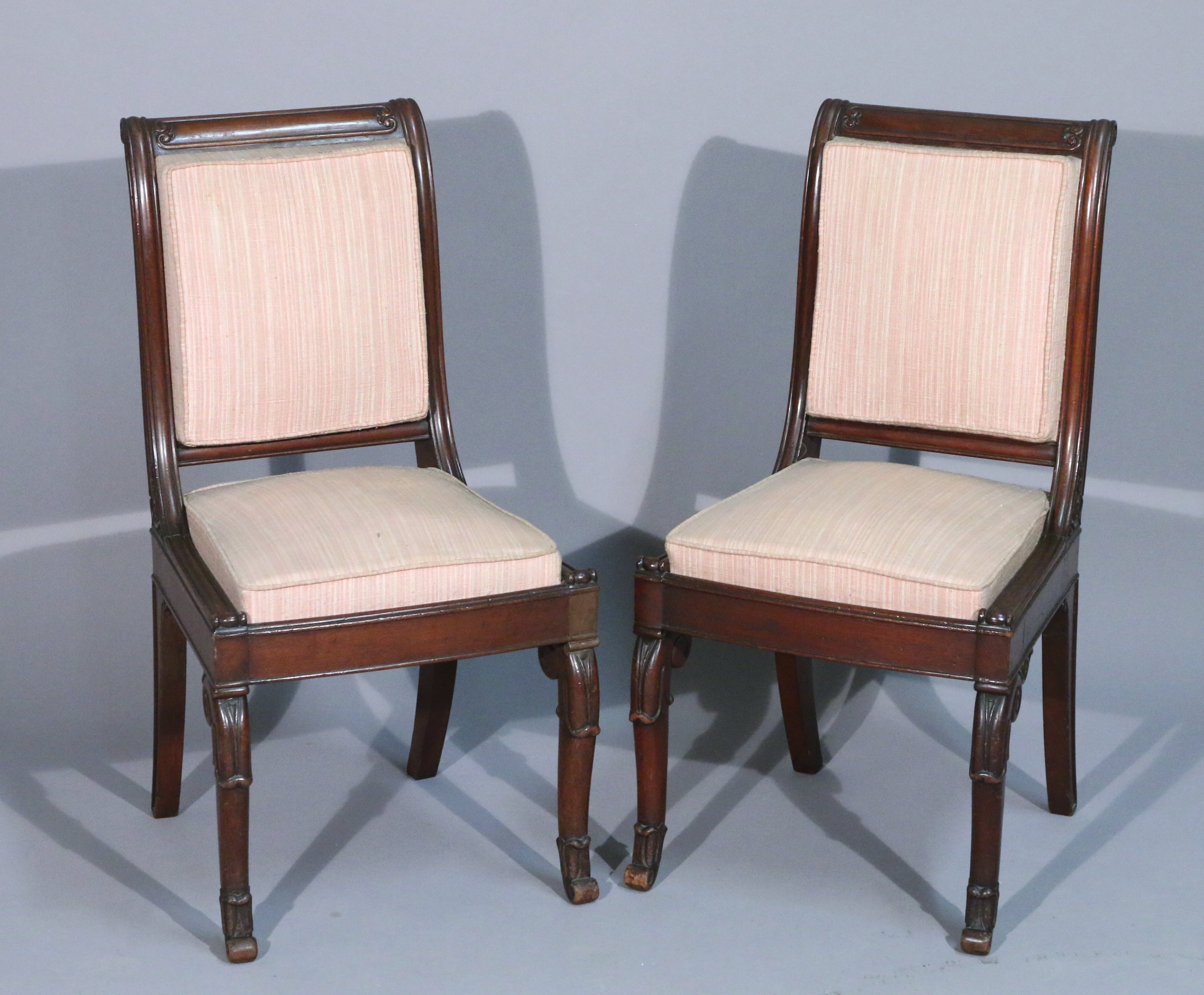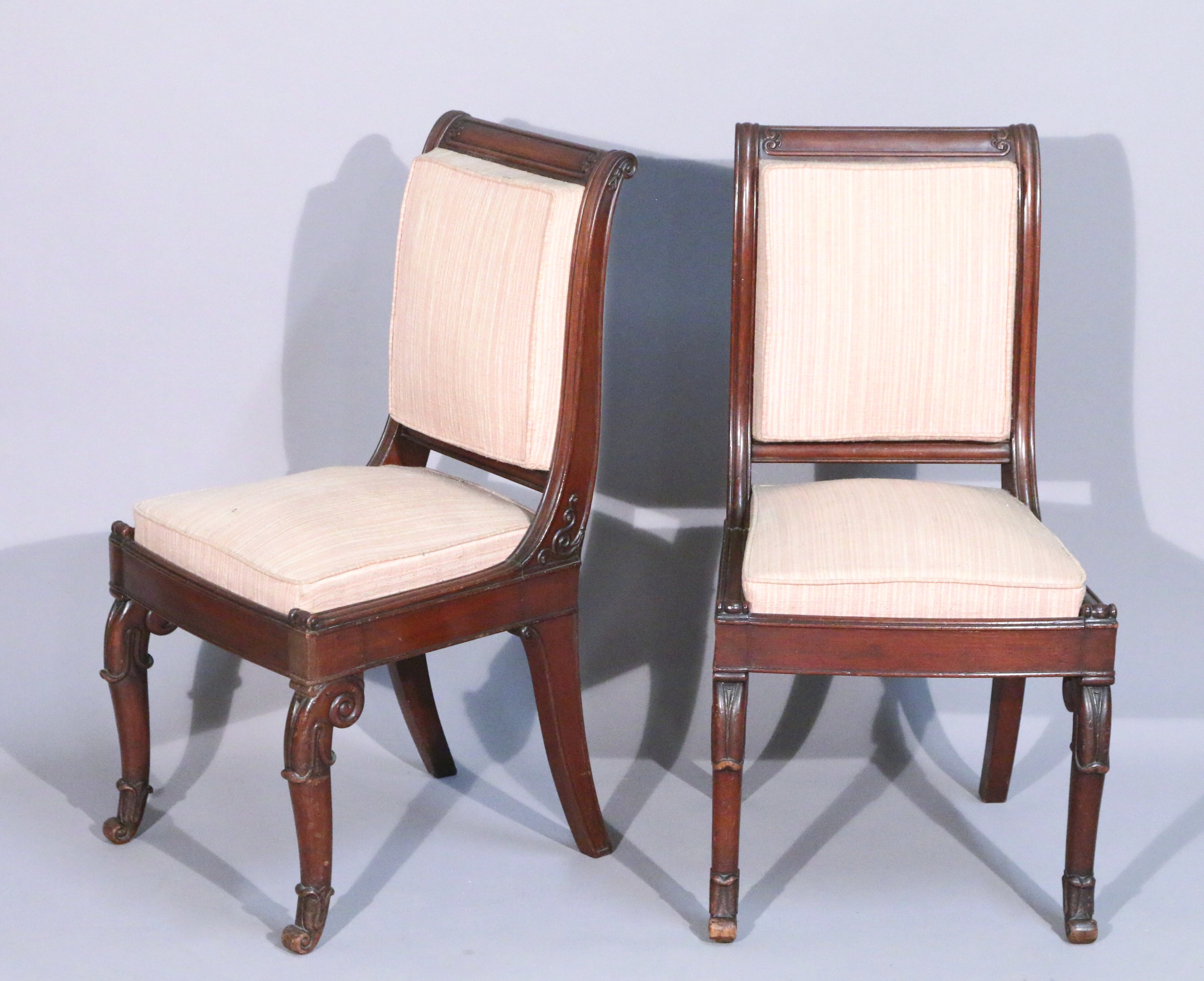 JOINT : Paire de CHAISES à dossier renversé, en acajou. Première moitié du XIXe. Haut. 89 Larg. 46 Prof. 46 cm.