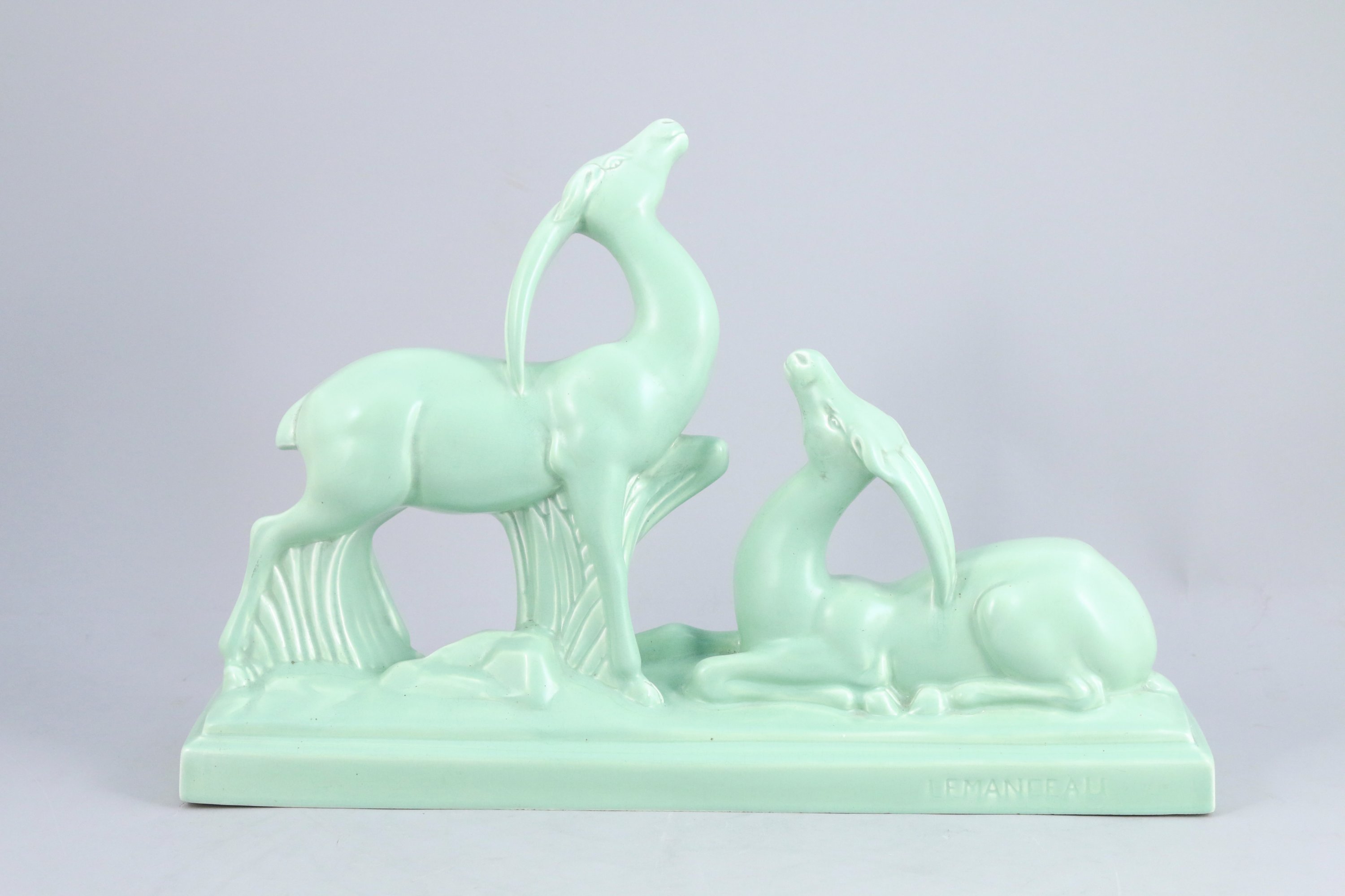 "Couple de gazelles", céramique céladon craquelée, circa 1930.