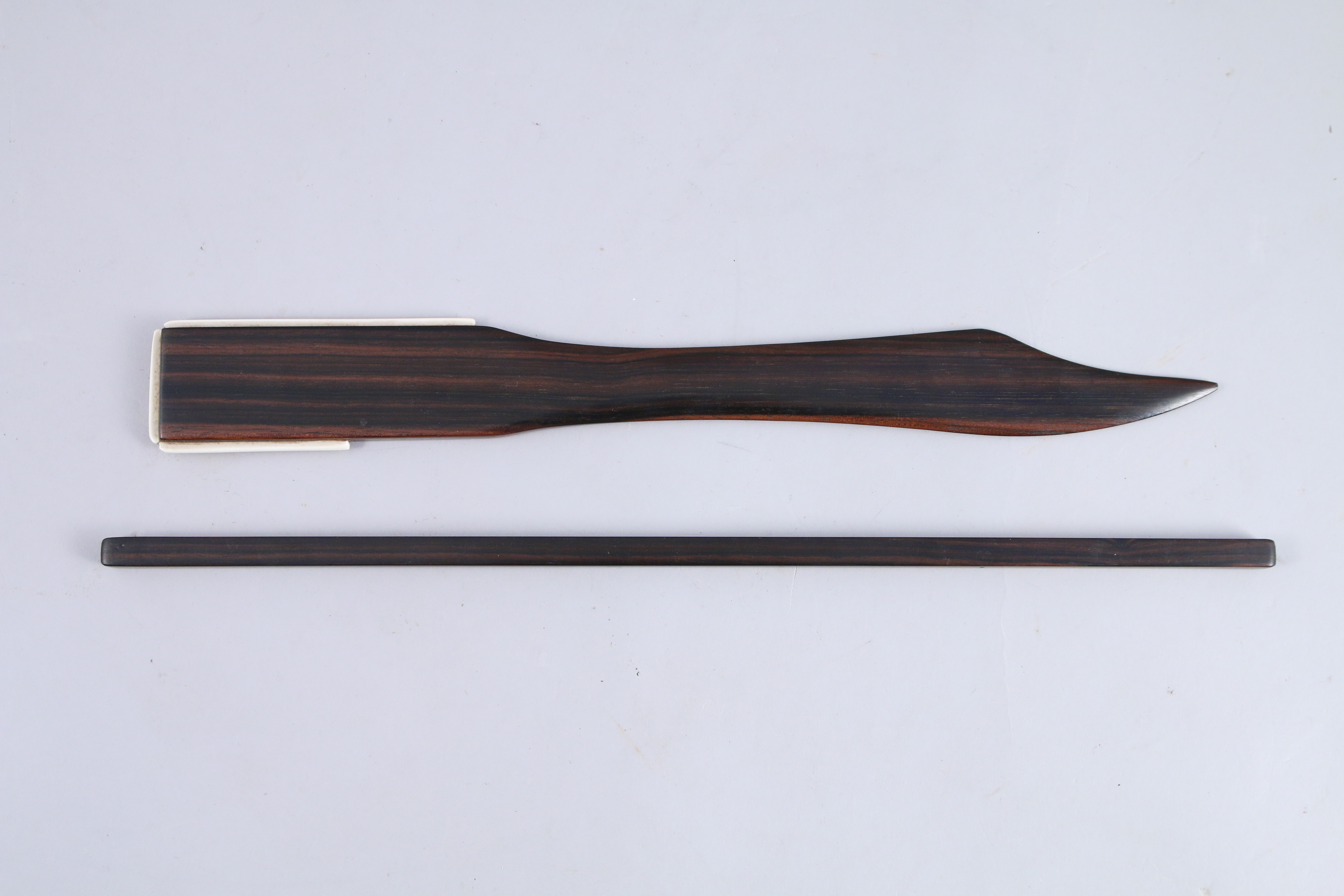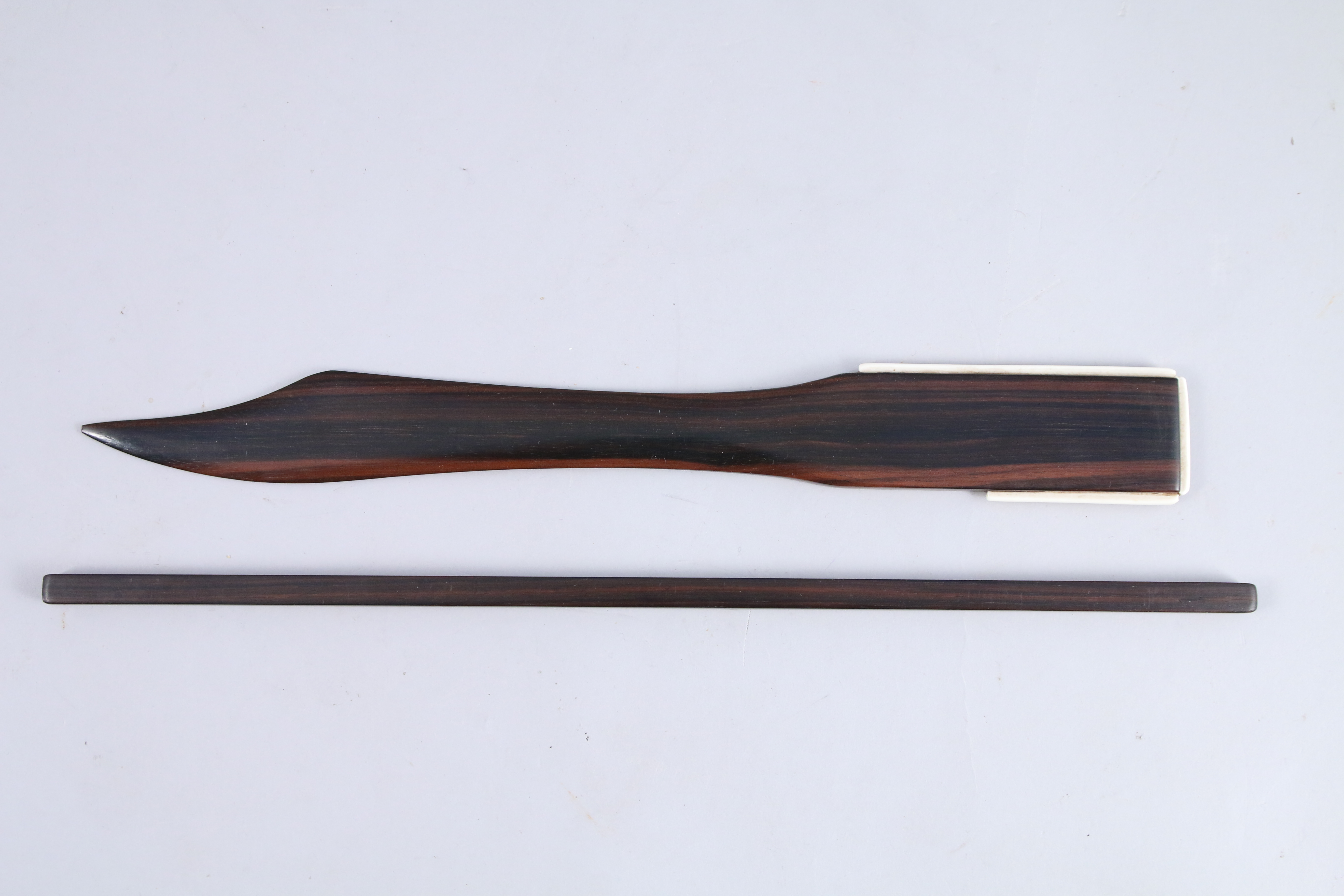 en palissandre et ivoire et règle en palissandre de section carrée.