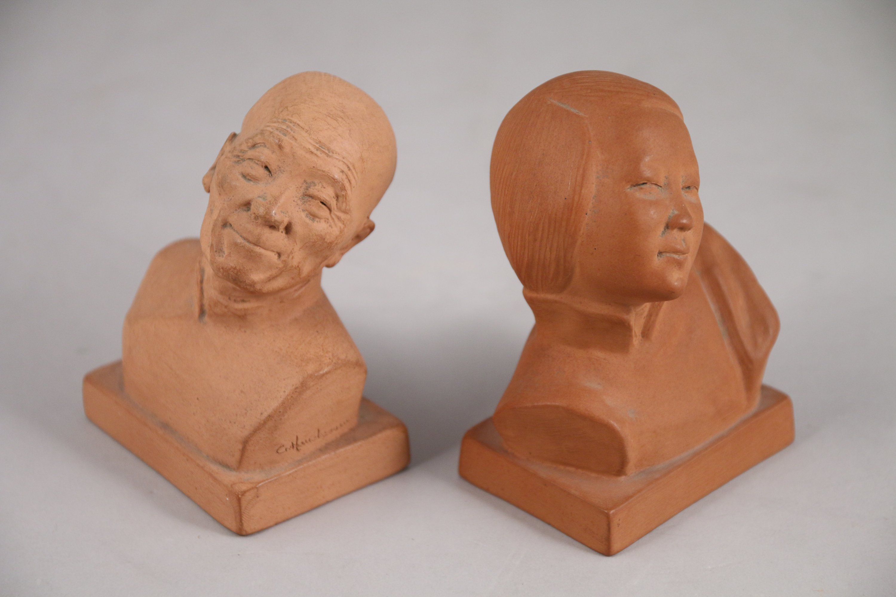 Buste de vieil asiatique et buste de jeune fille asiatique.