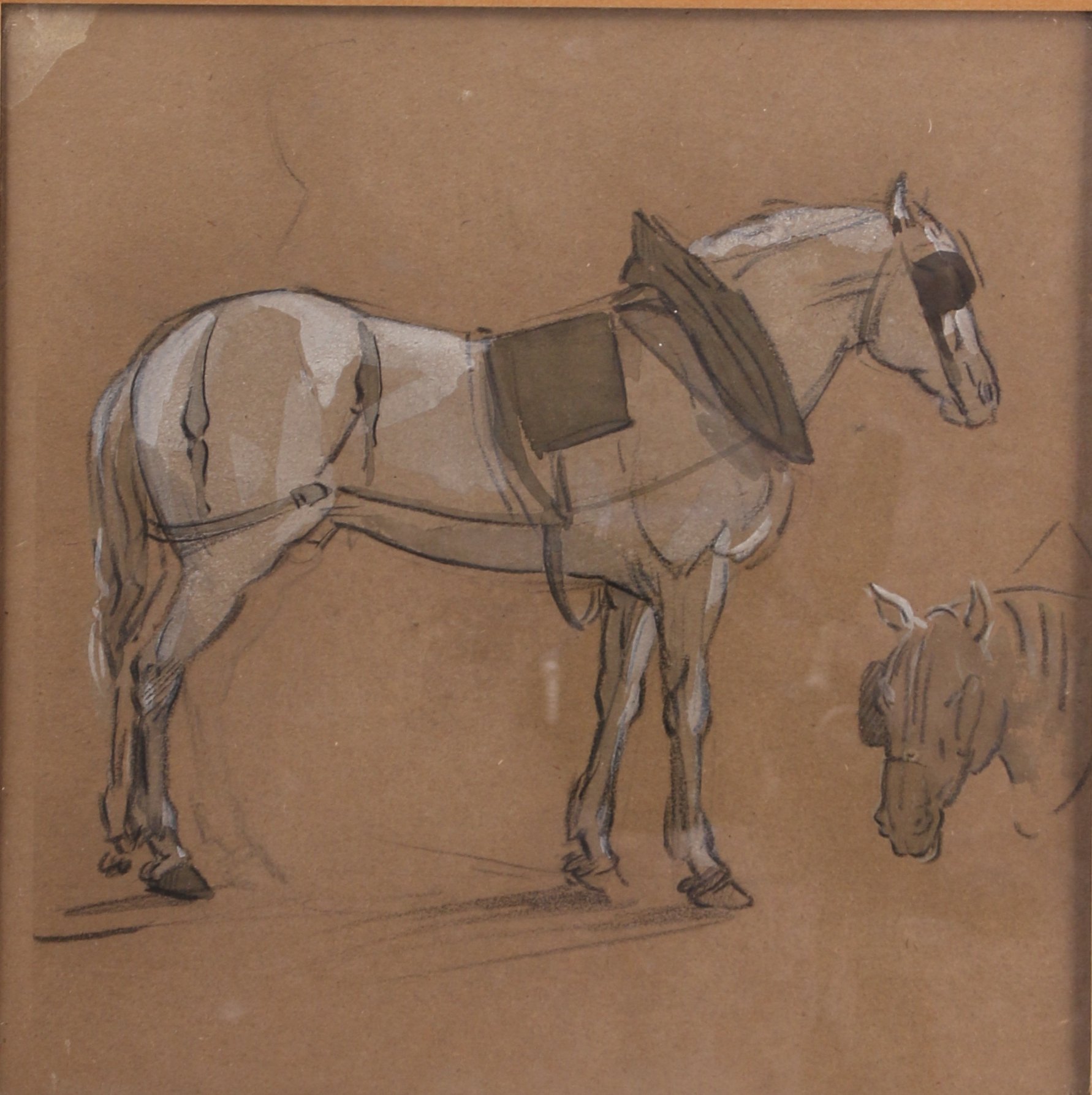 Pierre noire et rehauts de craie et de gouache blanche sur papier chamois.