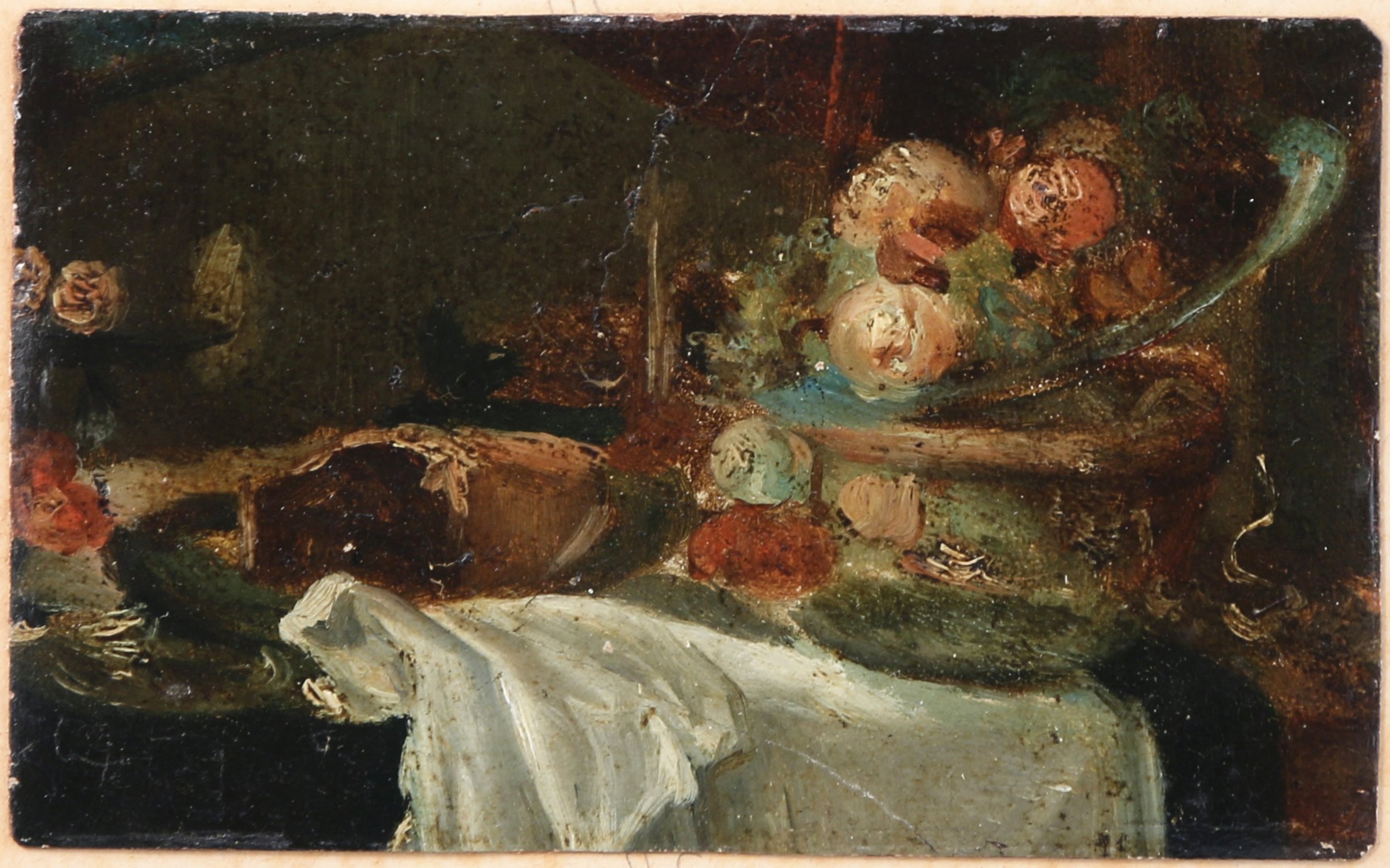 École du XIXe siècleNature morte au chaudron sur une nape.Huile...