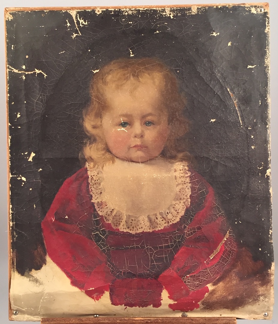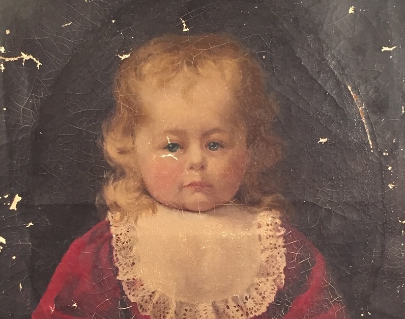 Ébauche, portrait d'enfant au bavoir en dentelles