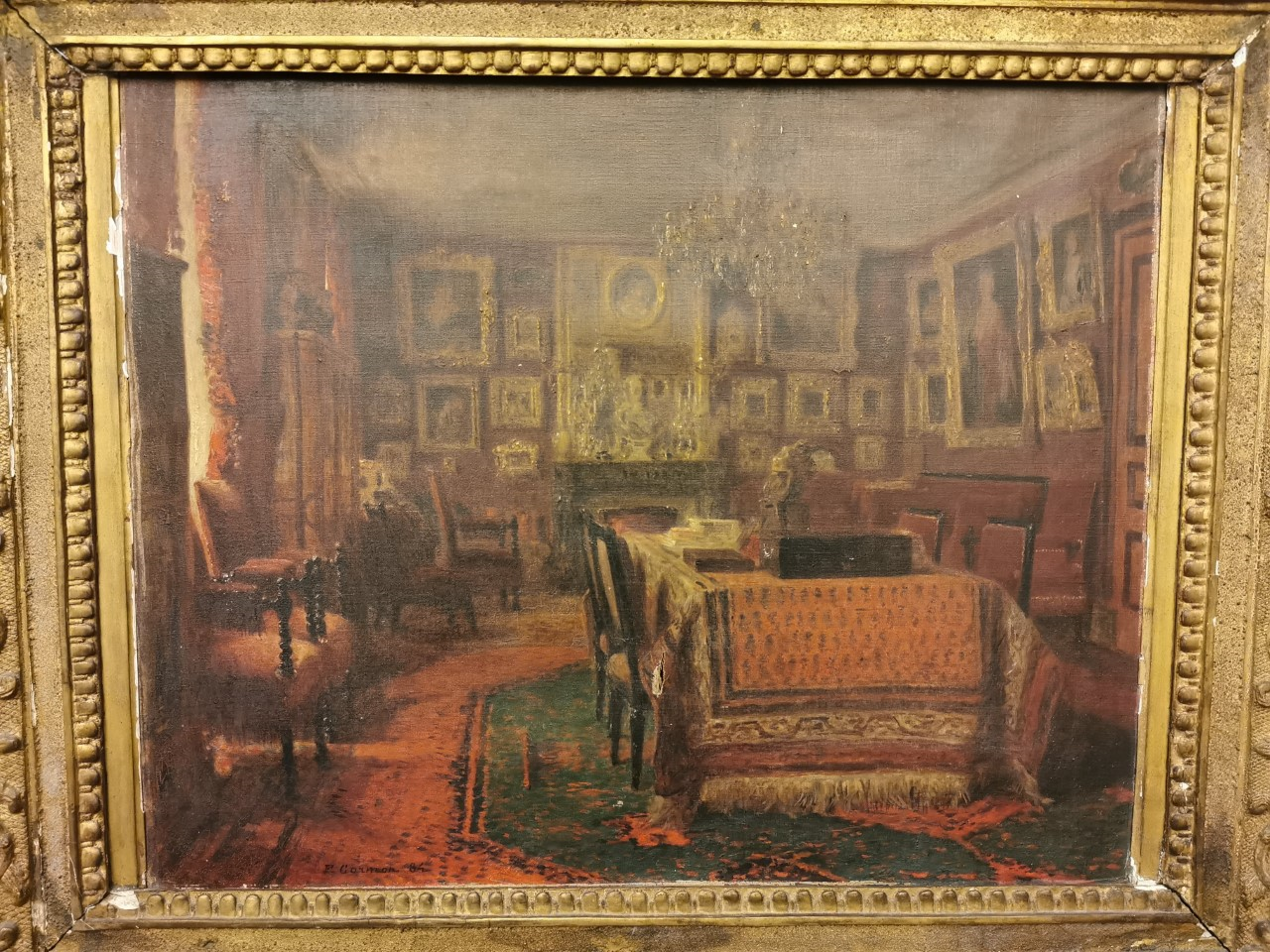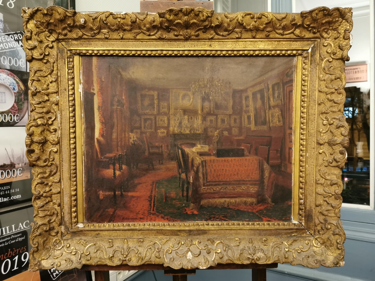 Diplomate, journaliste et écrivain, Félix-Sébastien Feuillet de Conches (1798-1887) commande en 1884 au peintre Fernand Cormon qui vient d'ouvrir son atelier boulevard de Clichy de peintre l'intérieur de son appartement du 10 rue d'Aubigny dans le XVIIe à Paris. Ses collections sont célèbres dans le tout Paris, et jusqu'à Londres où a été dispersée quelques années plus tôt sa bibliothèque, qui contenait notamment les contes de La Fontaine illustré par Fragonnard. Le Metropolitan Musuem à New York conserve de cette collection La lettre d'amour par le même Fragonard (n°49.7.49).
