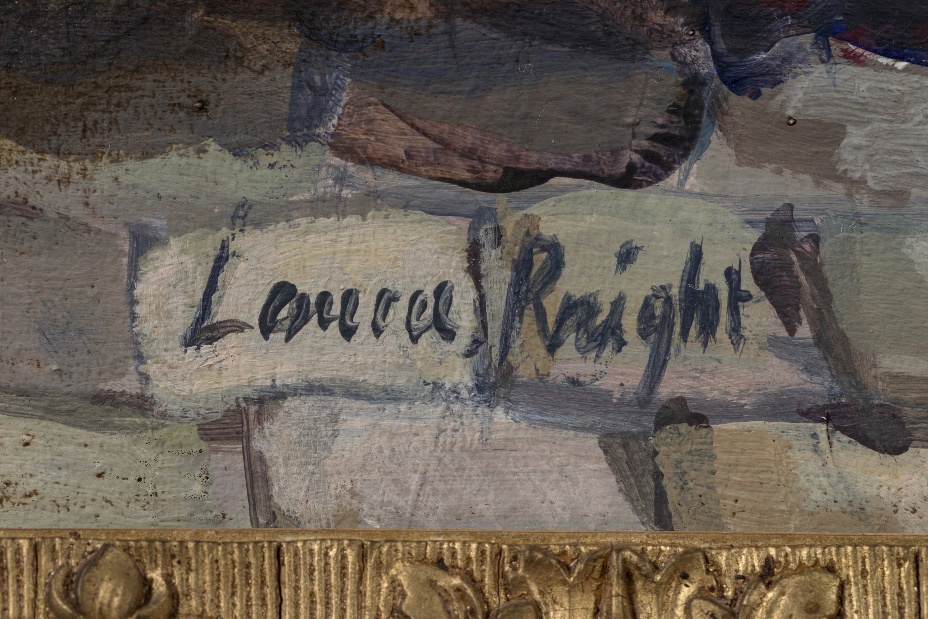 (toile accidentée, en l'état, riche cadre doré).
