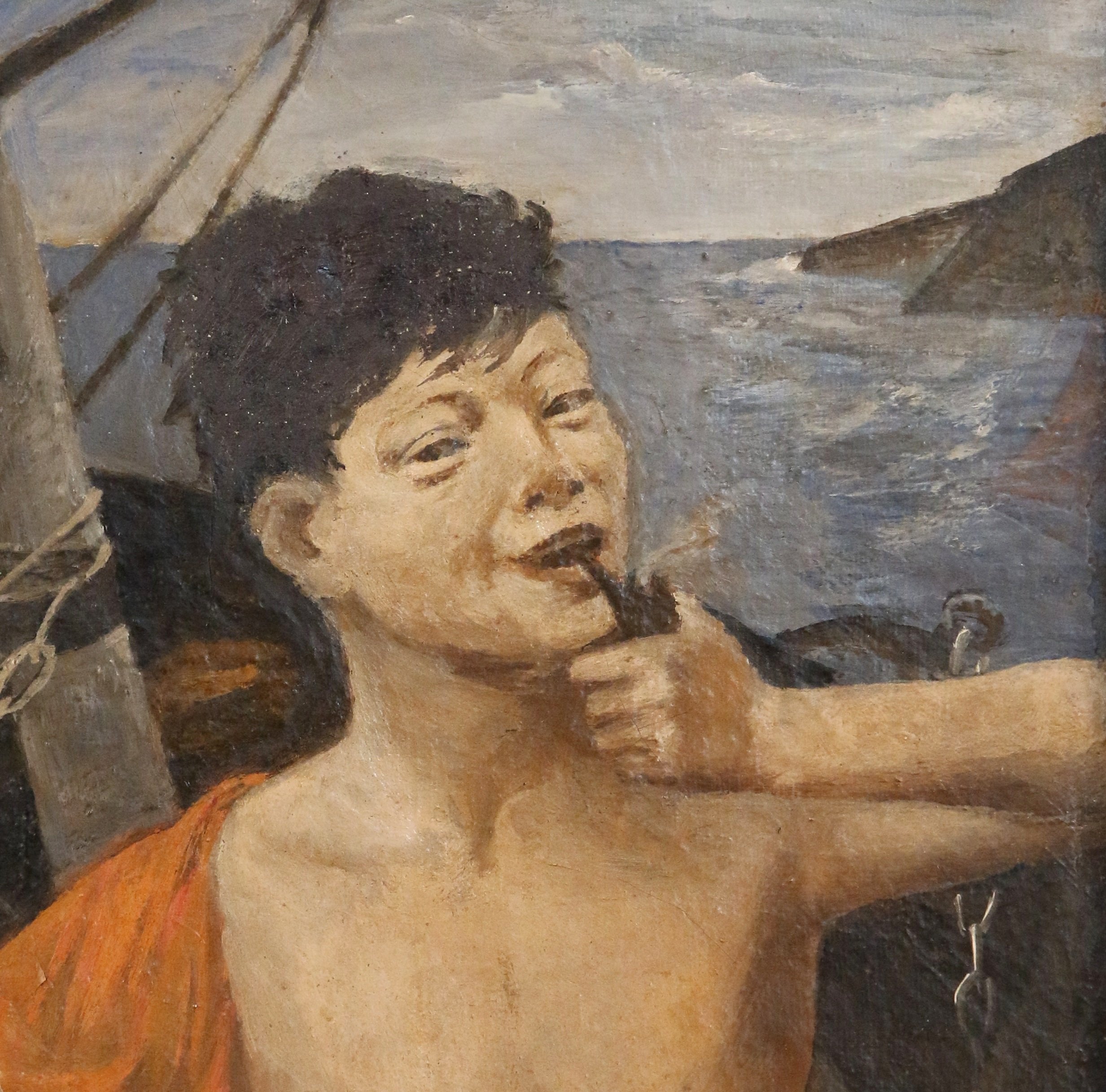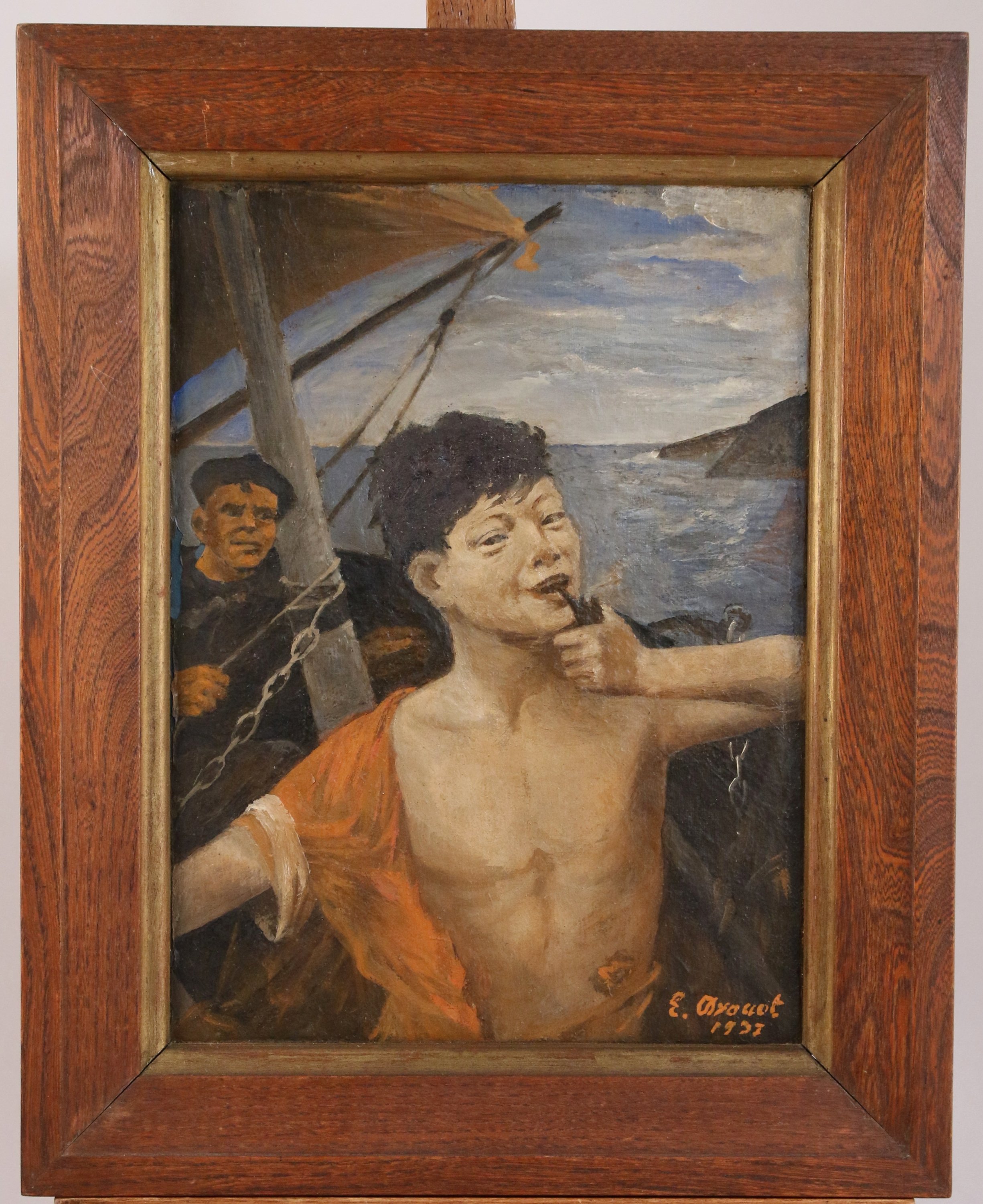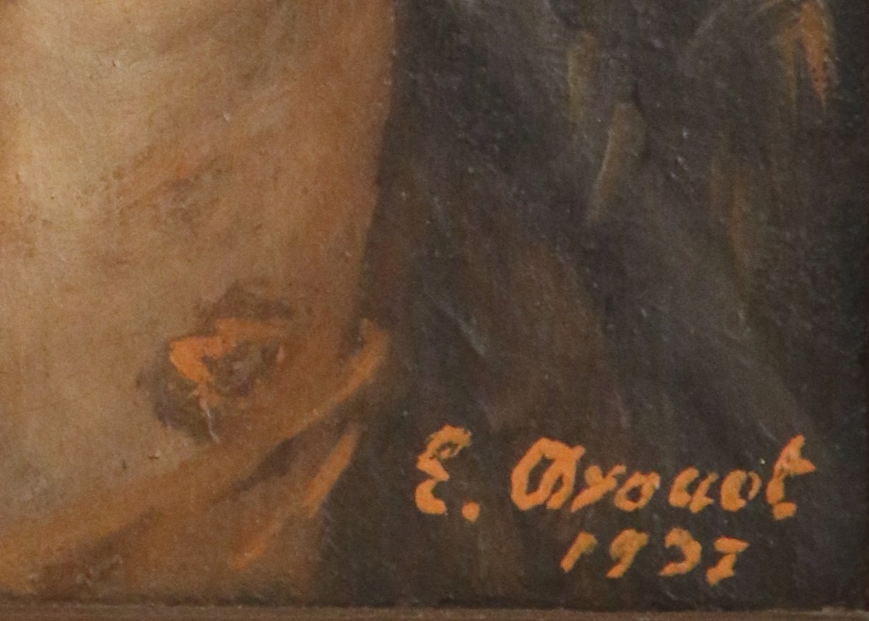 Le Bénézit rappelle qu'Édouard Drouot débute sa carrière comme peintre de genre auprès de ses maîtres Émile Thomas et Mathurin Moreau. Il obtient d'ailleurs une mention honorable en 1900. Devenu célèbre pour son travail de sculpteur, le tableau que nous présentons apparaît comme un rare travail de fin de carrière, sans comparaison à notre connaissance sur le marché de l'Art.
