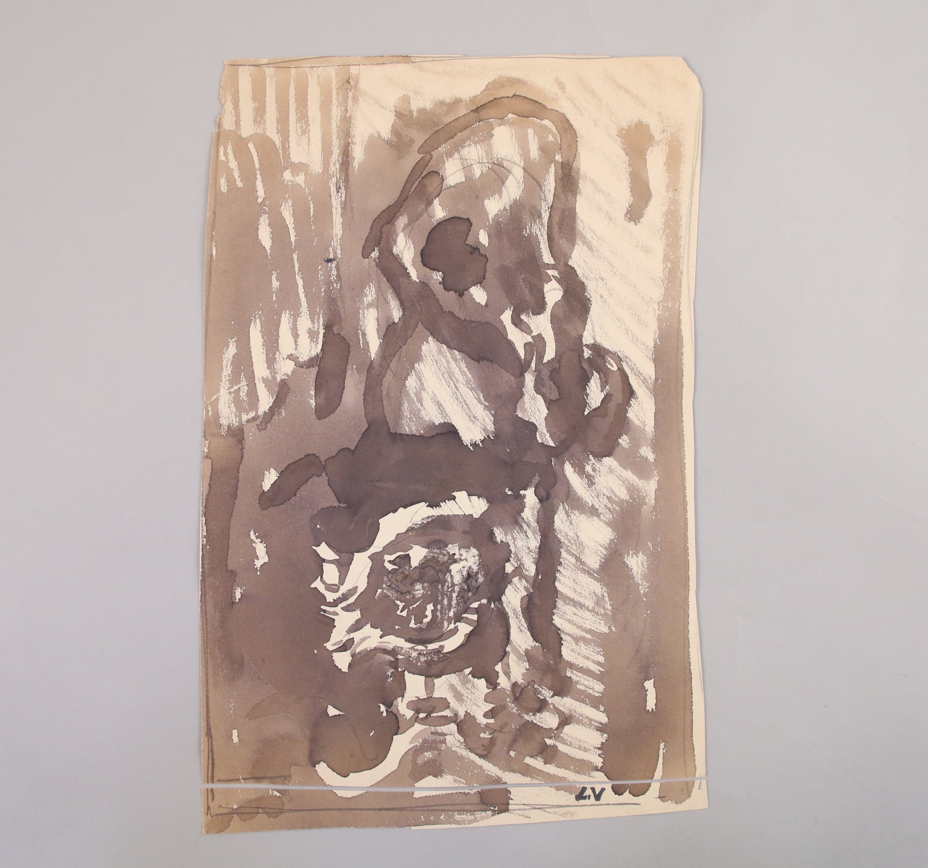 Lavis sur papier. Monogrammé "L.V" en bas à droite.
