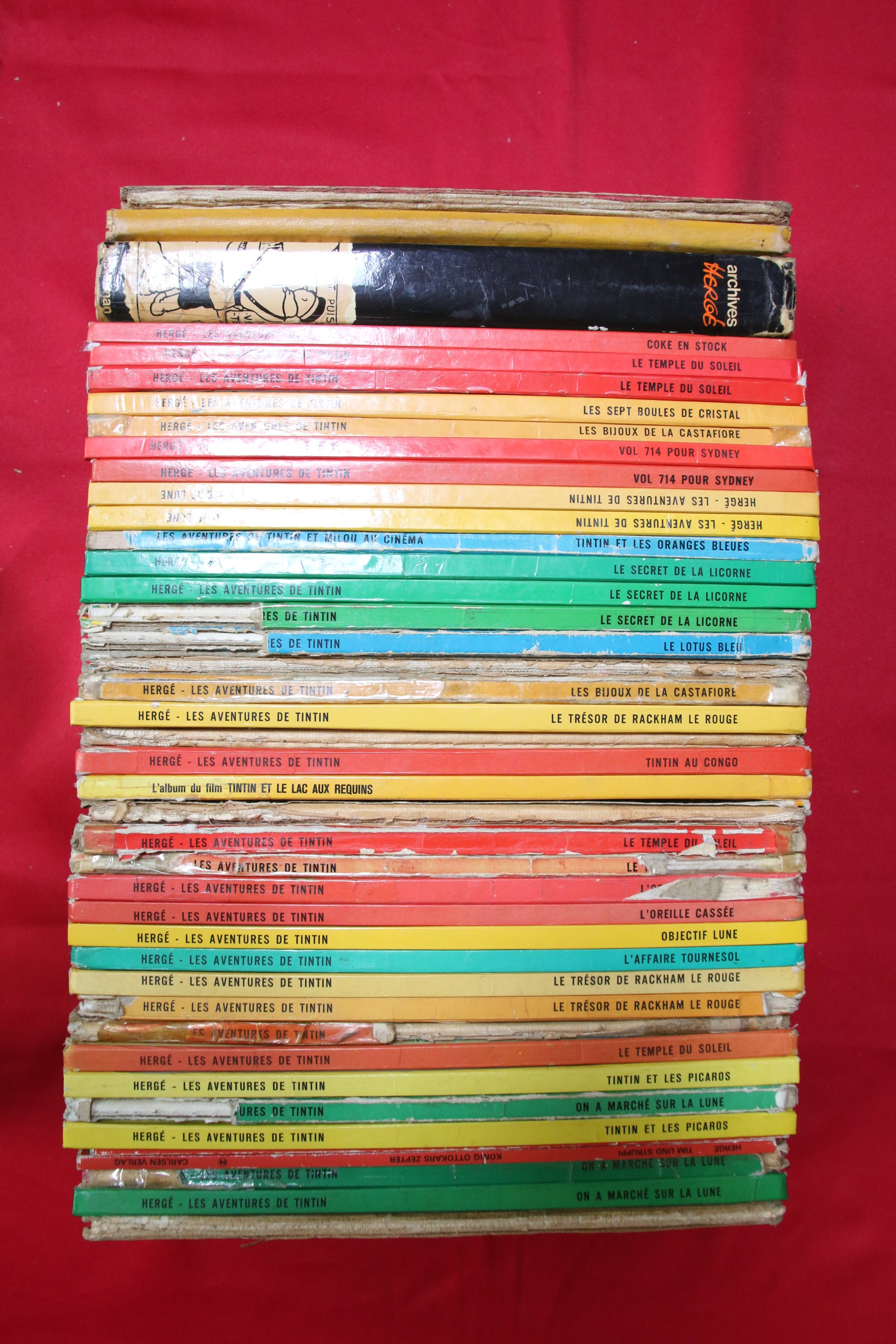 ENSEMBLE d'environ 40 ALBUMS de TINTIN dont "Le sceptre d'Ottokar", "Le lotus bleu" ou "Les bijoux de la Castafiore".