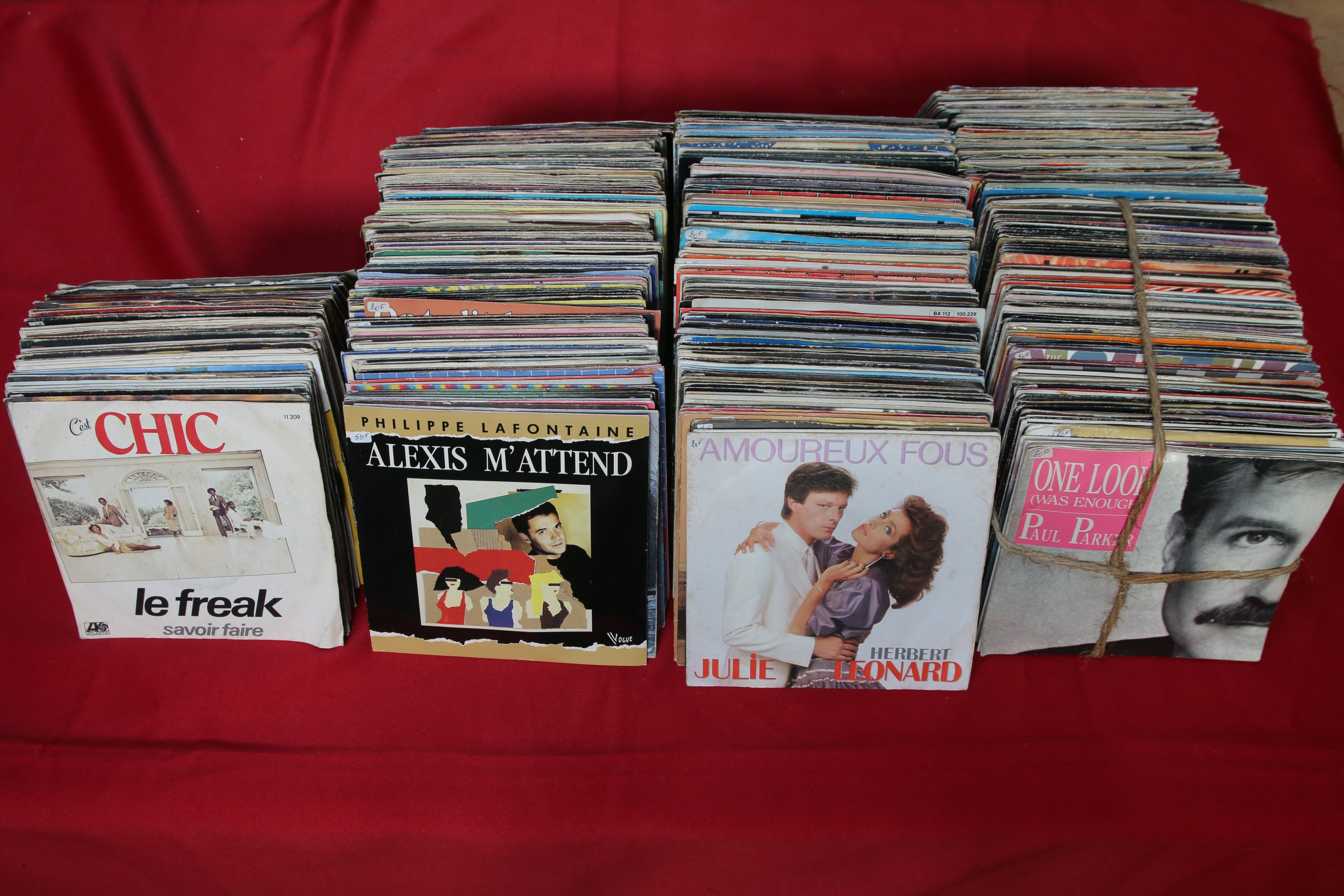ENSEMBLE de DISQUES 45 tours de variété, disco et divers des années 1970-1980 dont "Le freak" par Chic, "Alexis m'attend" par Philippe Lafontaine.