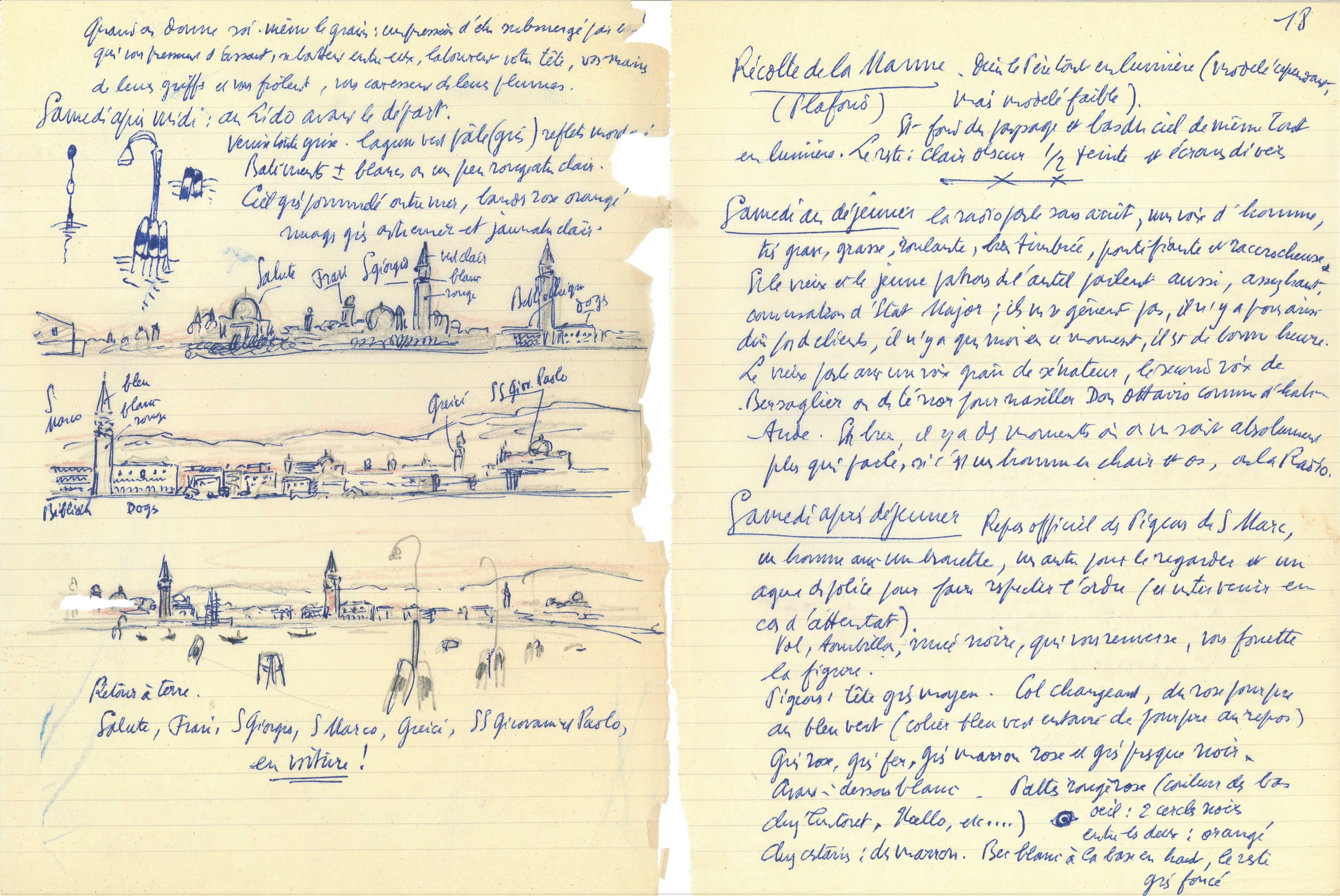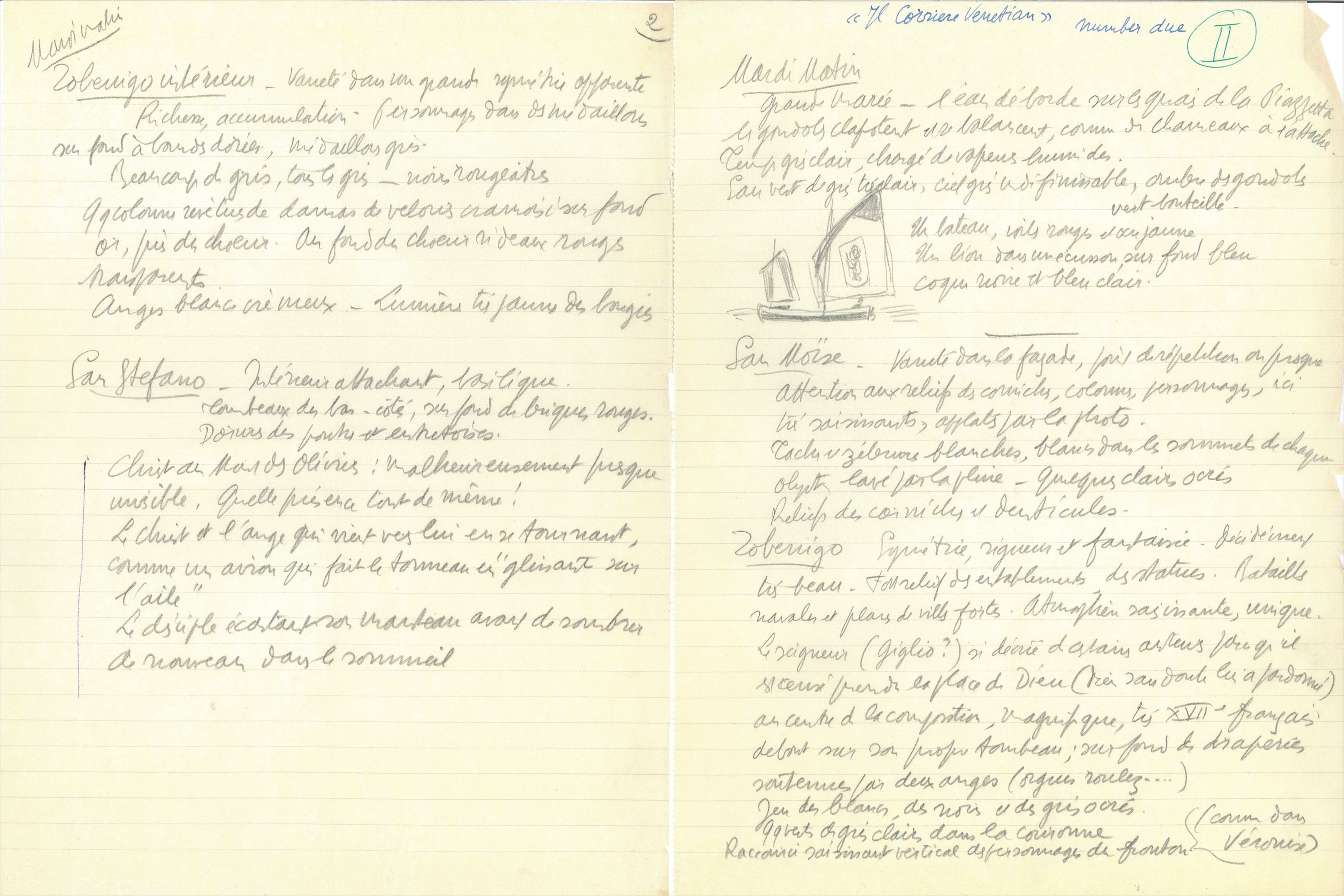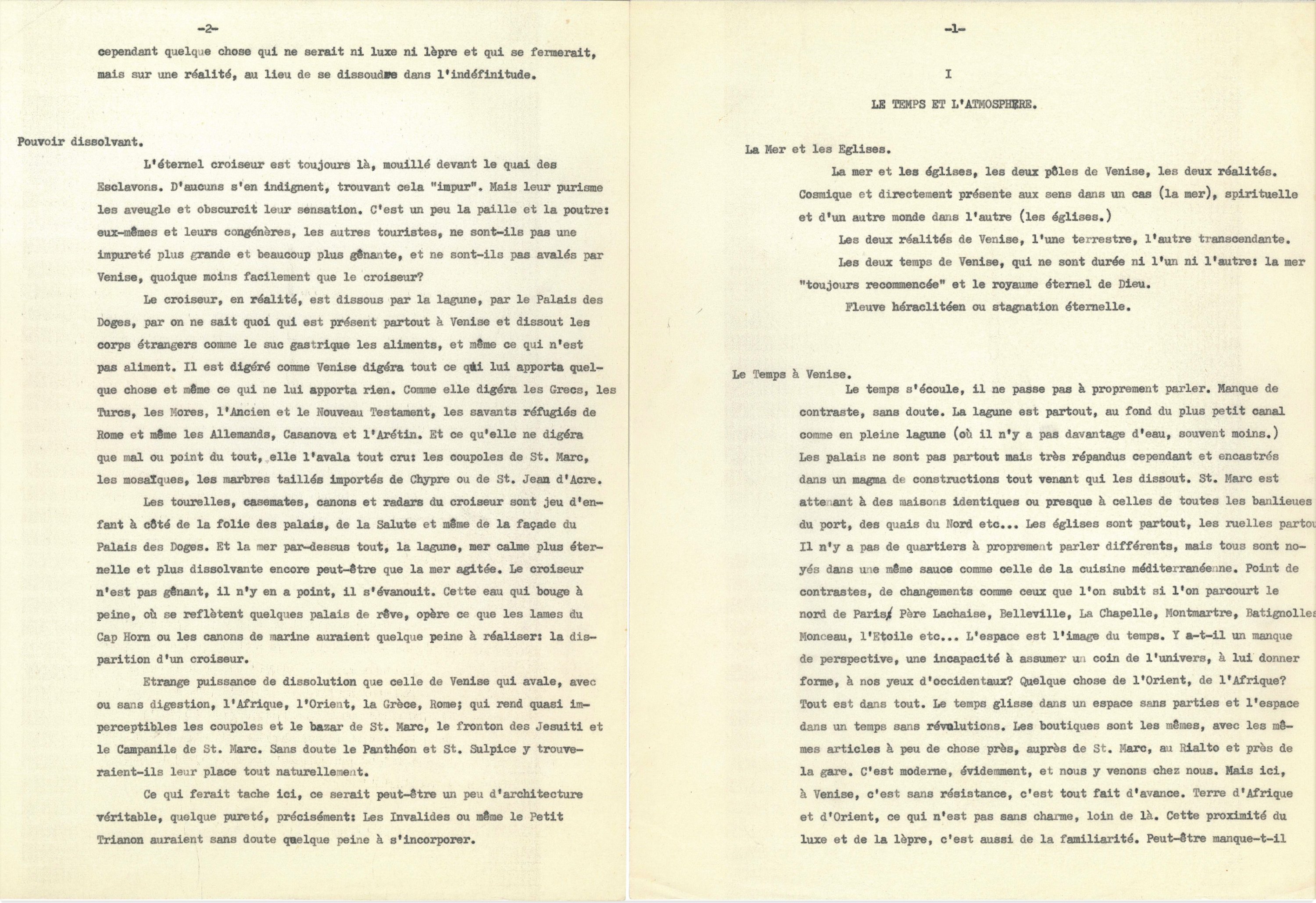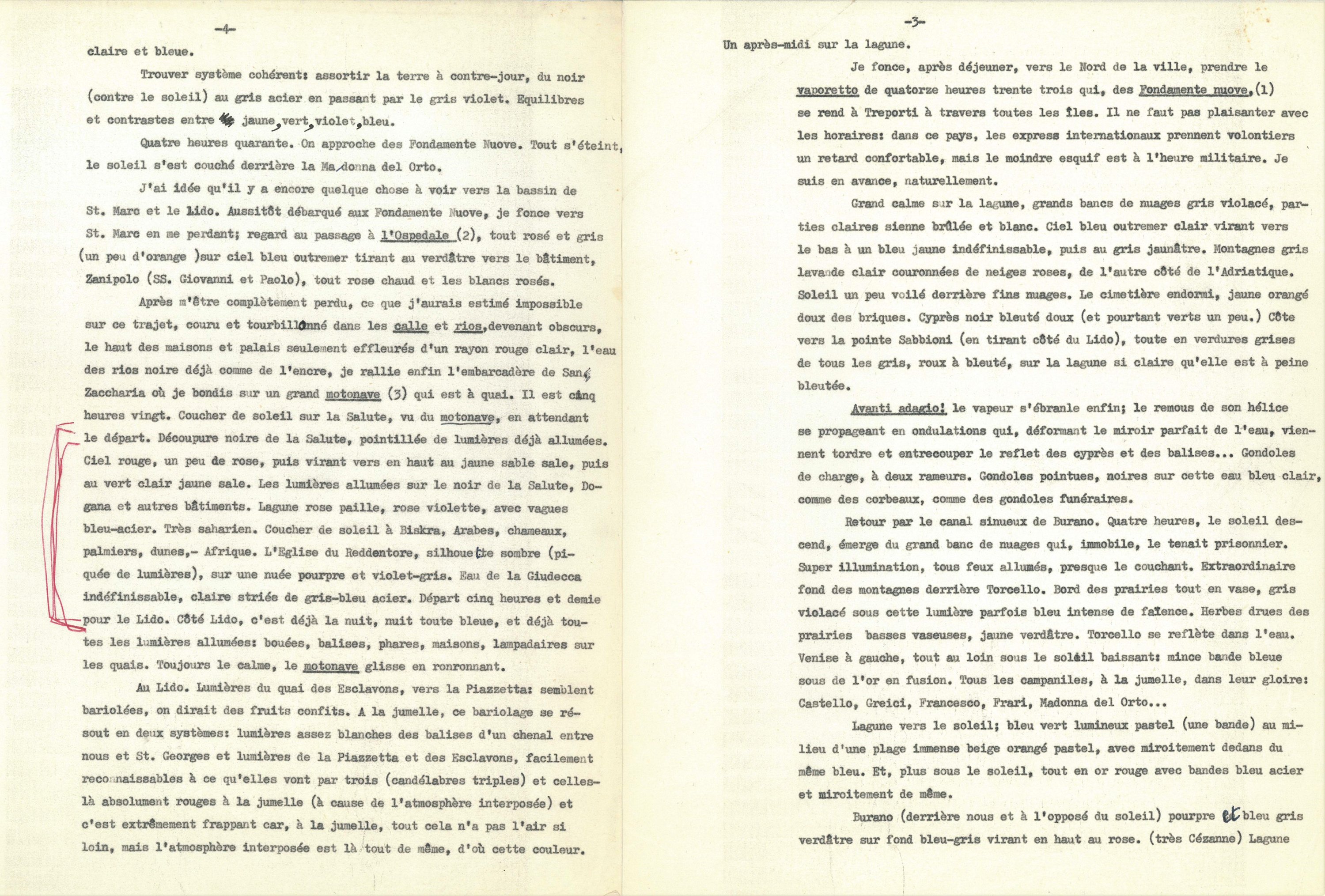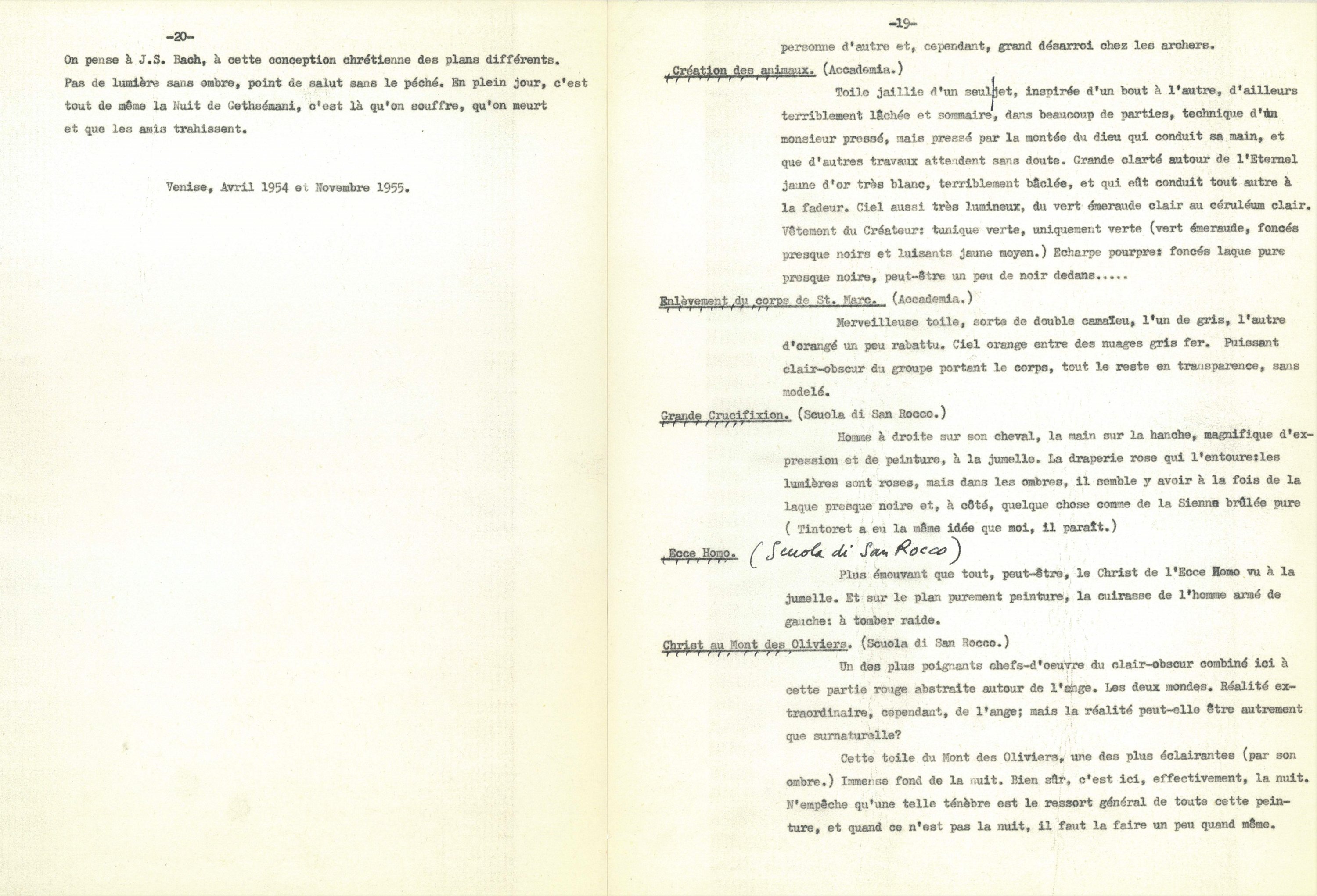 - Fragments du journal vénitien ", tapuscrit de 20 pages in-4, avril 1954 et novembre