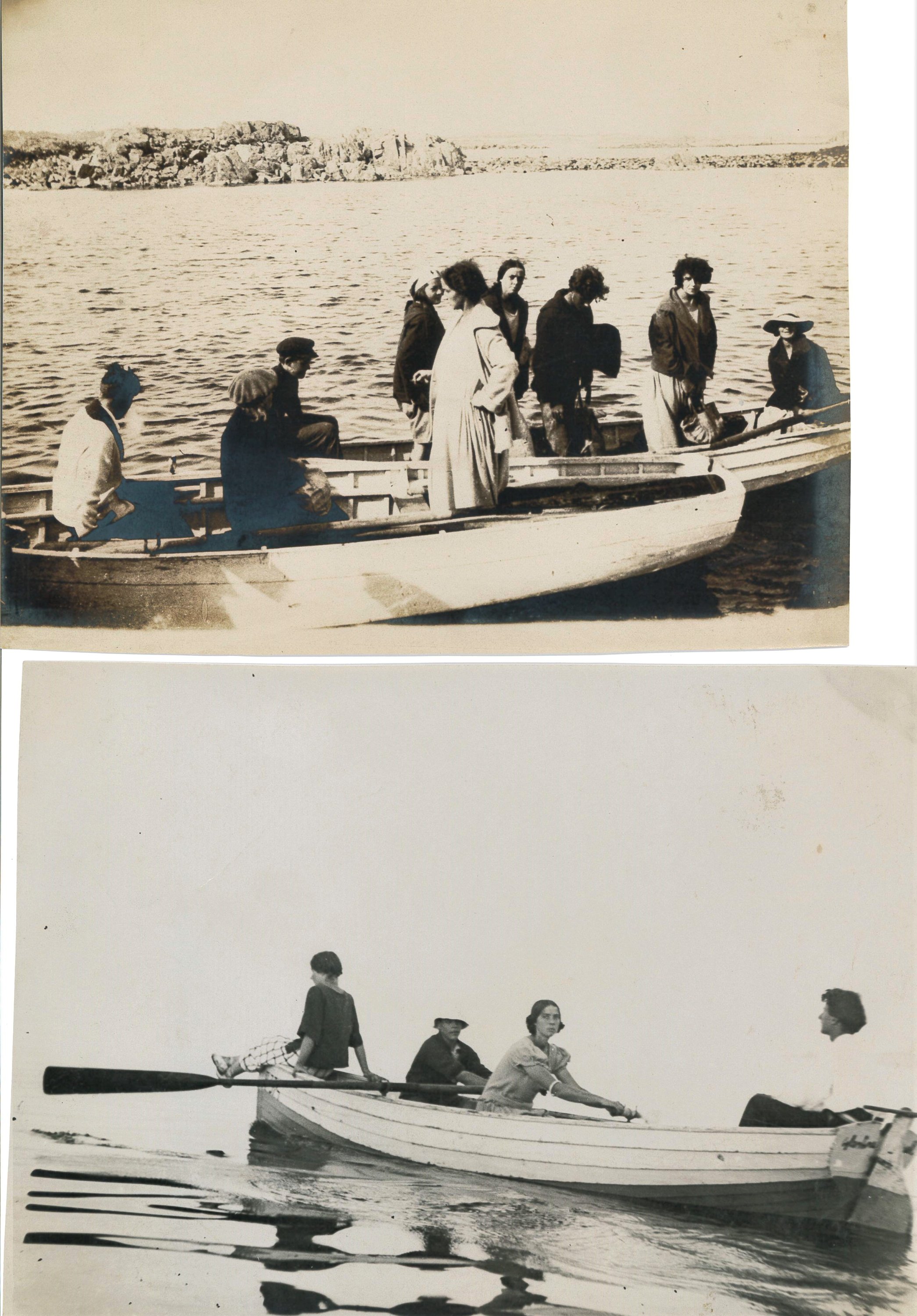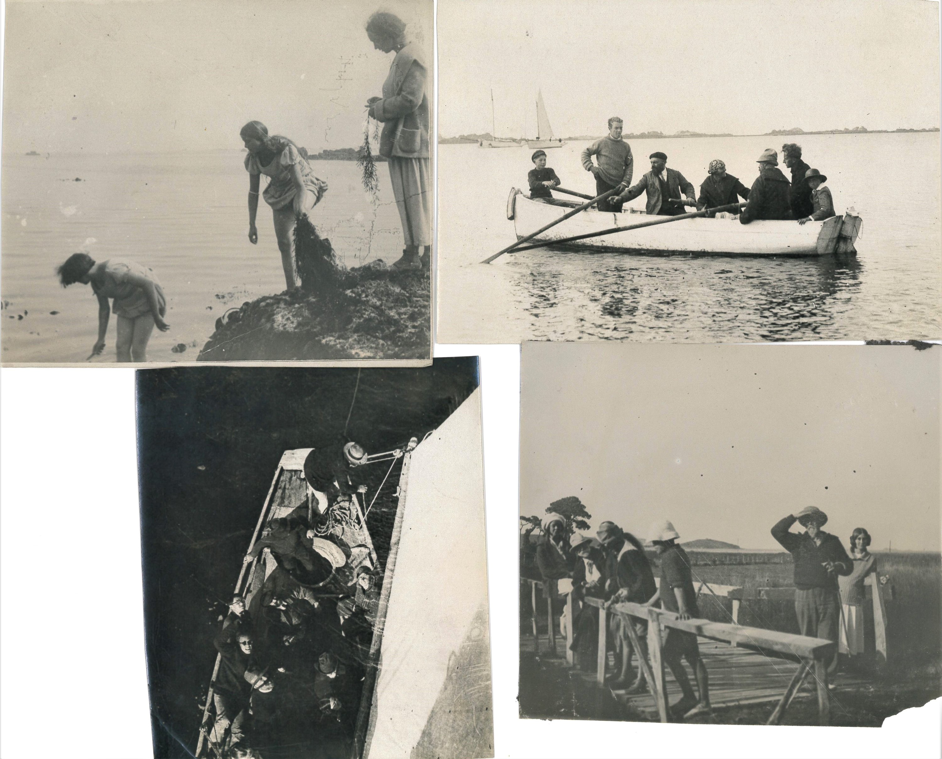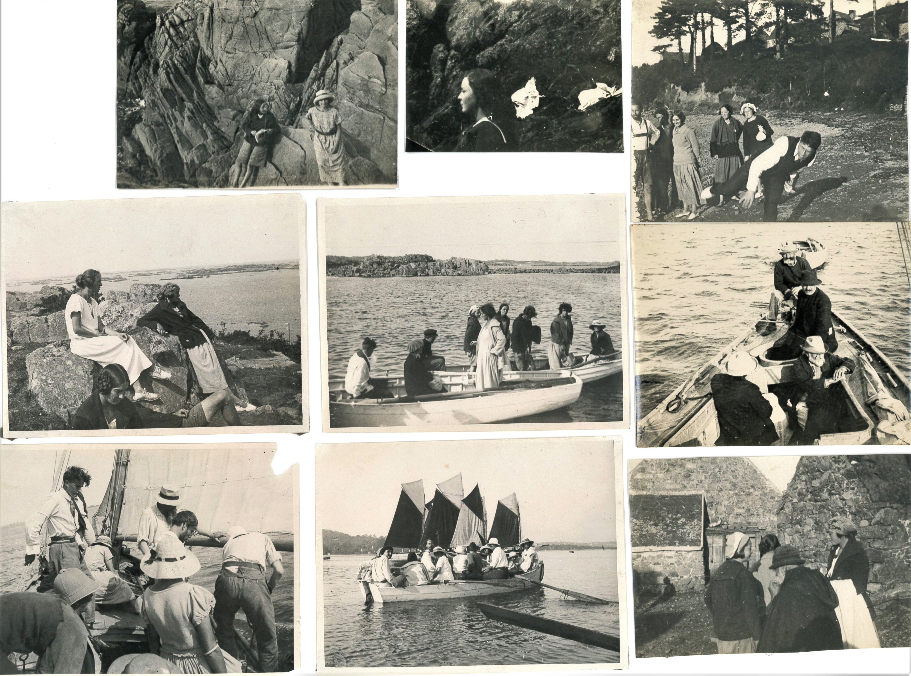 Important lot d'env. 200 tirages photographiques, formats divers ; prises de vues de l'entre-deux-guerres des membres des familles renommées de scientifiques et de littéraires, en pleine activité nautique, qui passaient chaque année leurs longues vacances d'été sur les côtes de l'Arcouest, désormais plus connus sous le nom de " Sorbonne-Plage " ; il s'agit principalement de la seconde génération, sous l'il vigilant des aînés, à savoir le prix Nobel de physique Jean Perrin, son épouse et leur fils Francis ; Irène Joliot-Curie, fille de Marie Curie ; Charles Seignobos dit le Capitaine ; Victor Auger, Eugénie son épouse, et leurs enfants Simone, Colette, Pierre, Daniel et sa fiancée Elmina Régert ; Marguerite Borel ; Charles Lapicque ; etc.