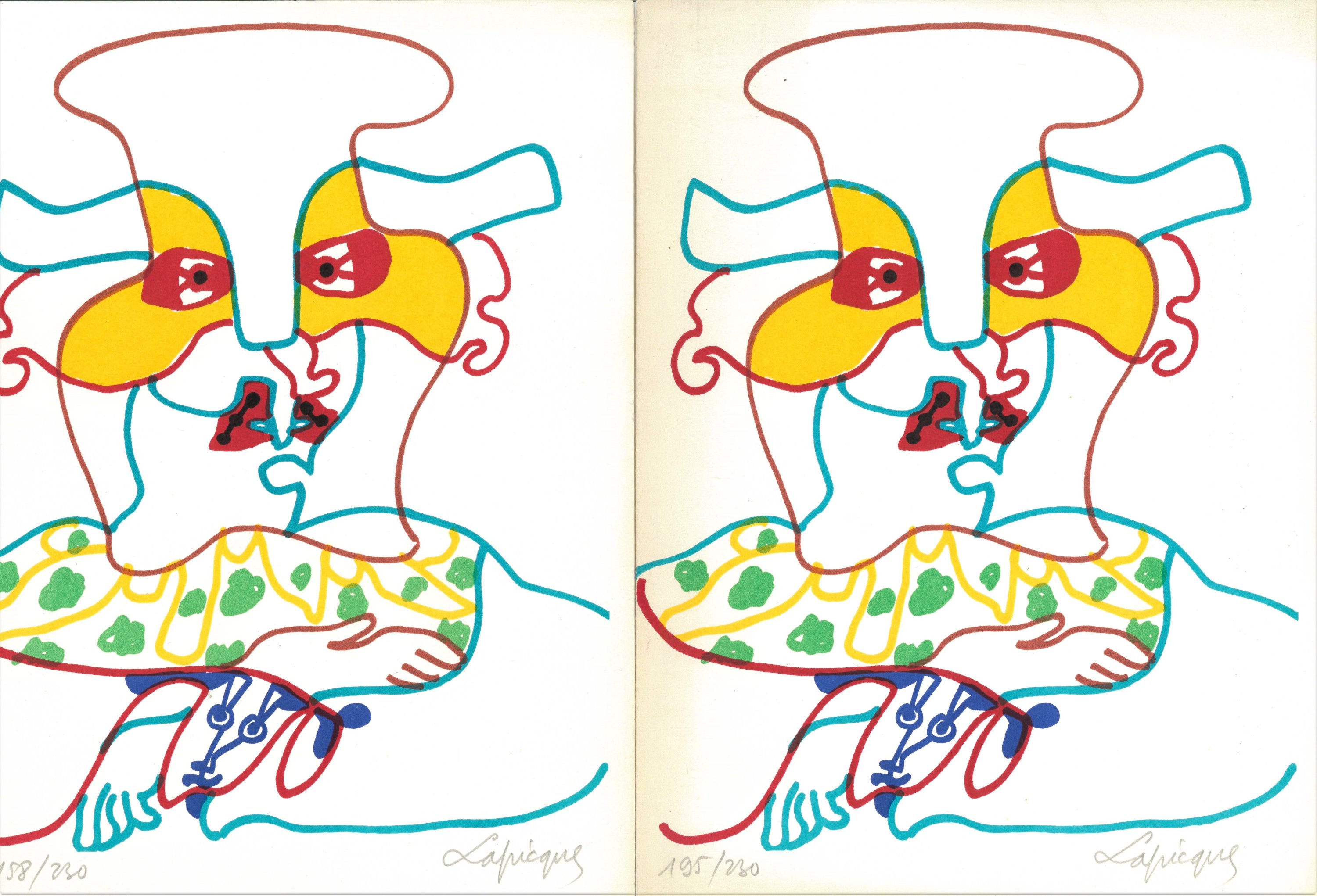 Joint : 4 impressions lithographiques numérotées et signées ; dessin à la mine de plomb avec envoi autographe de Lapicque " Pour Manessier " ; dessin à la plume titré et signé avec envoi autographe.
