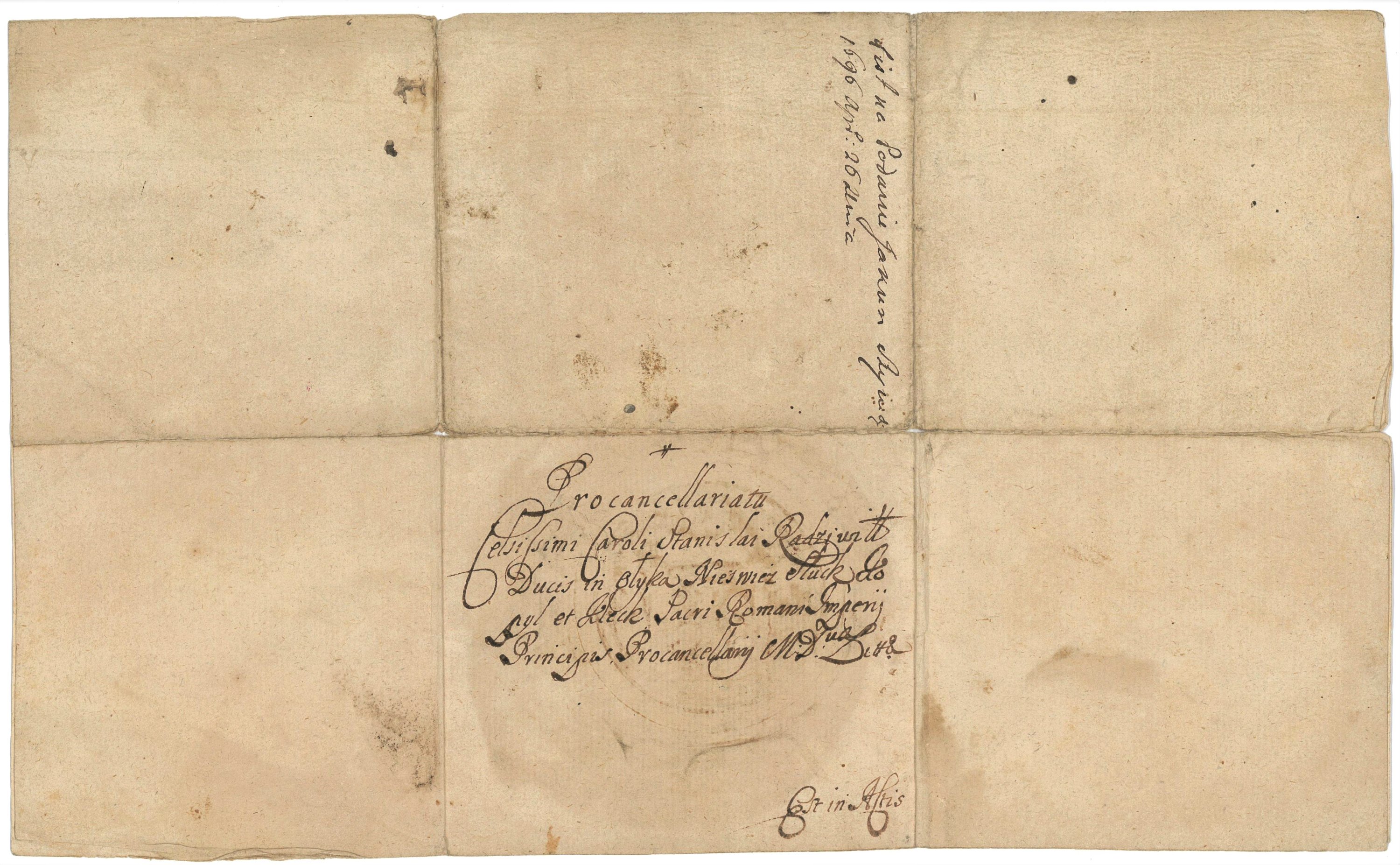 P.S., Varsovie, 26 avril 1696, 1 page oblong, avec signature autographe de Jean III Sobieski et superbe cachet estampé aux armes du grand-duché de Lituanie.