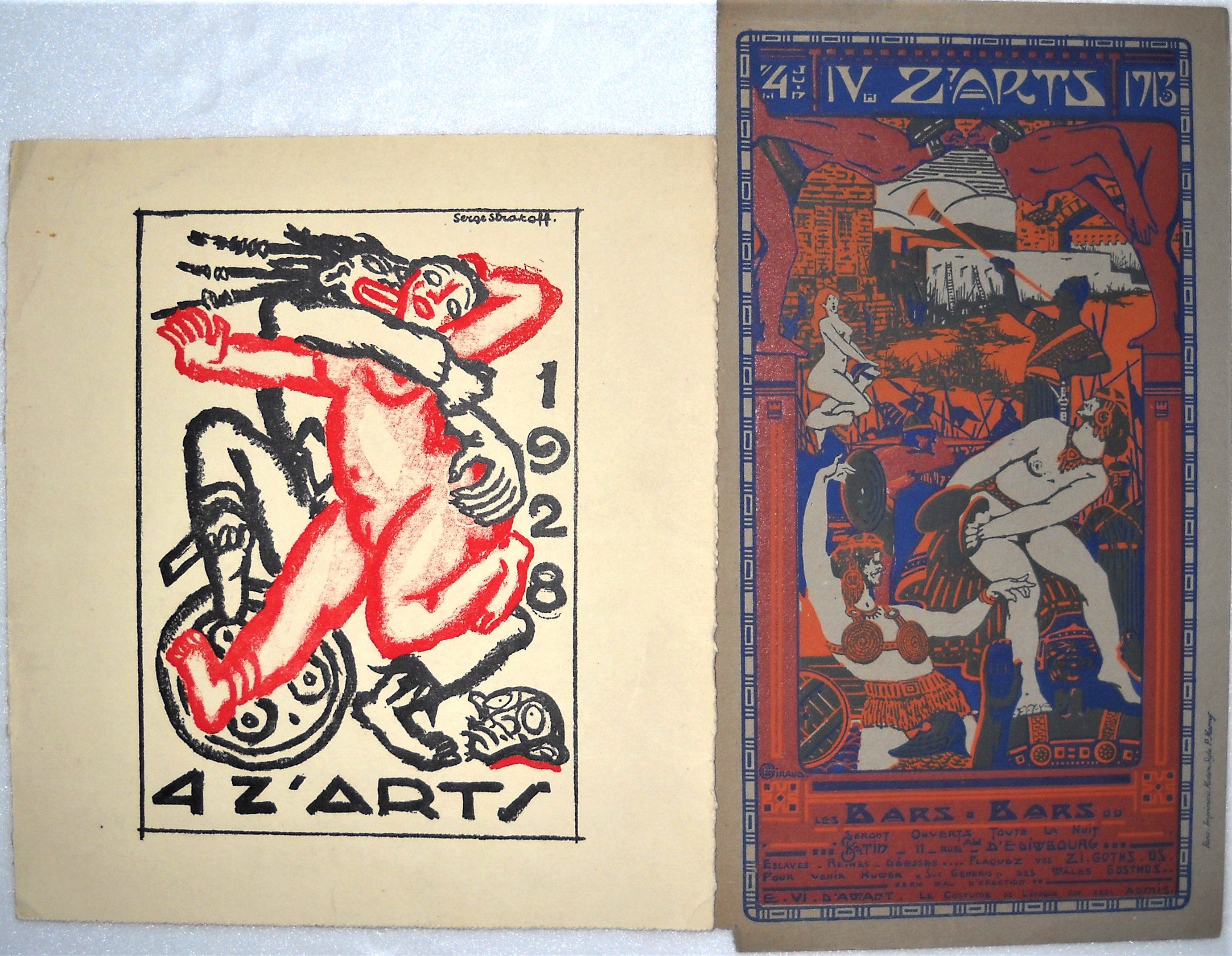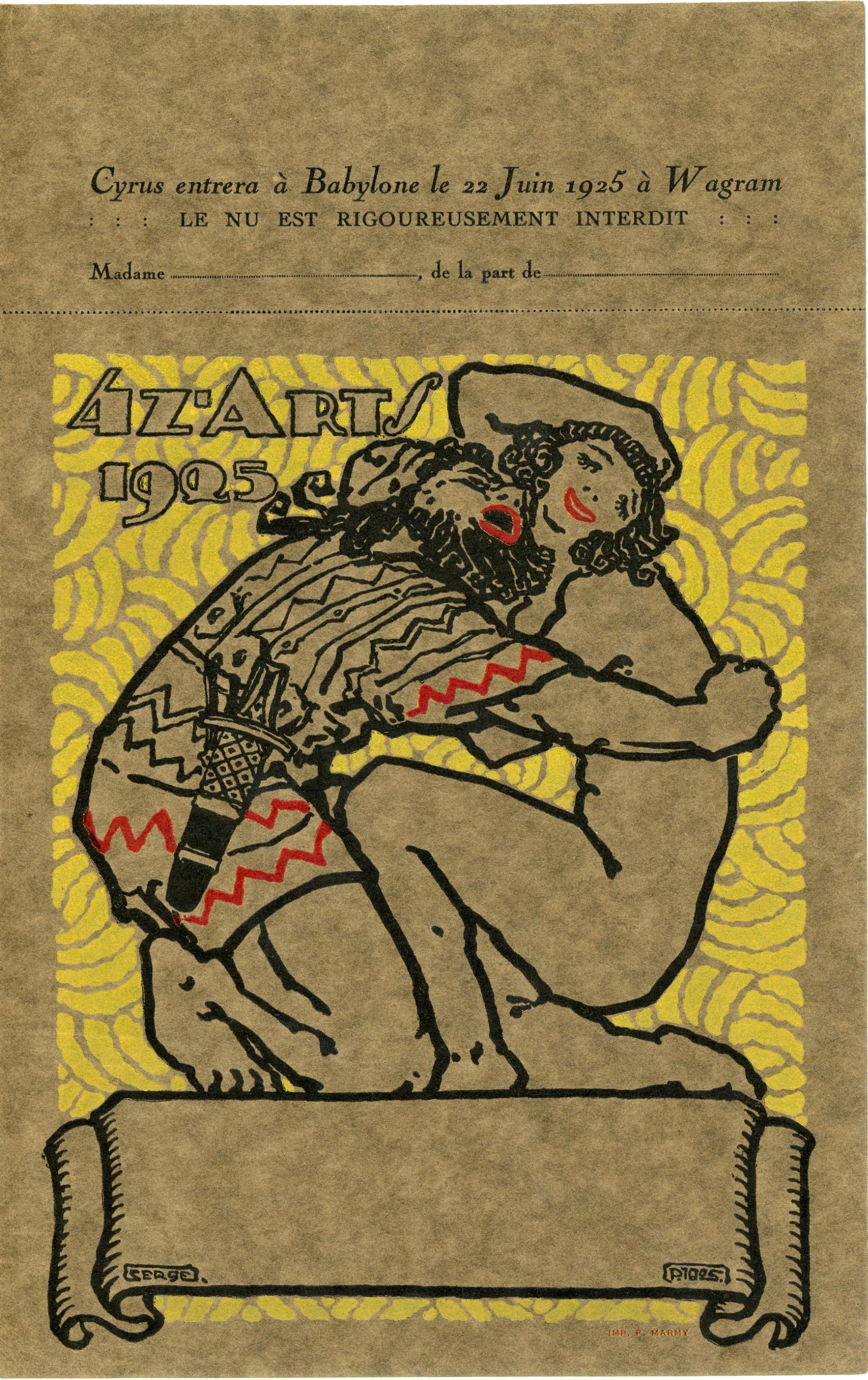 - " Les Huns ", 29 juin 1928, Salle Wagram, carte d'entrée pour femme (sans le talon), illustrée par Serge Stratoff, 26,5 x 24 cm (plis).