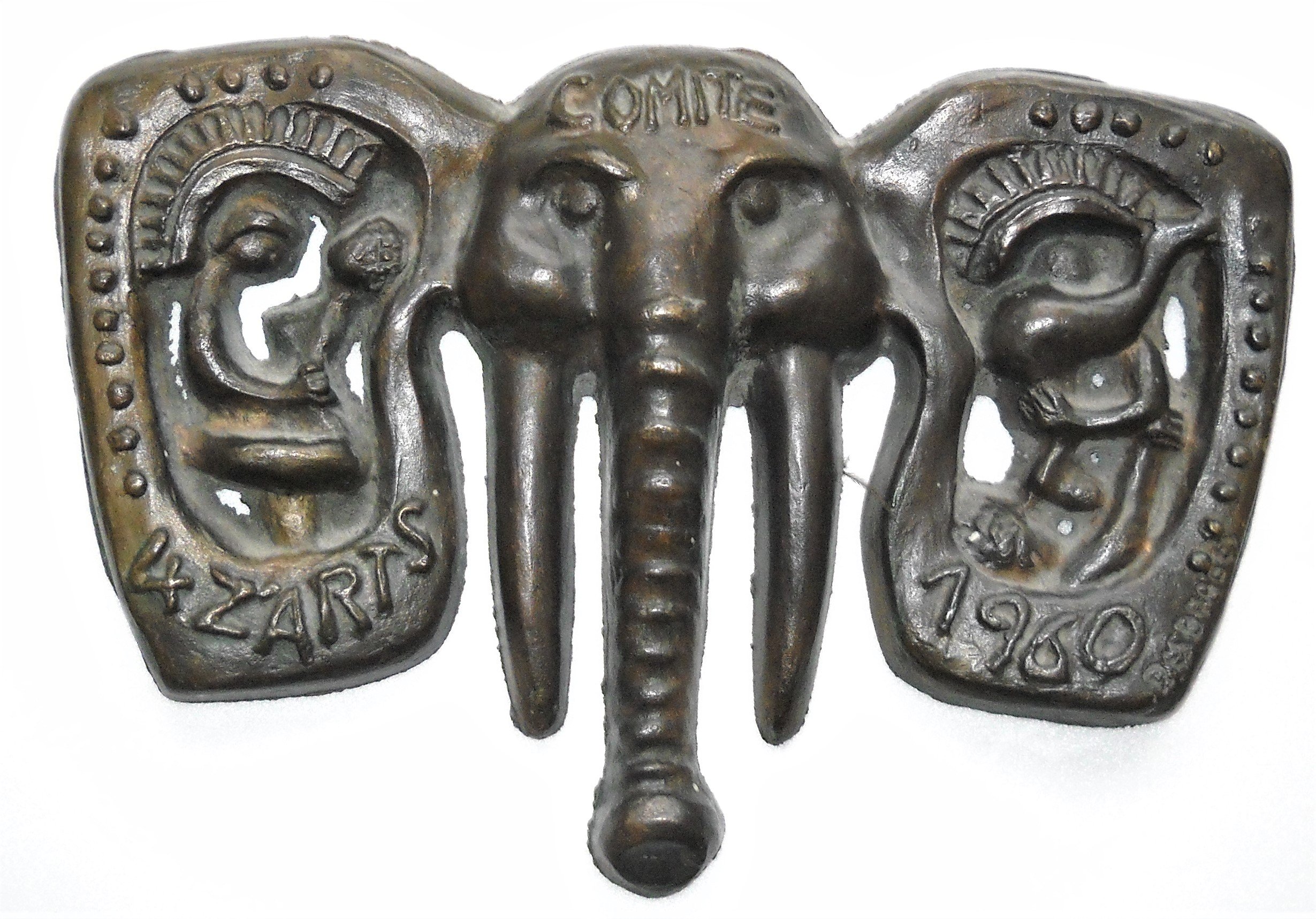 - " Les Délices de Capoue ", 17 juin 1960, salle du Lancry Aréna, plaquette en bronze figurant une tête d'éléphant et décor érotique, avec pour inscription " 4'Z'ARTS COMITE 1960 ", 19 x 29 cm.