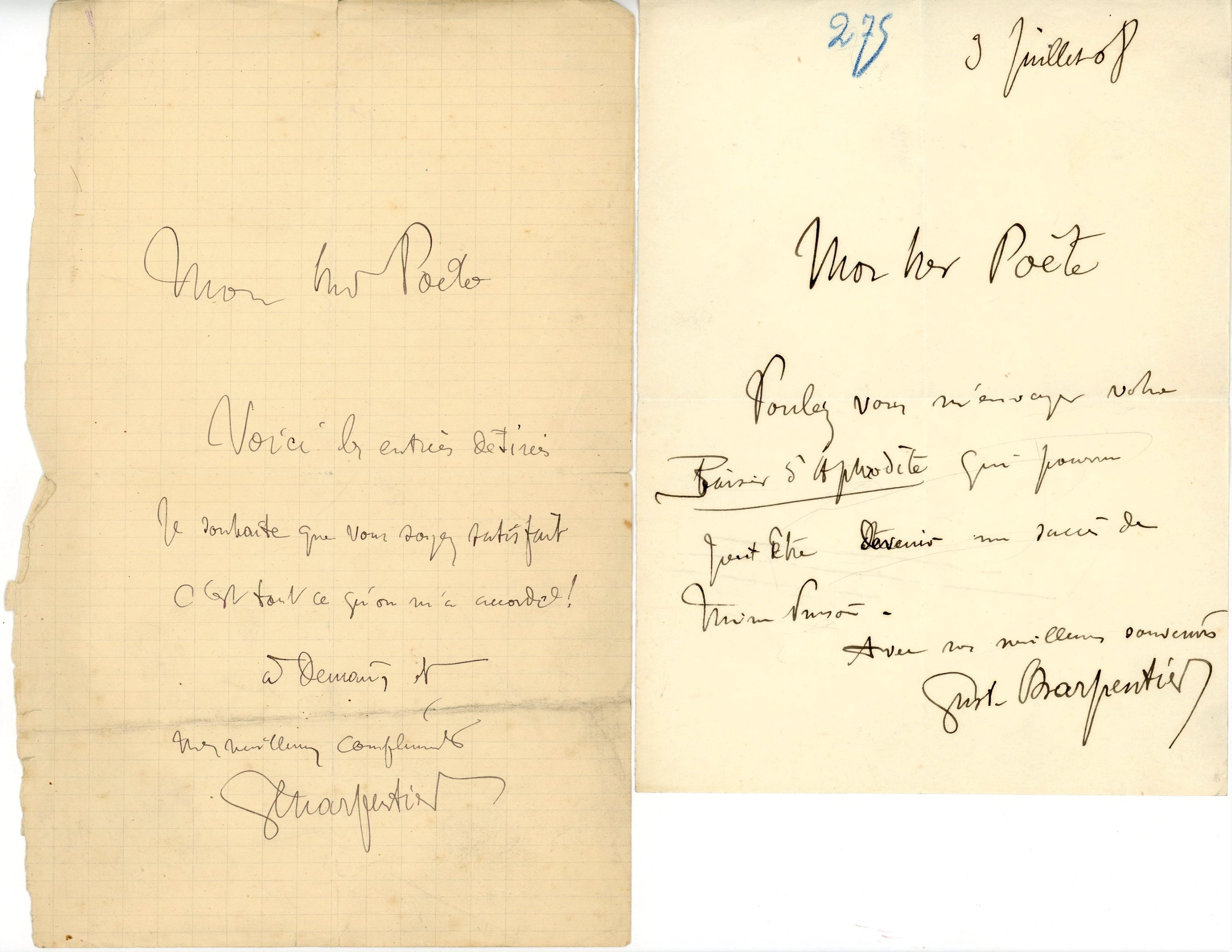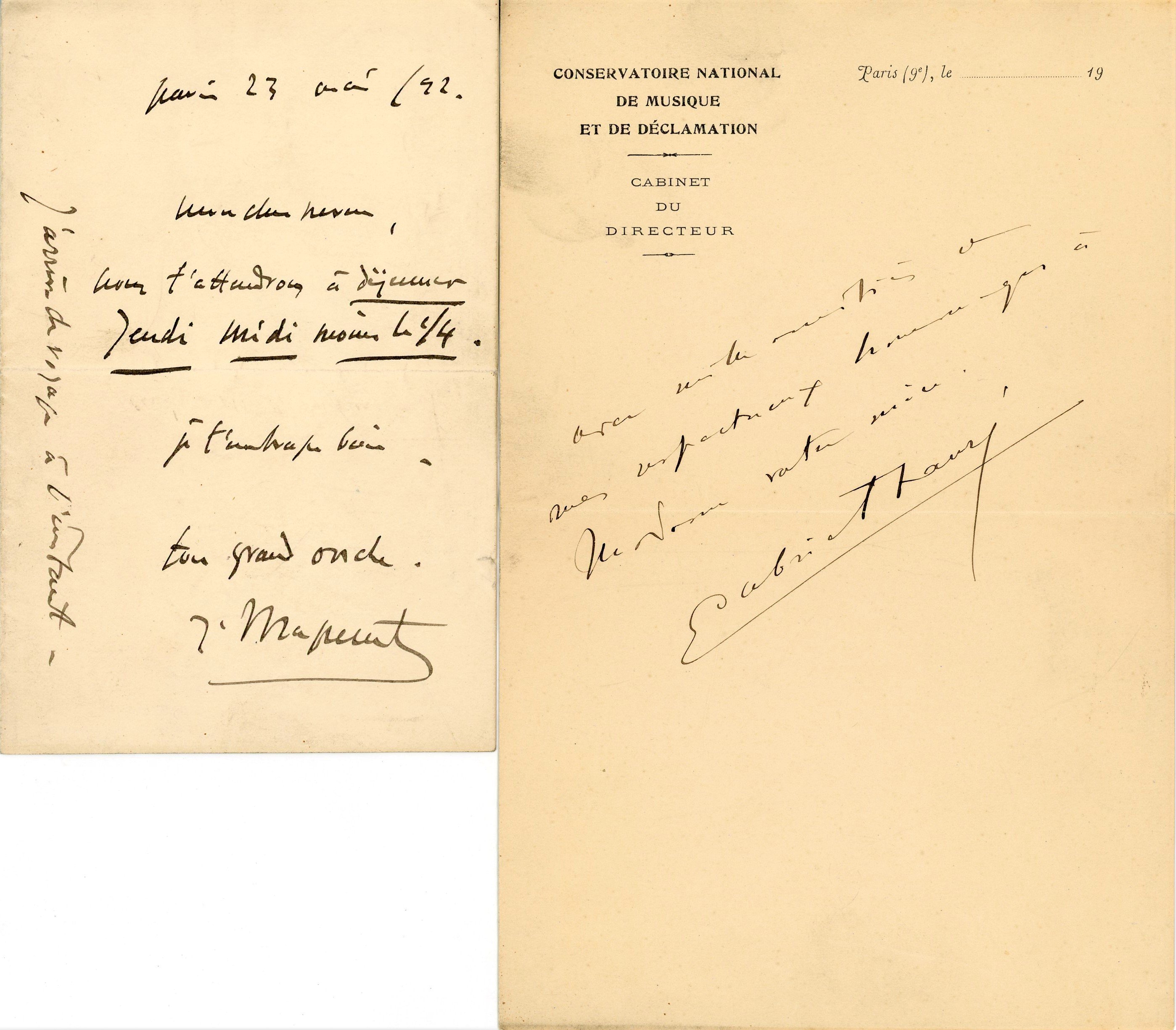 ) Je suis confus d'avoir aussi longtemps tardé à vous remercier, je viens d'arriver de Lyon et un deuil très cruel m'a frappé, j'ai perdu ma marraine Mme Léo Delibes