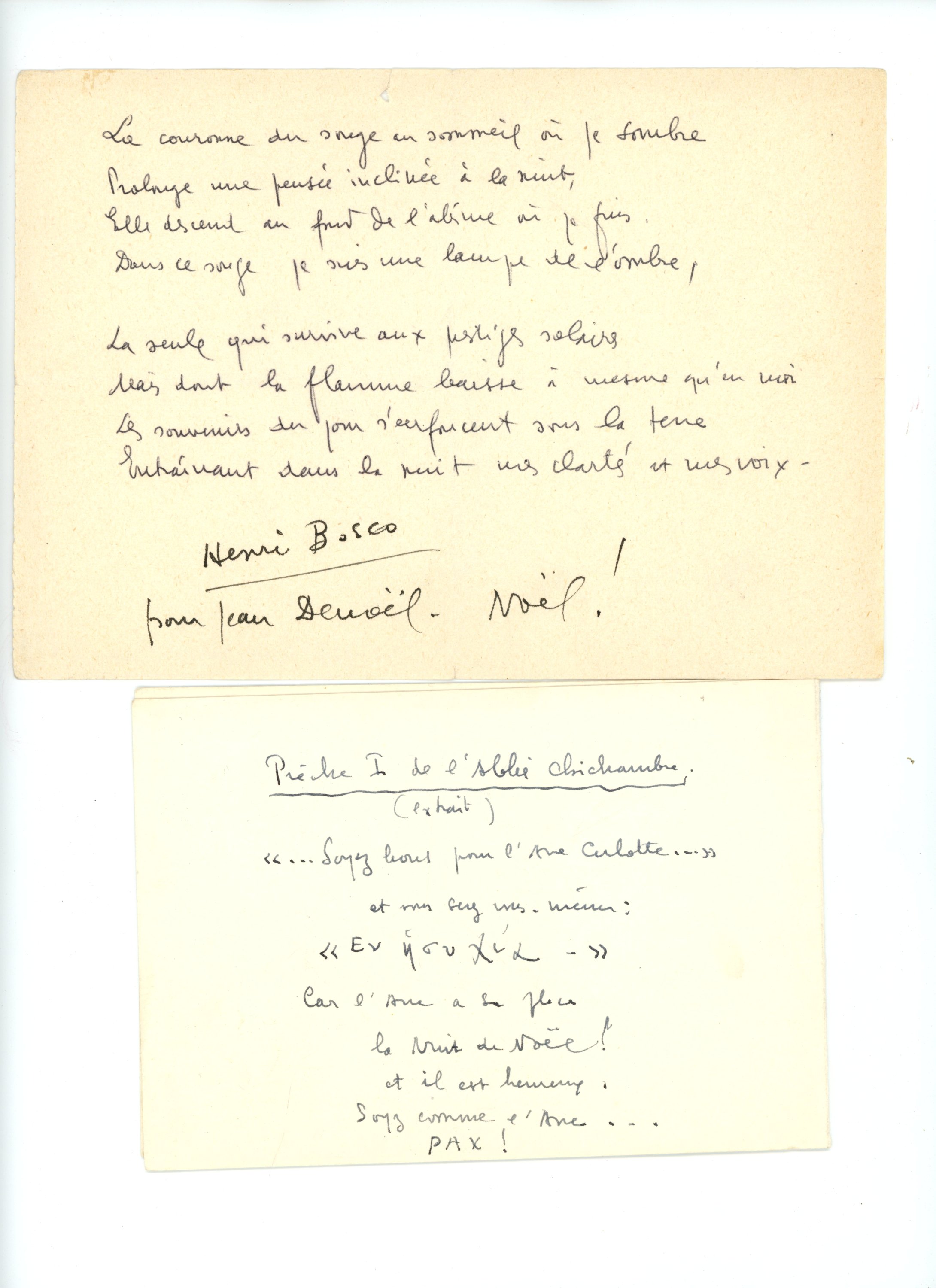 HENRI BOSCO (1888-1976)								10 L.A.S. ET 2 POEMES, 26 pp. (enveloppes),...