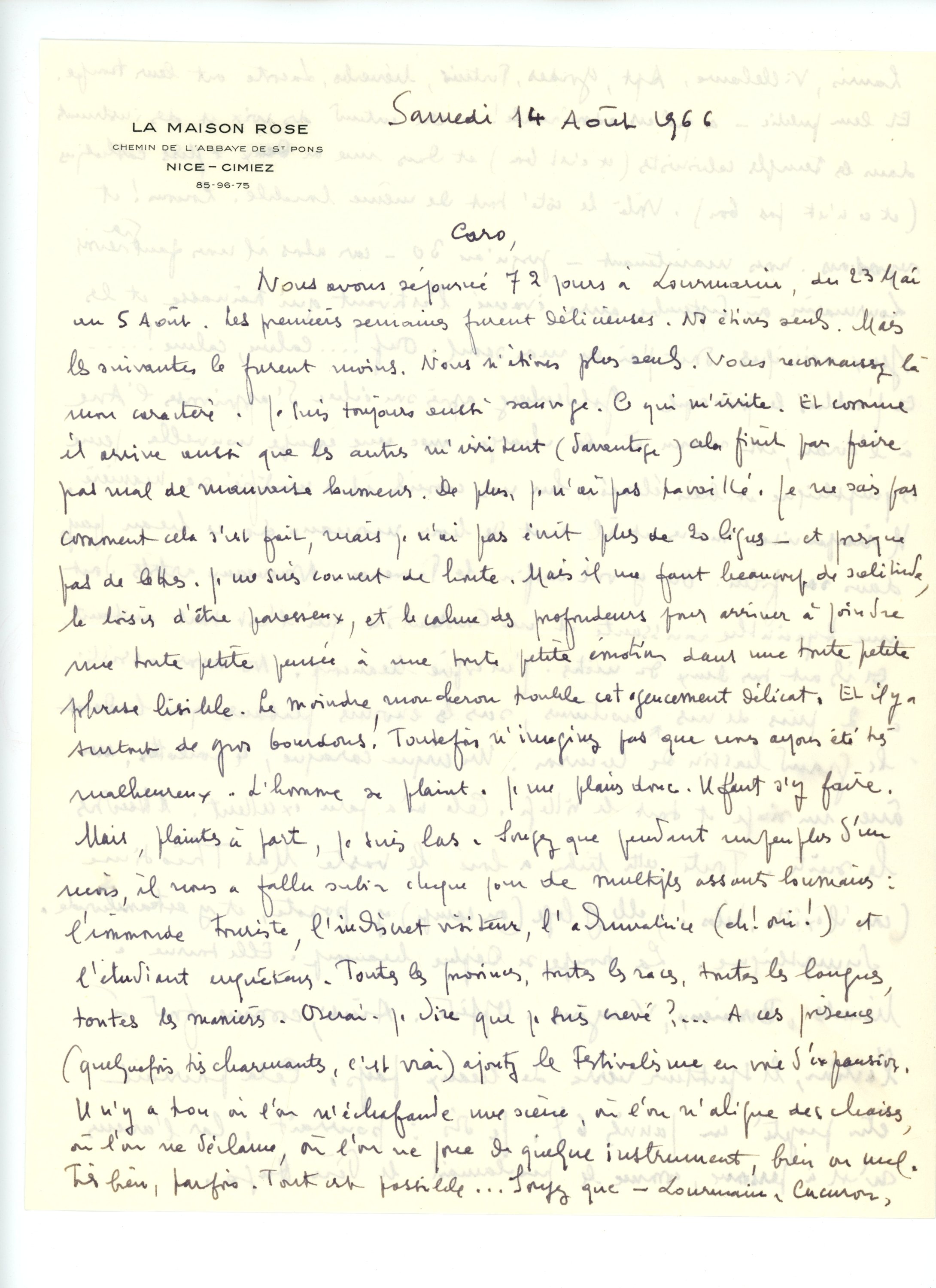 Lettres sur son activité littéraire, réflexions désabusées, sur la mise à l'écran de " l'Âne Culotte " : " Je veux être présent. Je veux qu'on tourne sans truquage de studio. Mais… j'ai un âne. Il manque encore le serpent, le renard, et les deux enfants… "
