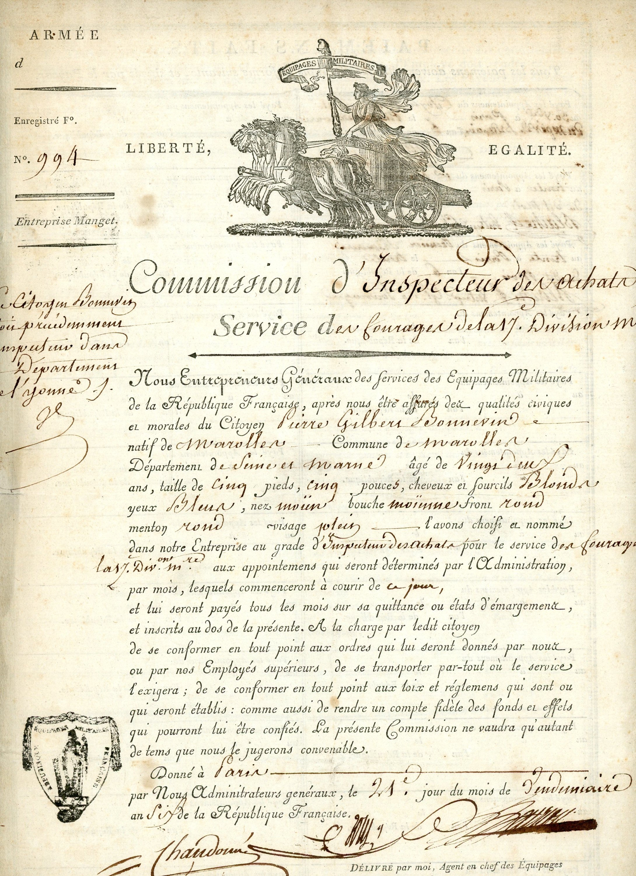 " - L.A.S., 21 messidor an VIII, réclamation d'un officier de l'armée de la République pour être rétribué des campagnes d'Italie de l'an VII et VIII - L.A.S., 27 décembre 1826, d'un officier en garnison à Tours : " (
