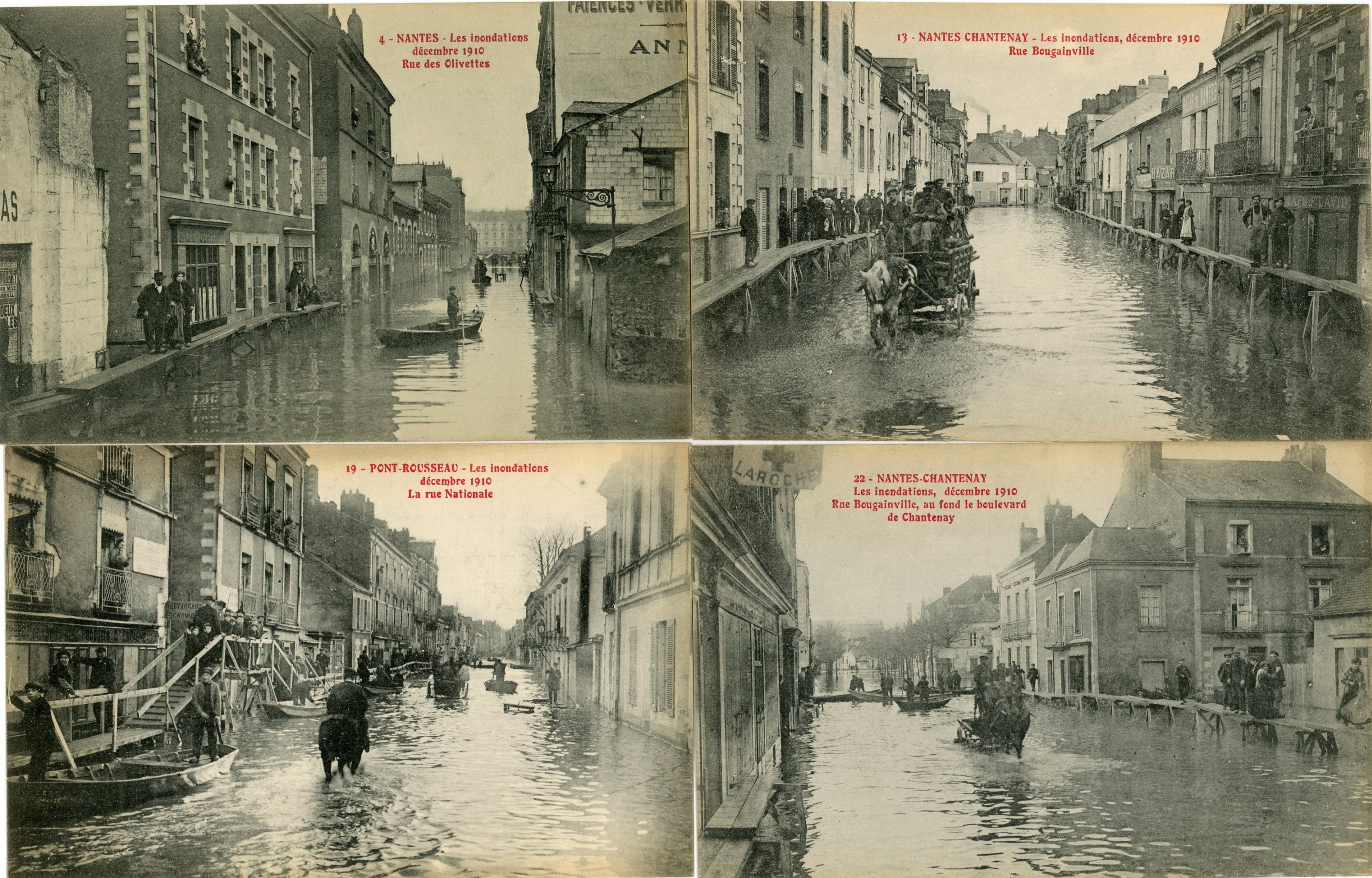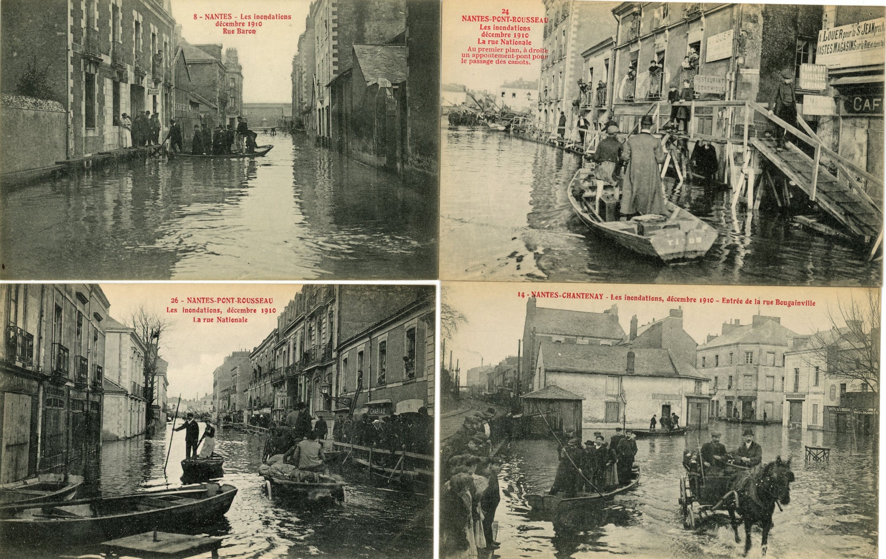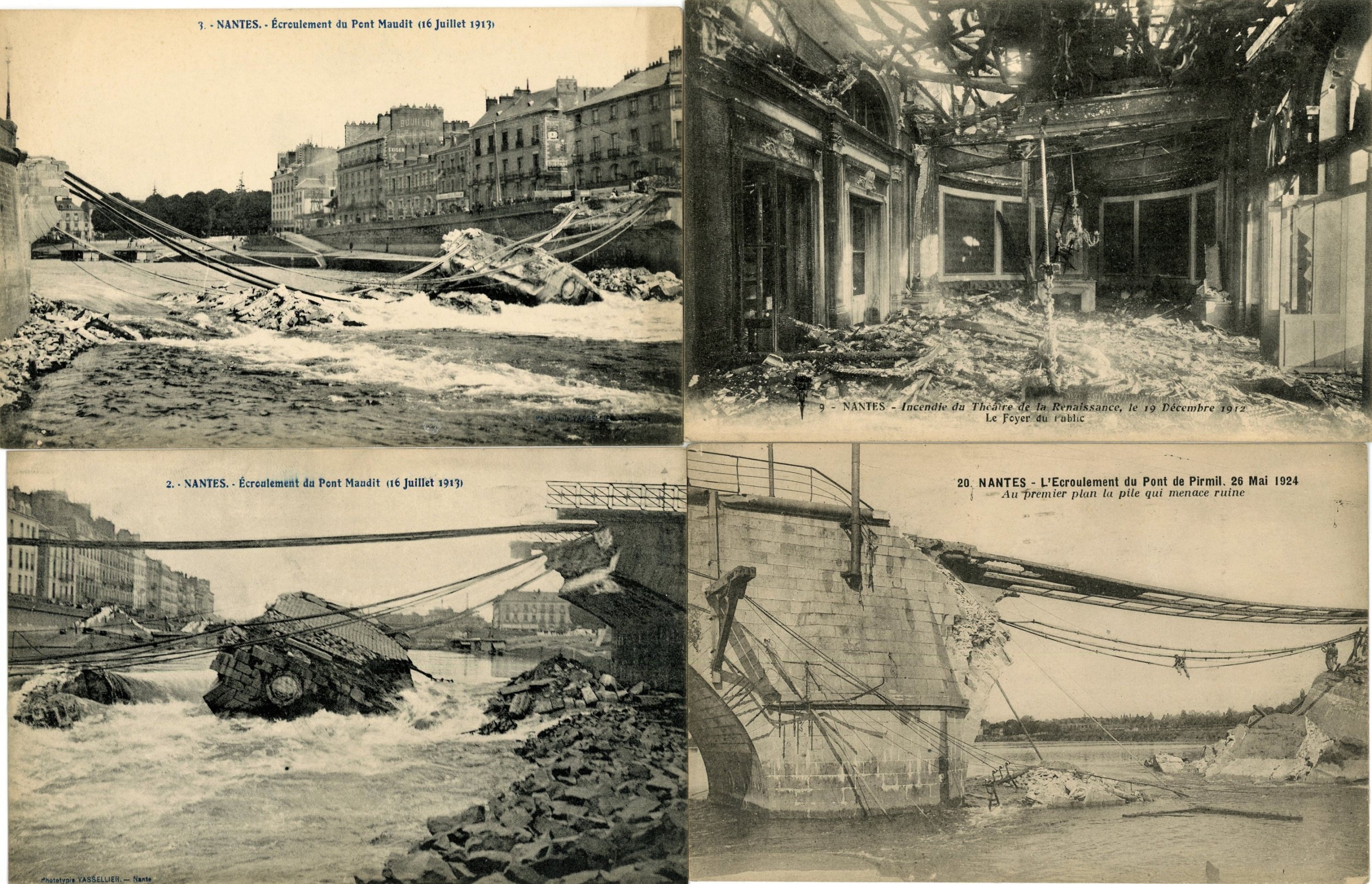 [Loire-Atlantique] Nantes : environ 475 cartes postales anciennes et cpsm, toutes différentes, en majorité ni écrites ni circulées : rues, ports et quais, places, ponts, monuments, églises, bourse, musées, château, événements, etc, dont inondations de 1904 et 1910 (64 cp), Nantes pittoresques et curieux (série n°1 au n°141, qqs manques), guerre 1914-1918 (15 cp), incendie théâtre de la Renaissance 1912, journée diocésaine 1925 (8 cp), écroulement du pont Maudit et de Pirmil, fête de la Bretagne 1910, concours international de la pêche.
