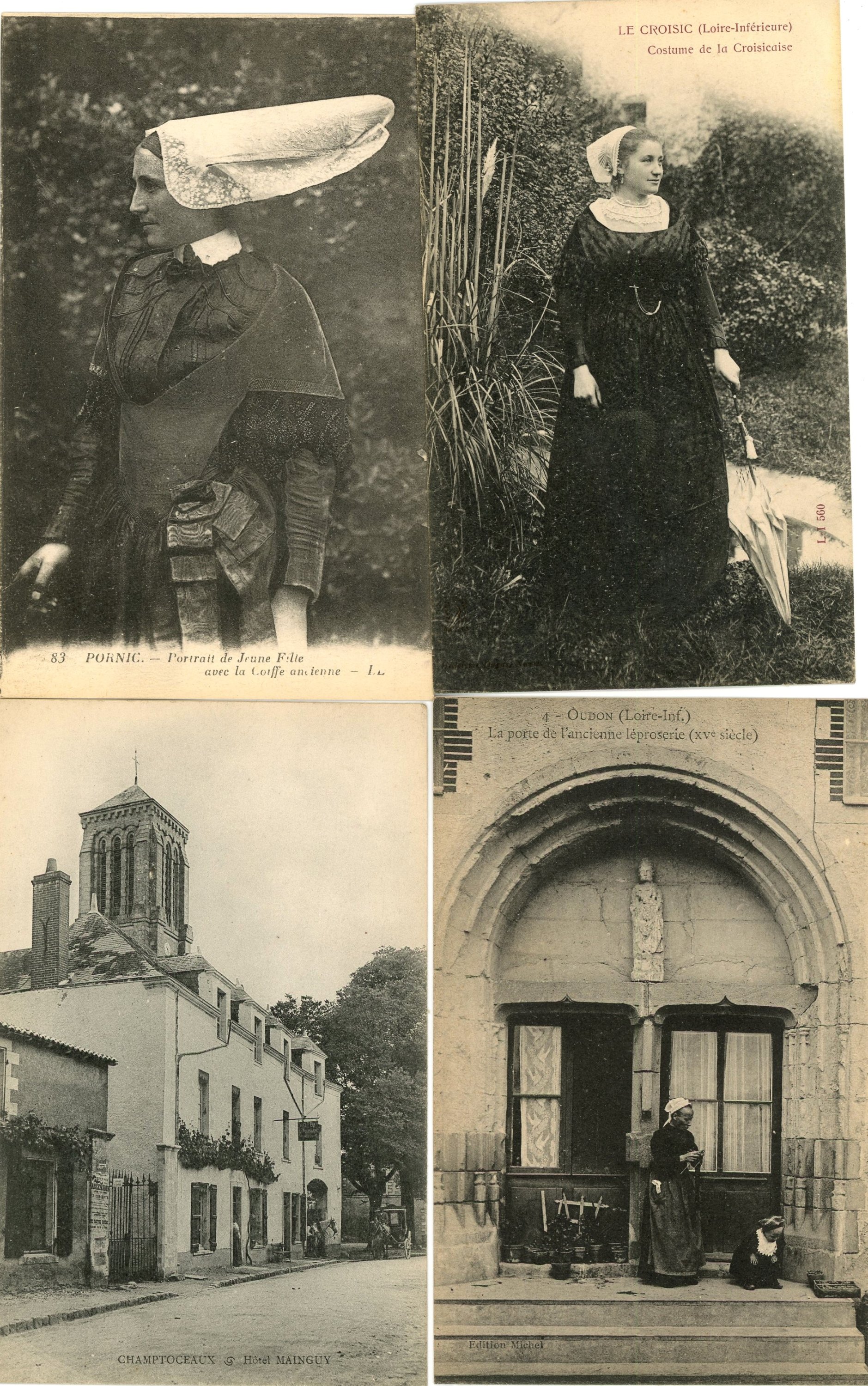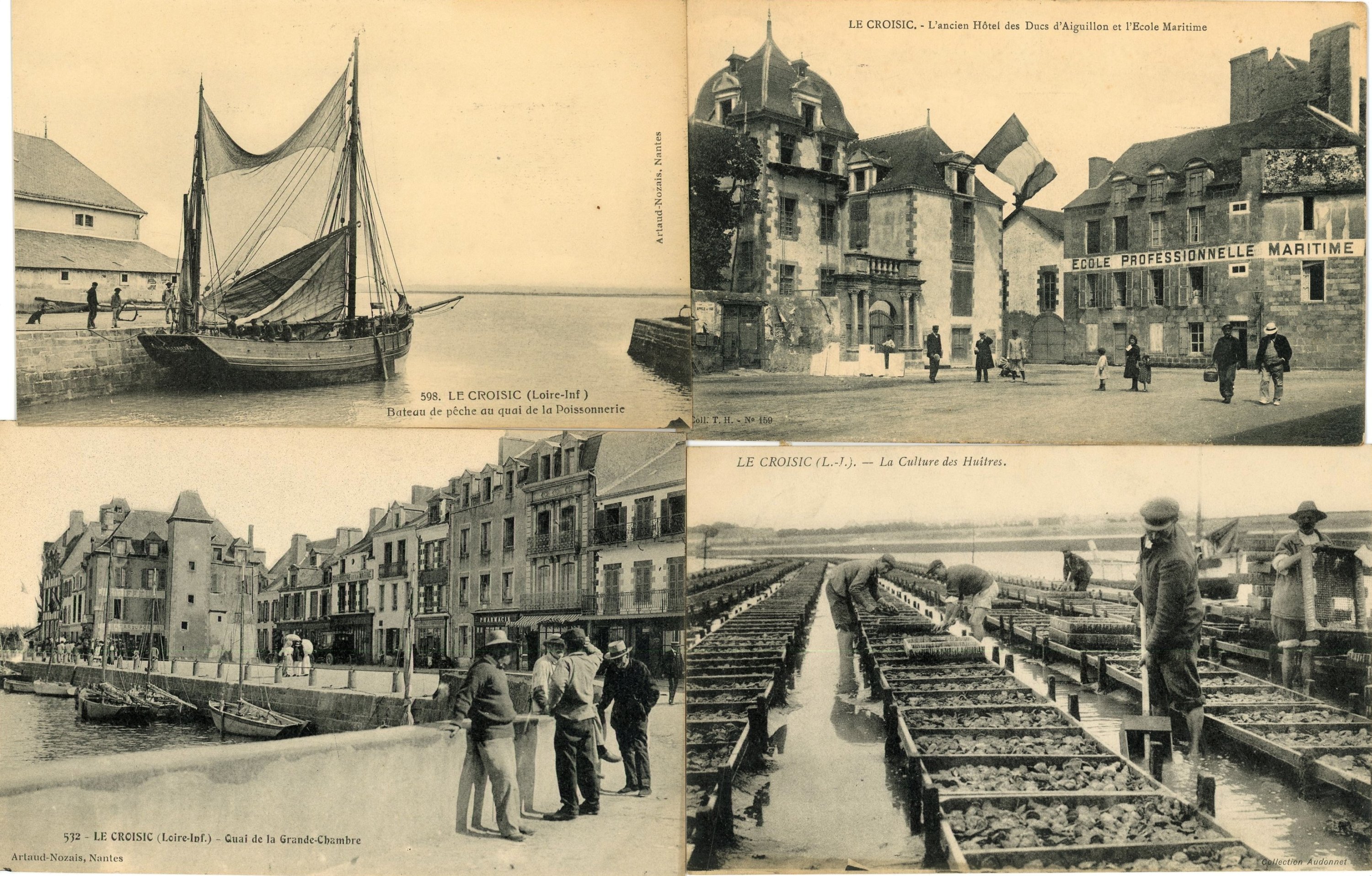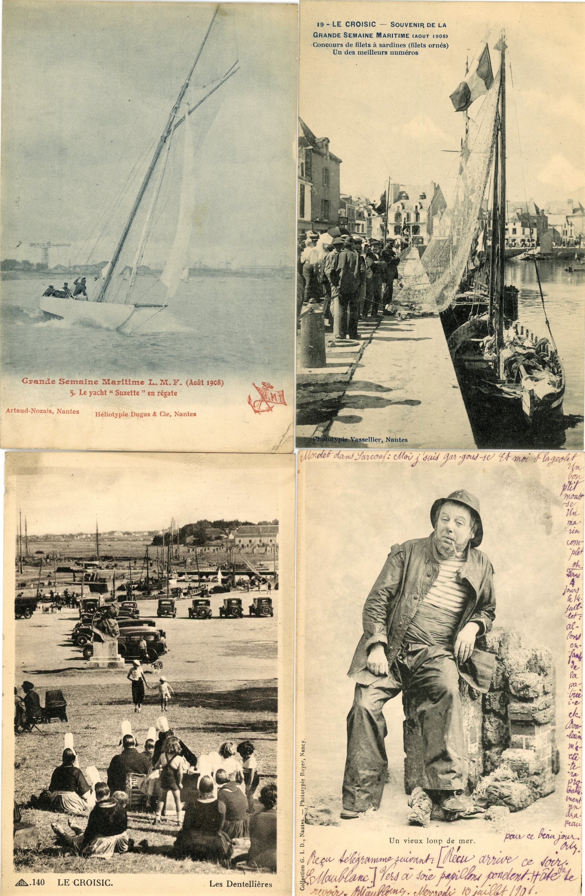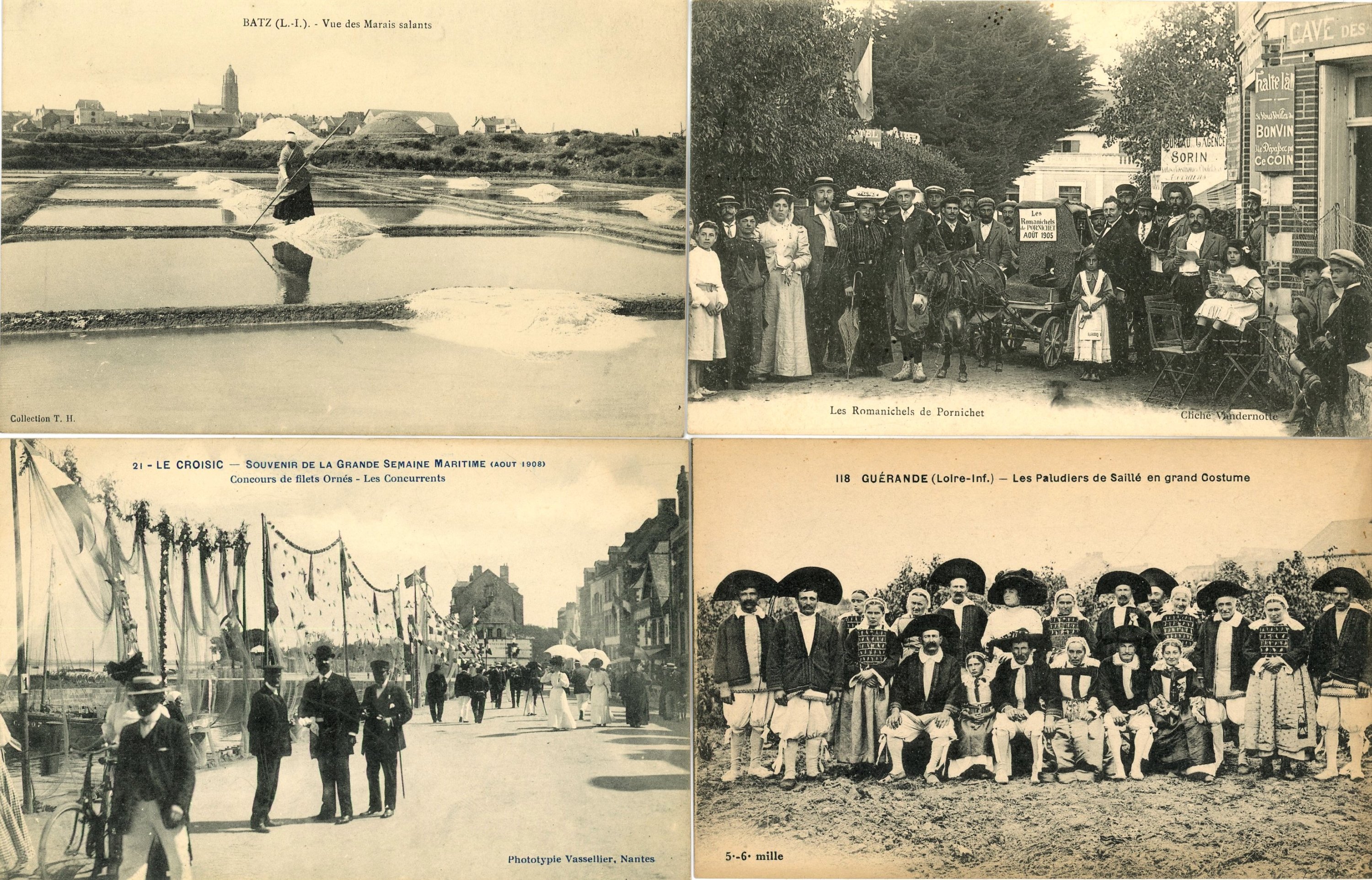 [Loire-Atlantique] env. 265 cartes postales anciennes et cpsm : villes (Saint Nazaire, Le Croisic, Guérande, Pornic, etc), qqs villages, animations, ports, sites et châteaux, bateaux, côtes, etc, dont les Romanichels de Pornichet, Grande Semaine maritime, Les paludiers de Saillé.