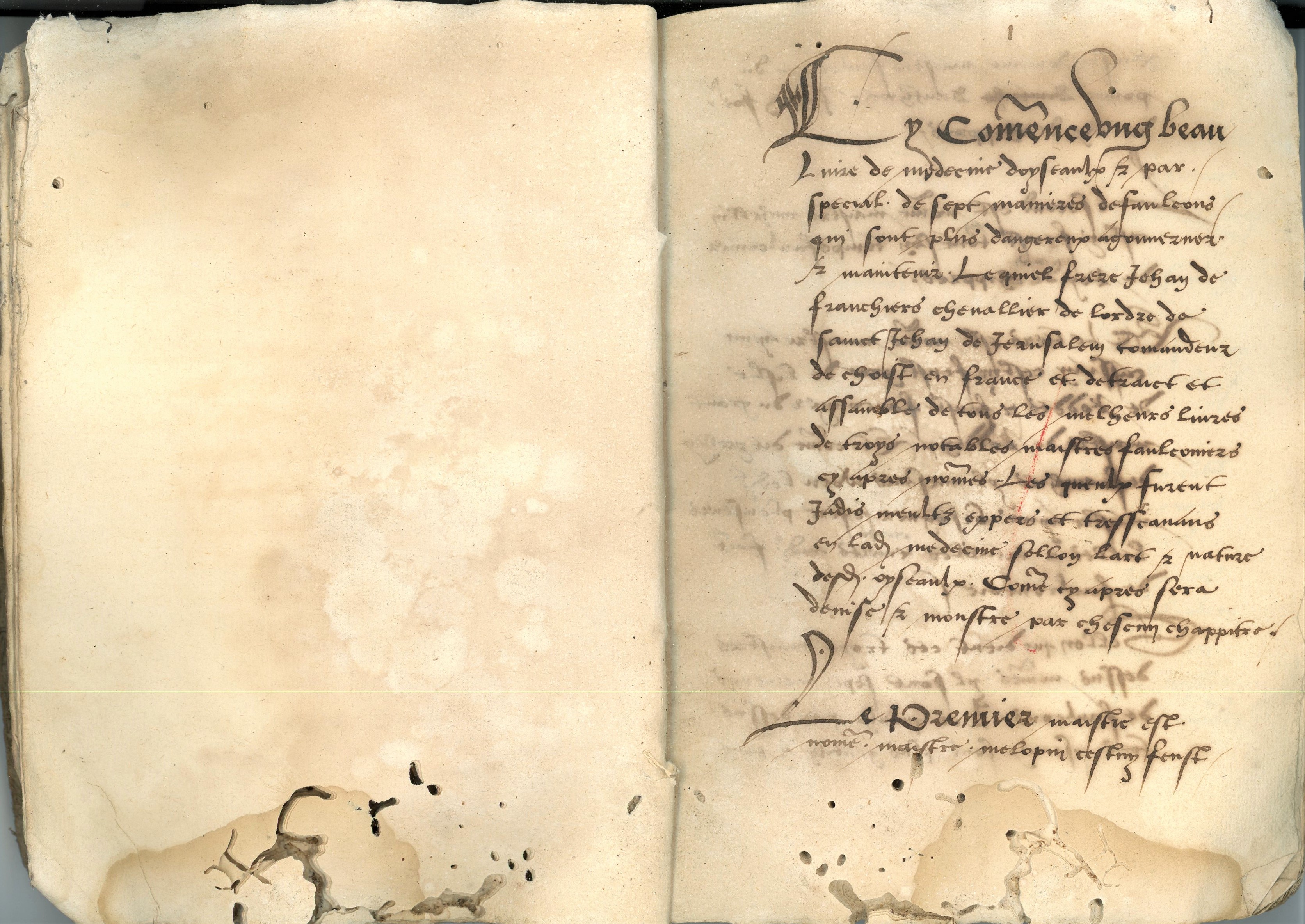 " Cy comence ung beau livre de medecine d'oyseaulx par special de sept manières de faulcons qui sont plus dangereux a gouverner et maintenir. Lequel frère Jehan de Franchiere