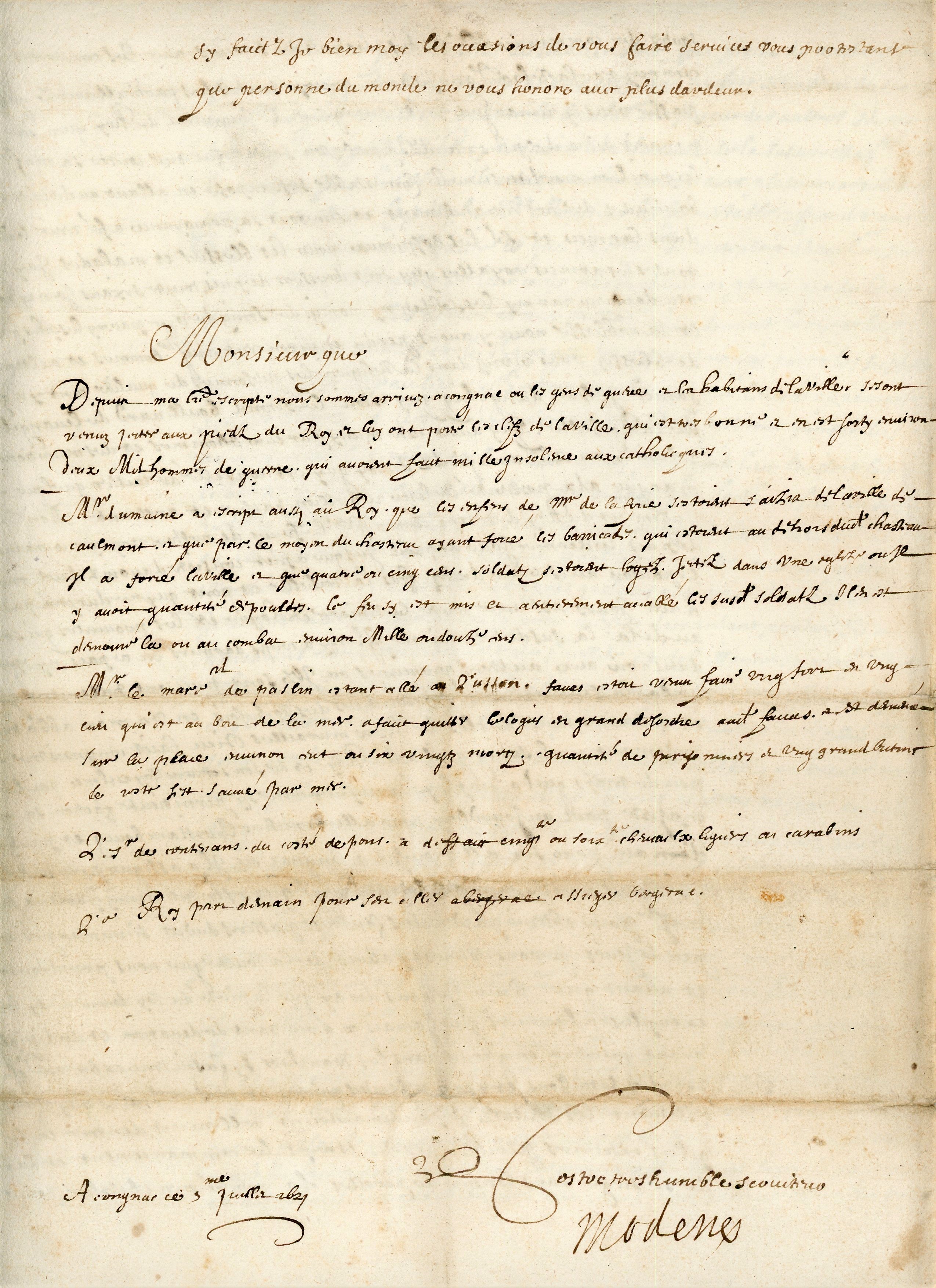 3 missives, 1620-1621, adressées à Jean II de TULLE, évêque d'Orange