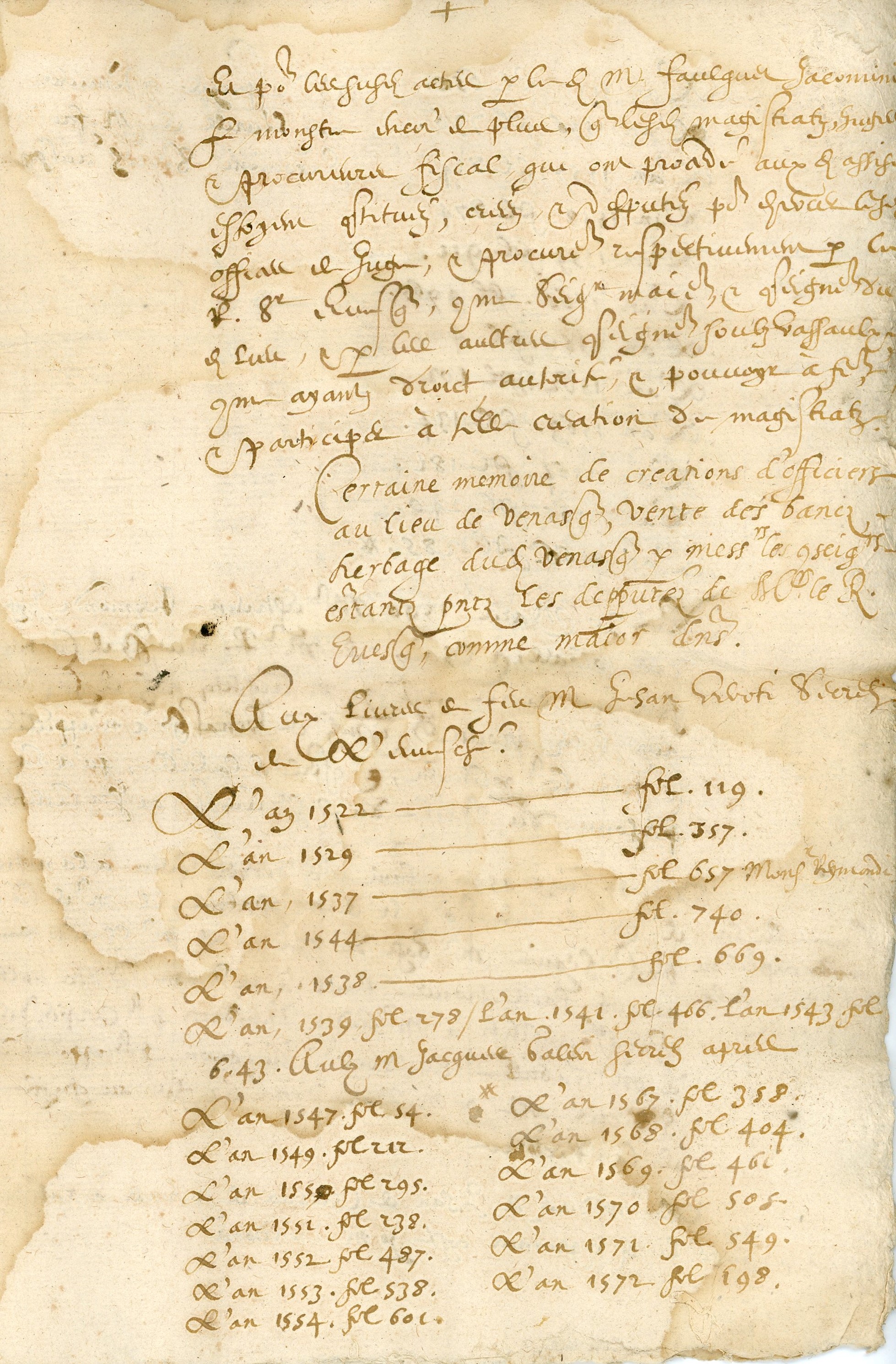 Manuscrit papier, 6 ff. in-4, daté du 17 novembre 1599 ; copie du mémoire établi au nom des coseigneurs du lieu de Venasque, vassaux de l'évêché de Carpentras, rappelant son historique depuis le XIIIe siècle.