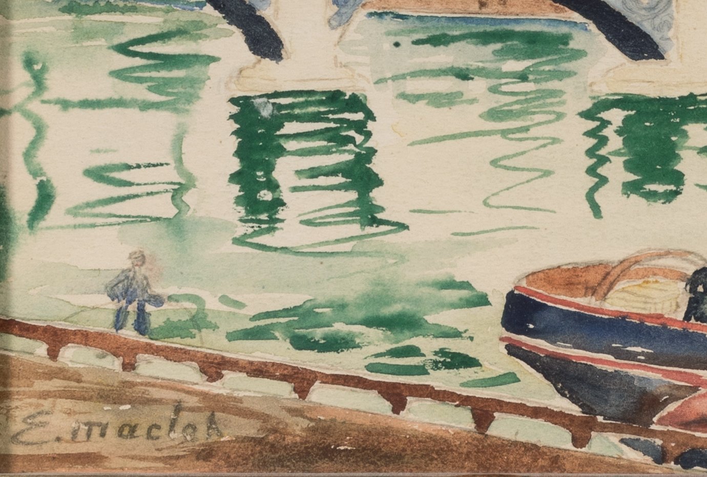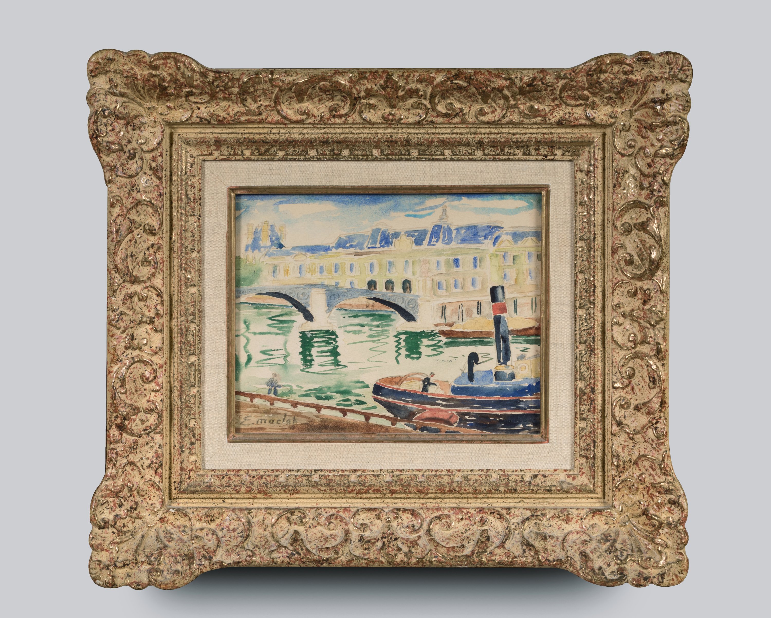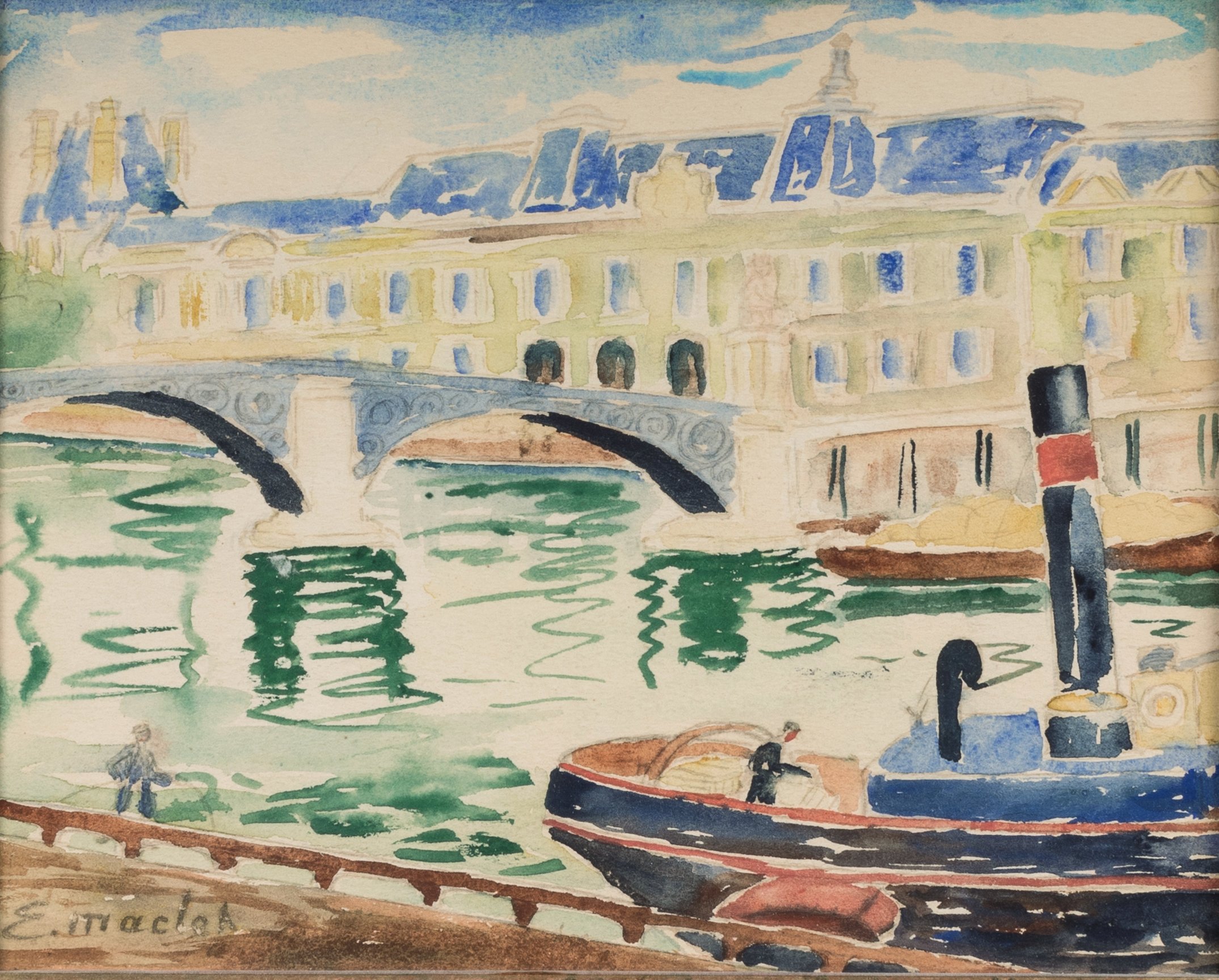 Élysée MACLET (Français, 1881-1962)Bateaux sur la Seine.Aquarelle signée en bas...