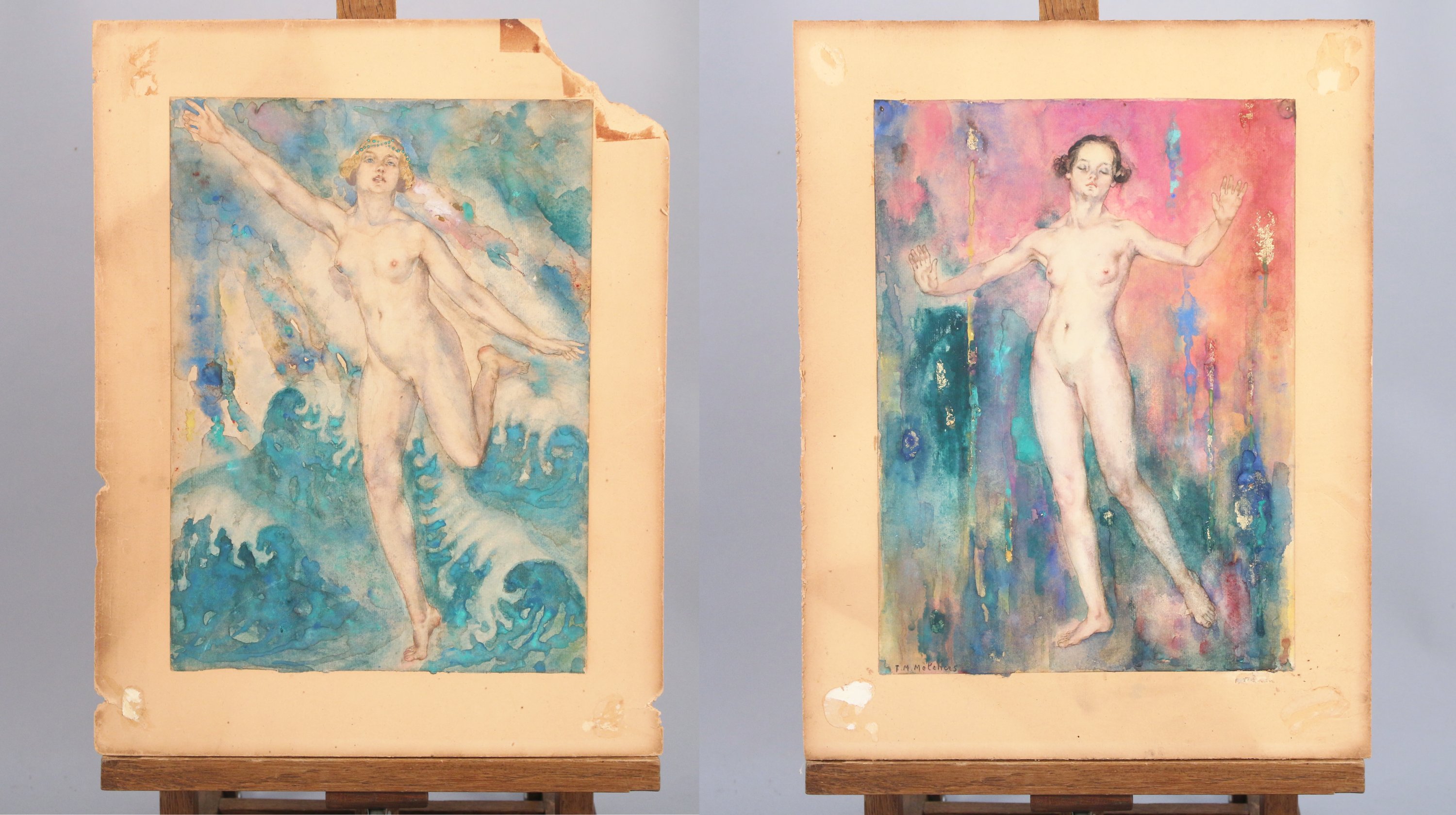 Franz MELCHERS (Germano-Néerlandais, 1868-1944)Danseuse et baigneuse.Deux aquarelles. Une signée en...