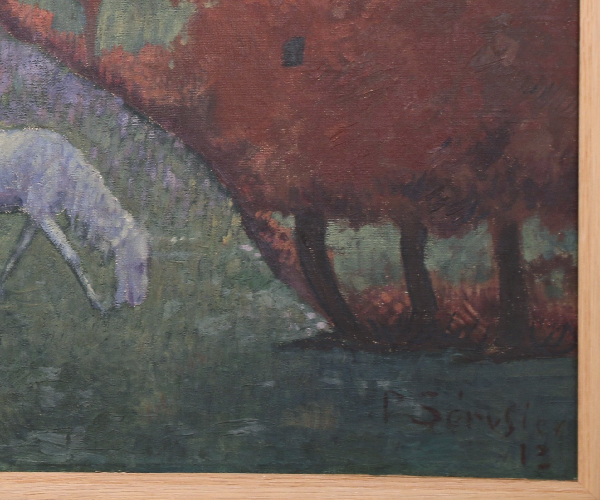Paul Sérusier (1865-1927) est le peintre théoricien du mouvement Nabis. En 1888 il rencontre Paul Gauguin à Pont-Aven par lintermédiaire de son ami Émile Bernard. La petite huile quil réalise à cette époque sur le couvercle dune boite à cigares, « Le Talisman », est à lune des uvres les plus importantes de la fin du XIXe siècle. Sérusier rompt avec la contrainte imitative de la peinture et devient le prophète de la sensation.